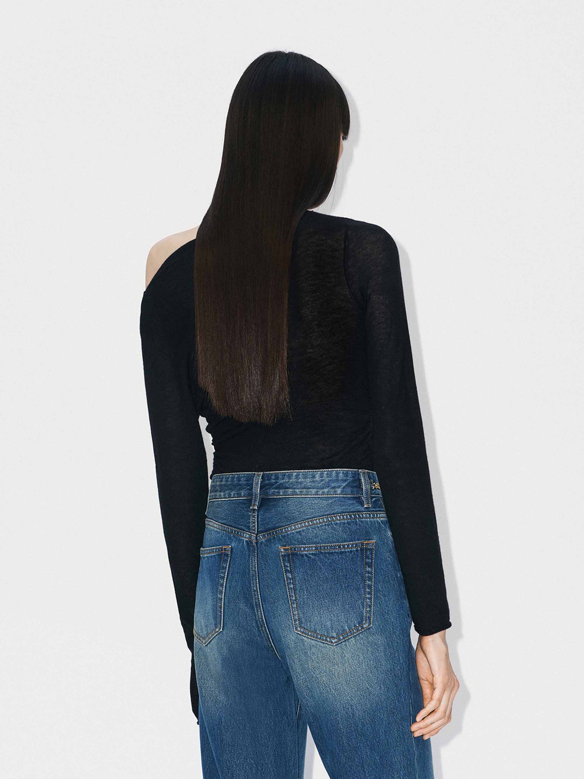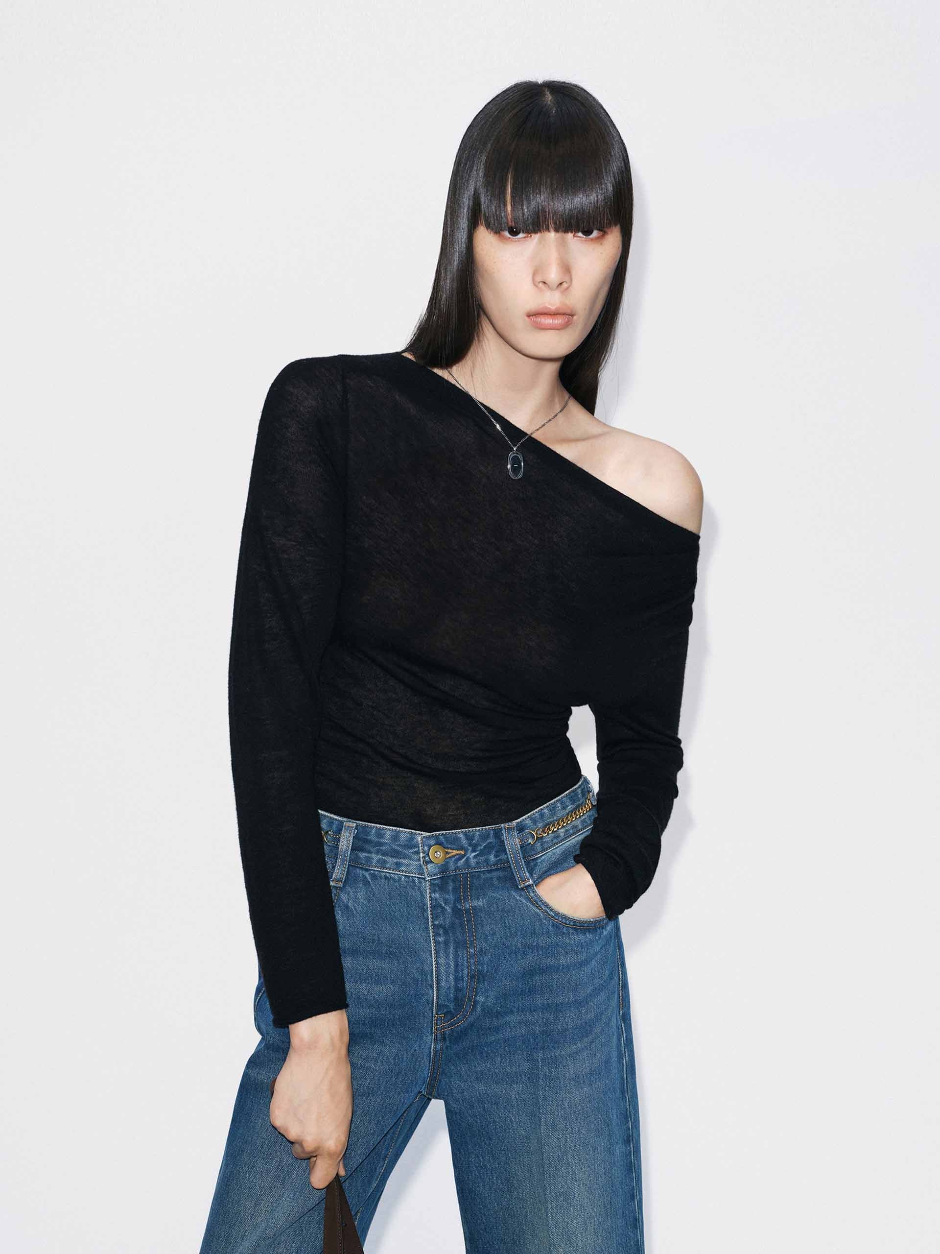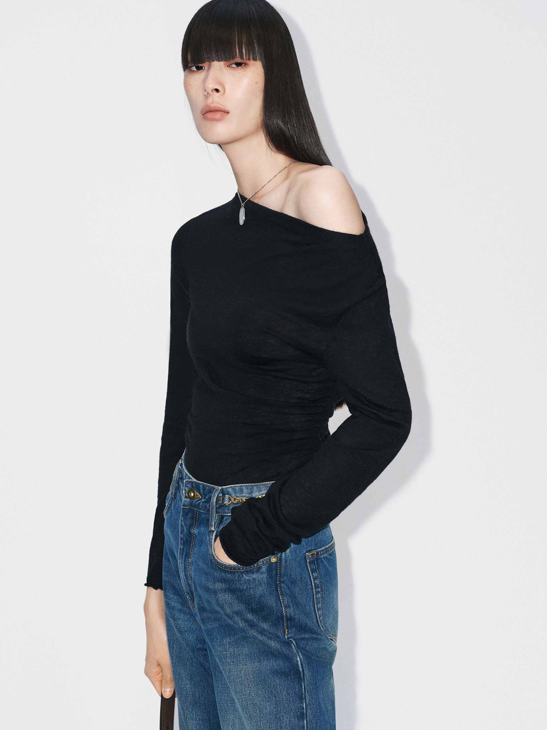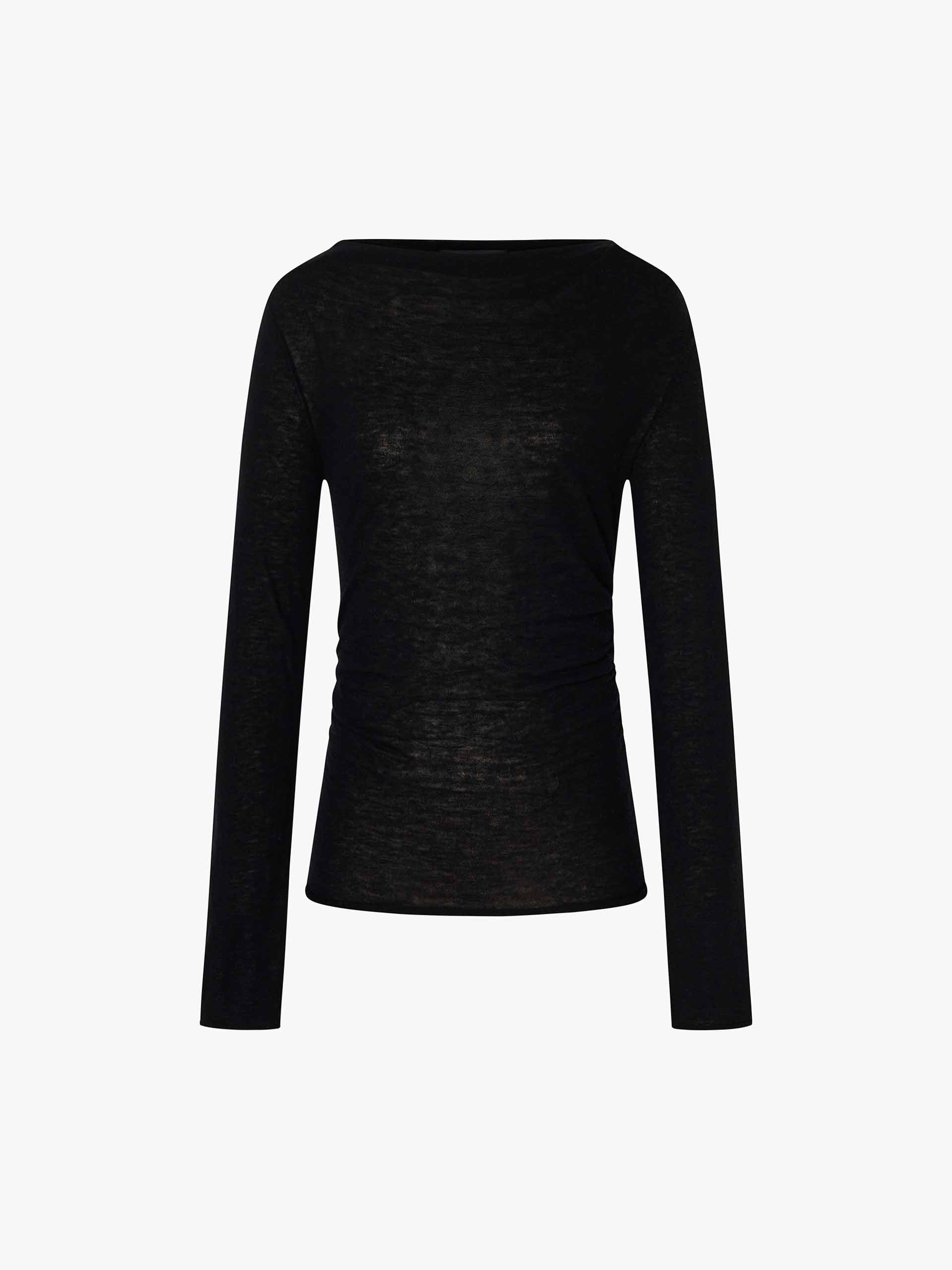 This sweater combines timeless elegance with modern sophistication for a truly refined look. The classic boat neckline is elegantly paired with a subtle pleated waist detail, creating a unique and eye-catching silhouette. Finished with softly rolled trims for a touch of relaxed charm, this sweater is crafted from 100% pure wool, ensuring luxurious warmth, exceptional softness, and enduring quality for seasons to come.