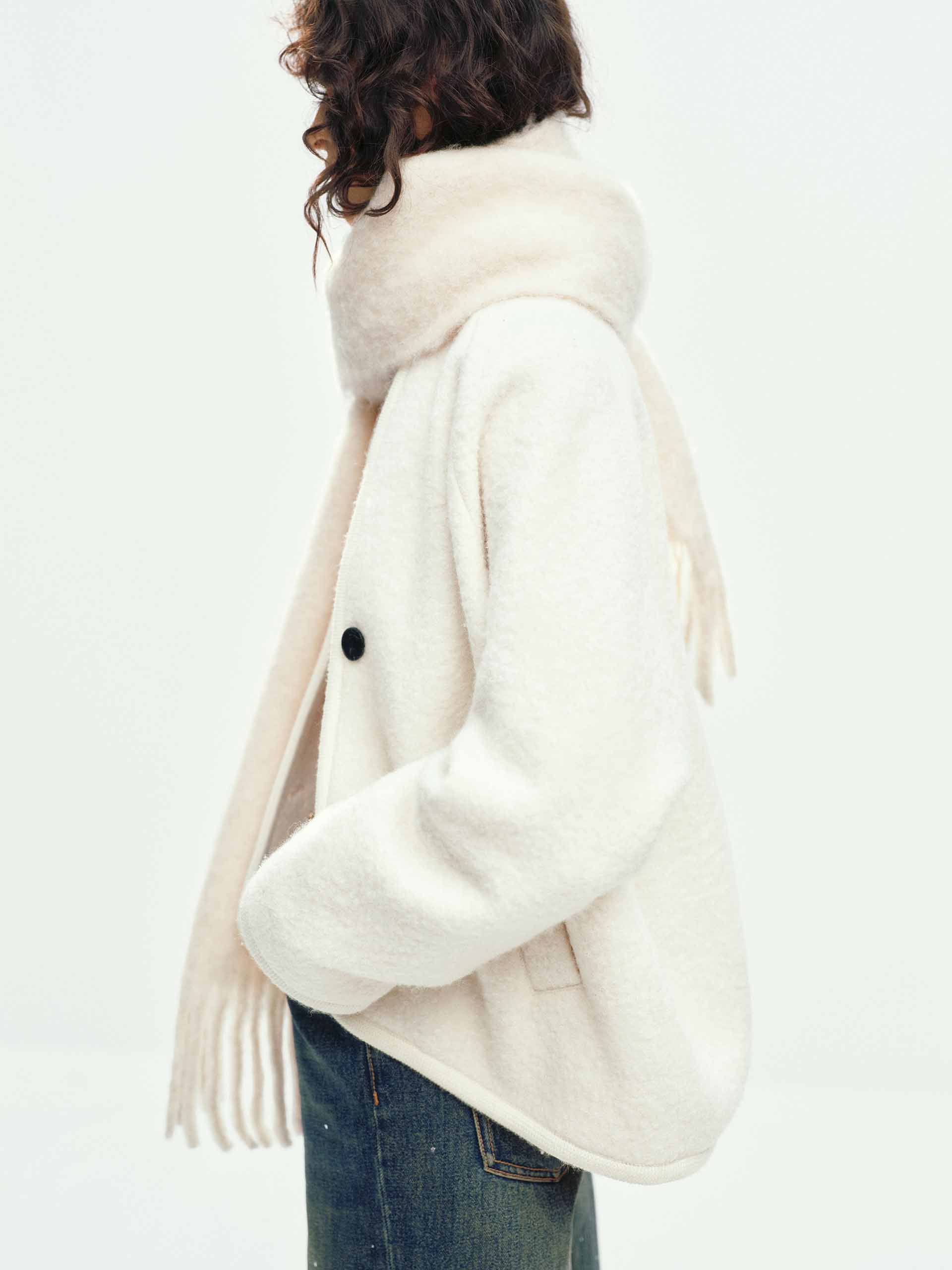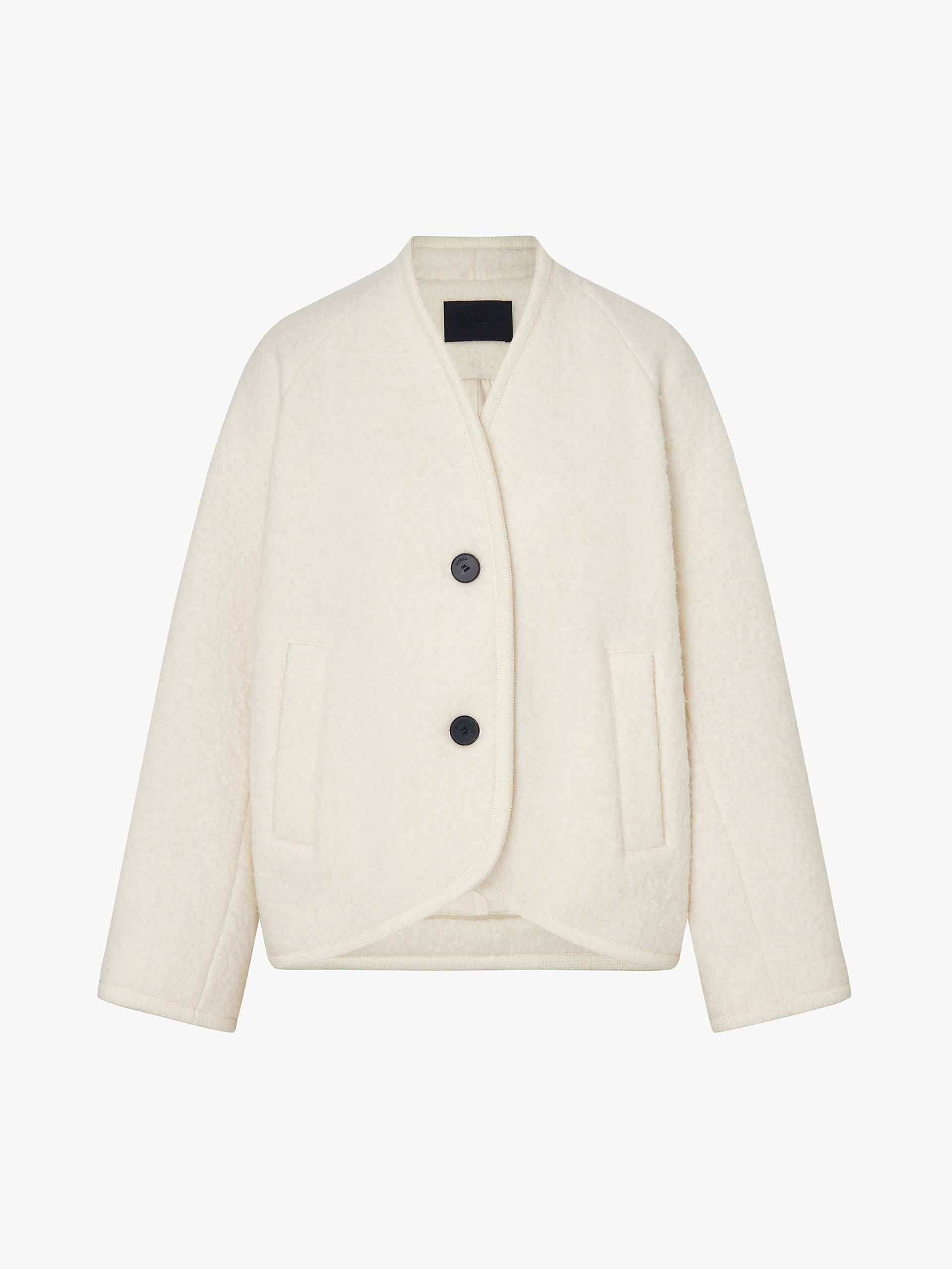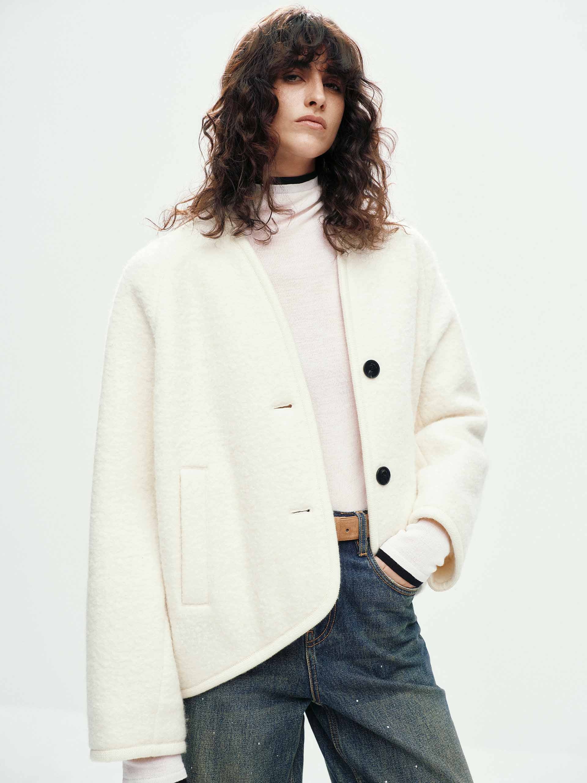 Collarless Merino Wool Coat