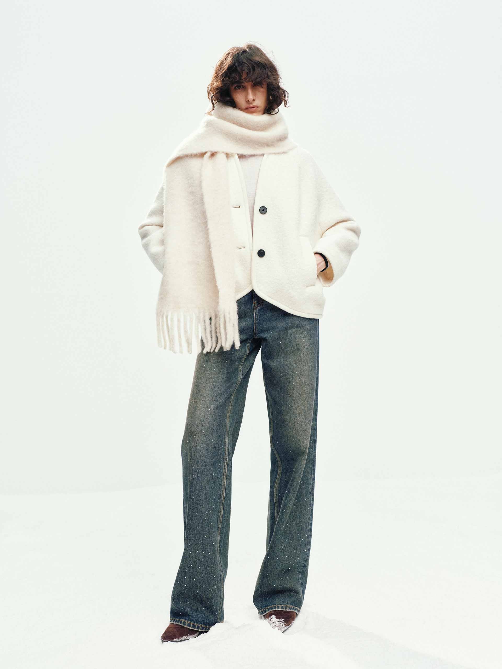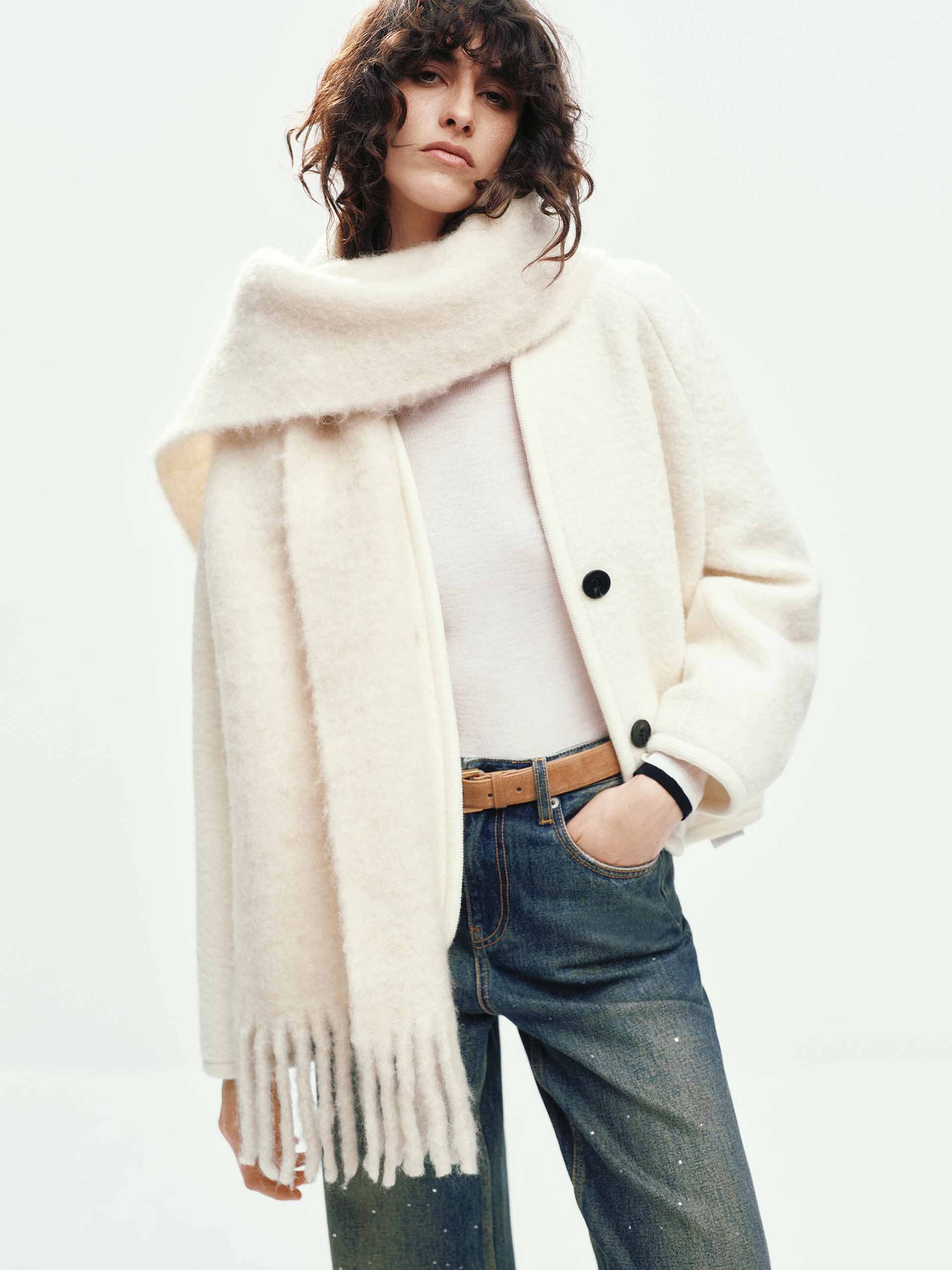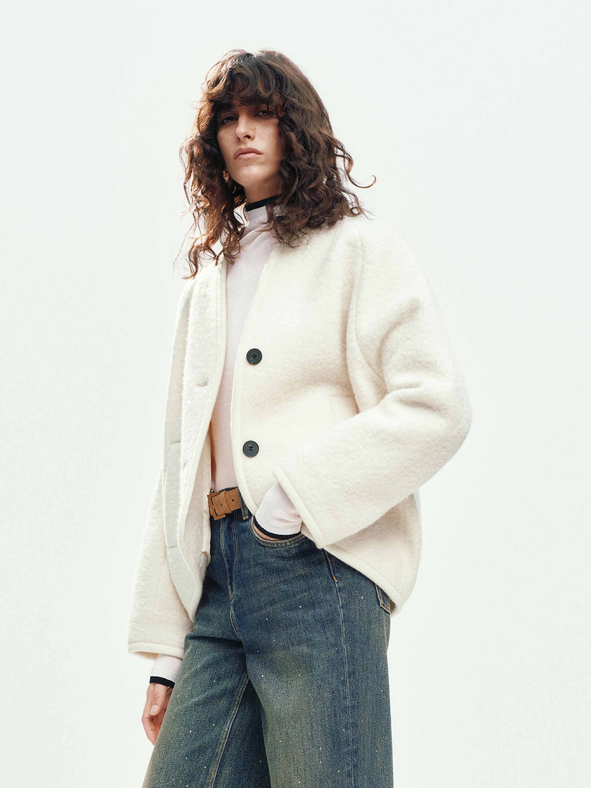 Collarless Merino Wool Coat