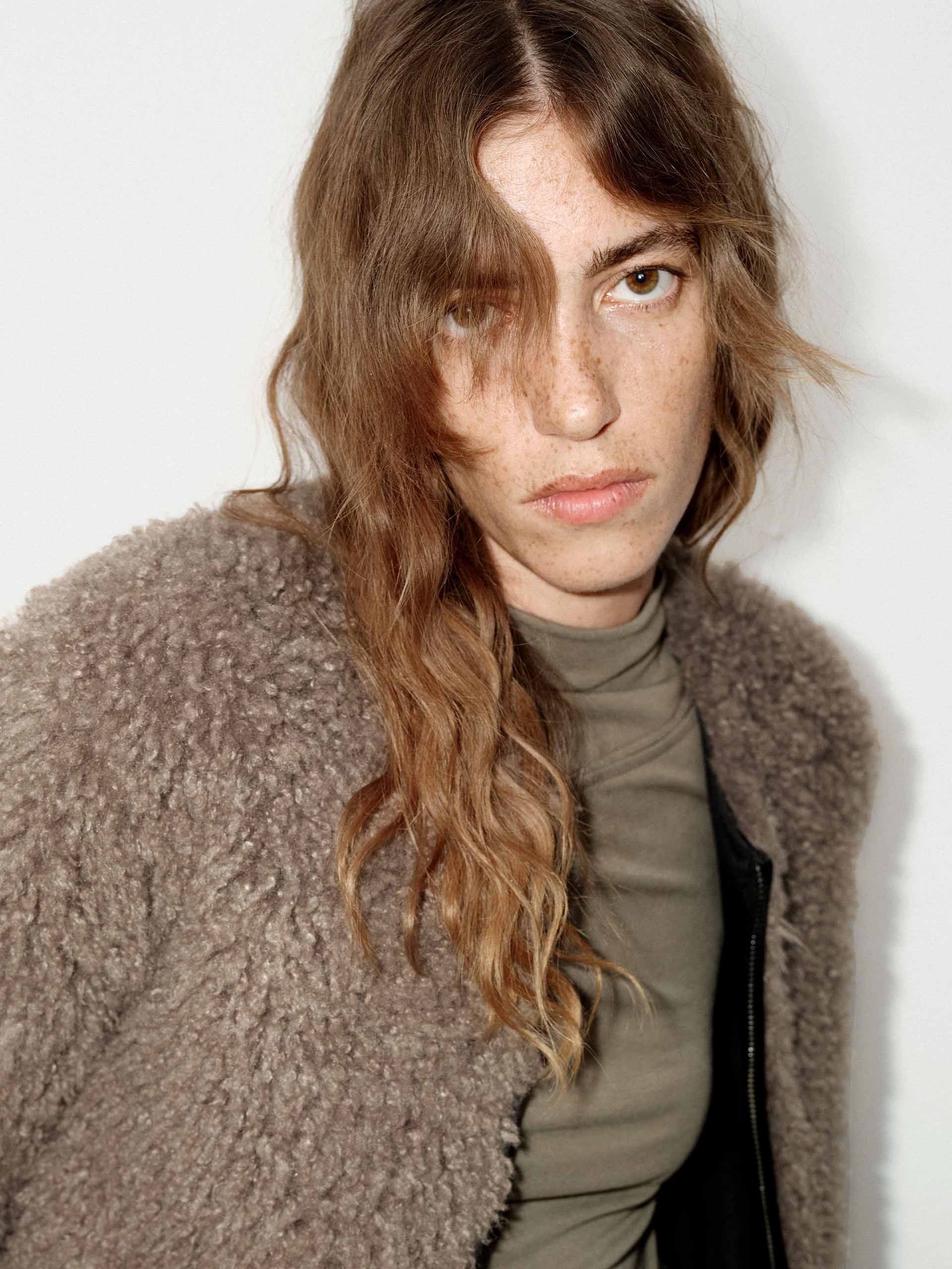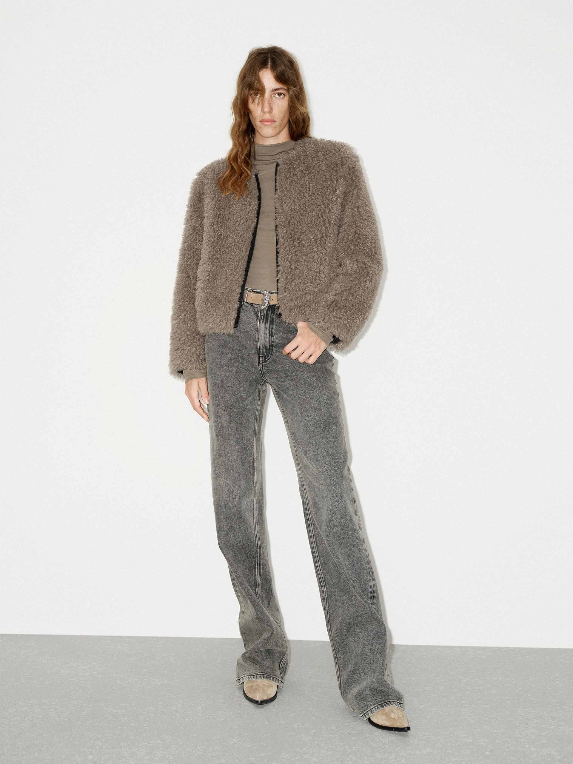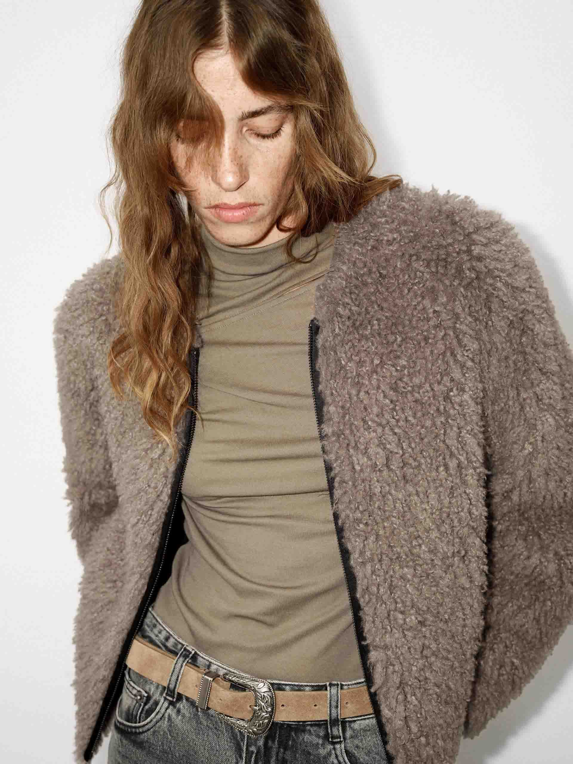 Expertly crafted, this coat offers a stylish and cozy option for colder weather. Features a fluffy boucle texture and faux shearling fur provides a warmth and texture. With its boxy fit, zip closure, and side pockets.