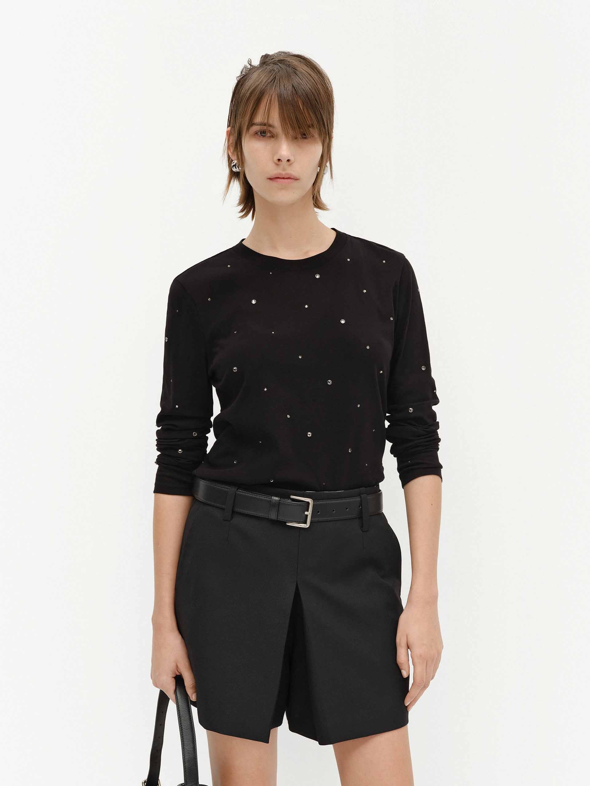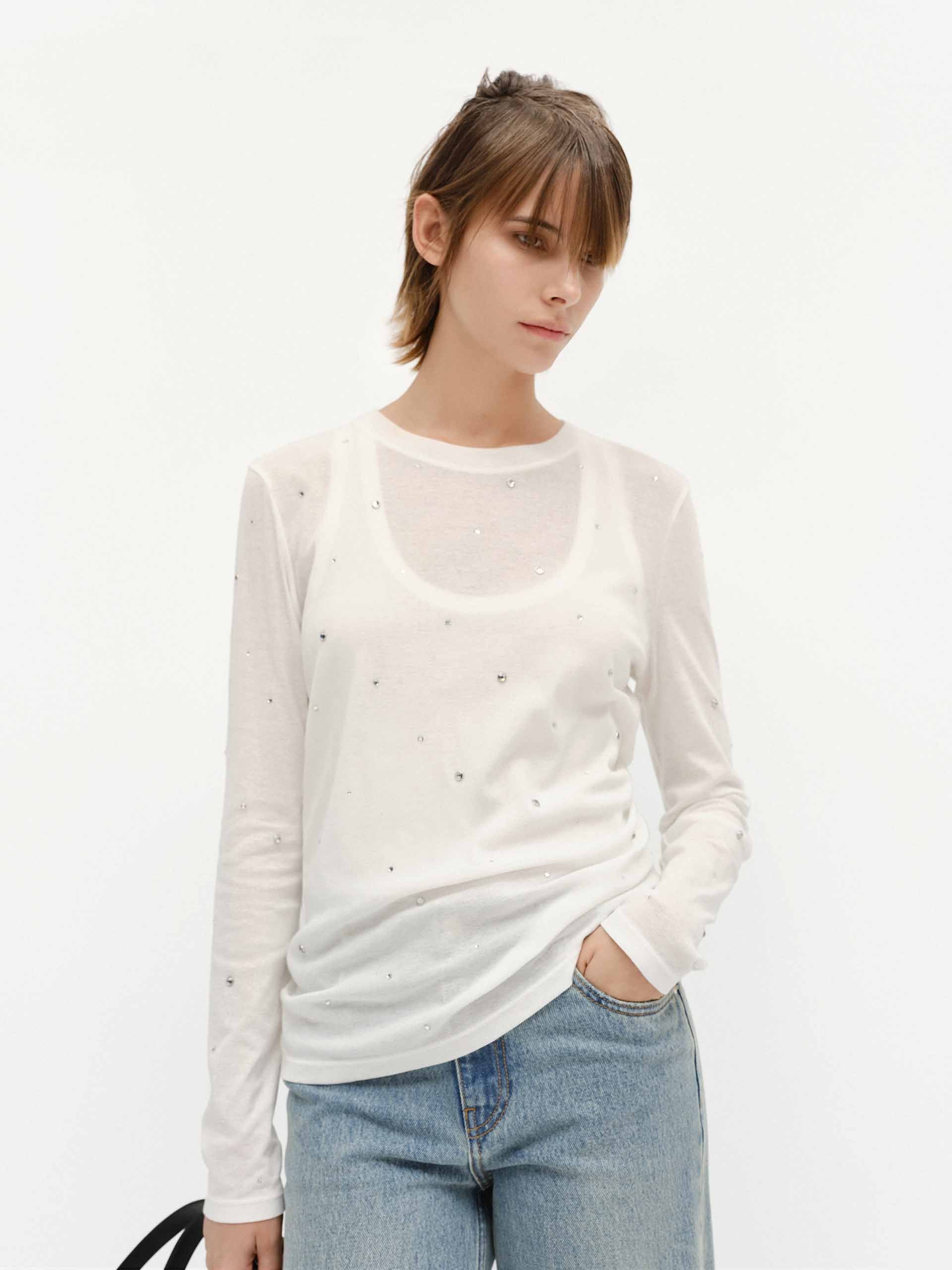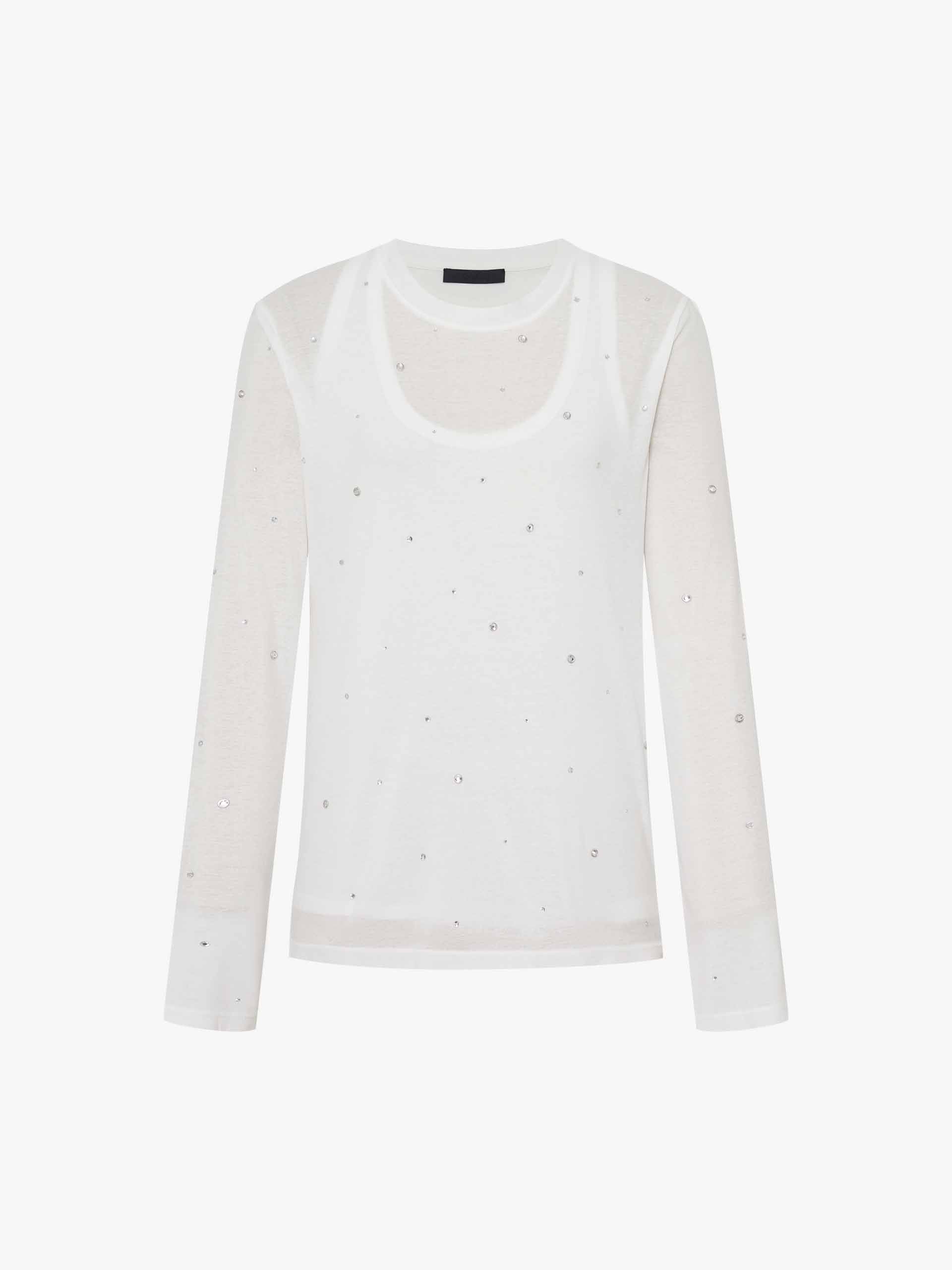 Expertly designed with 100% cotton for ultimate comfort, this set includes a versatile tank that can be styled in multiple ways. Feature a crew neck and crystal embellishments add a touch of sophistication to any outfit.