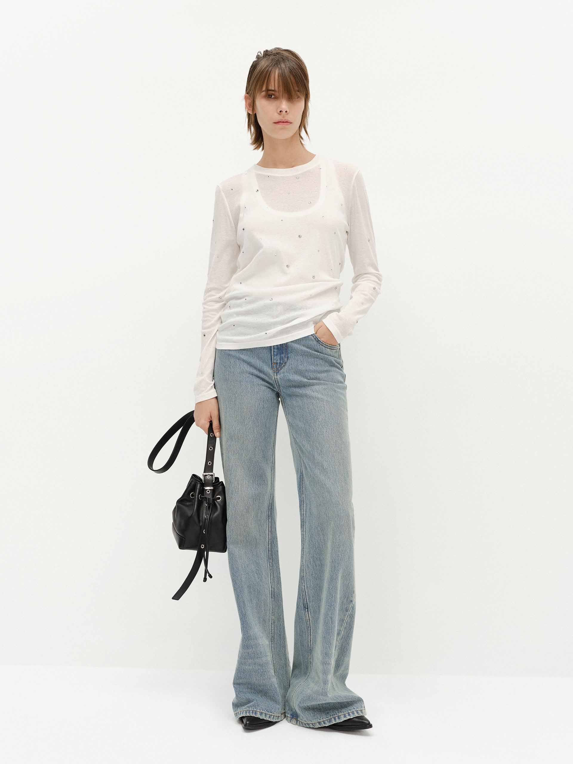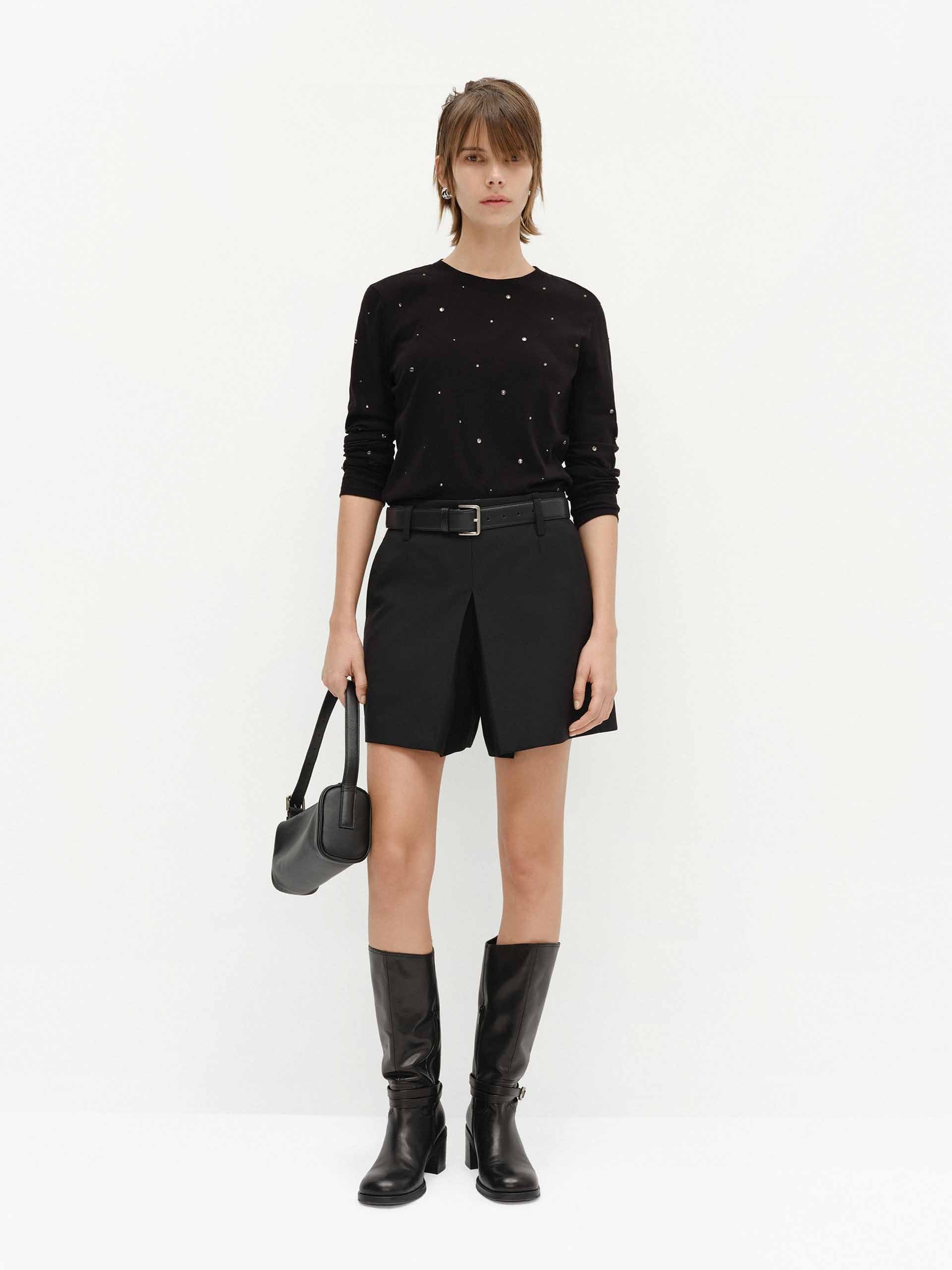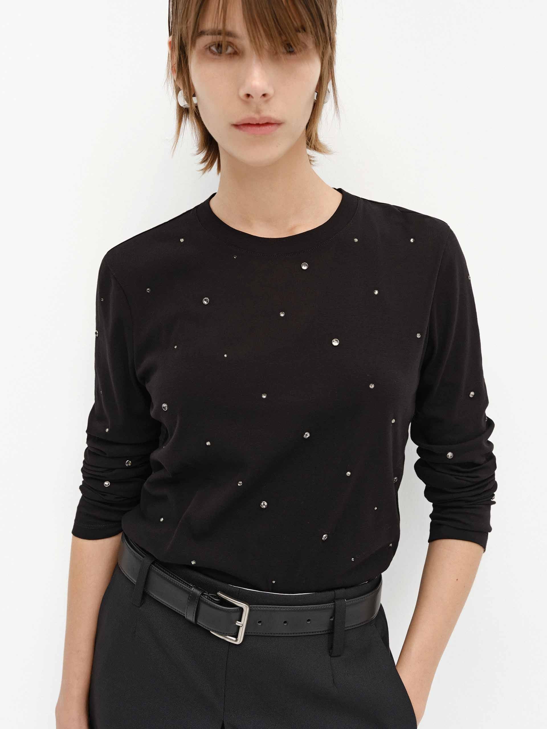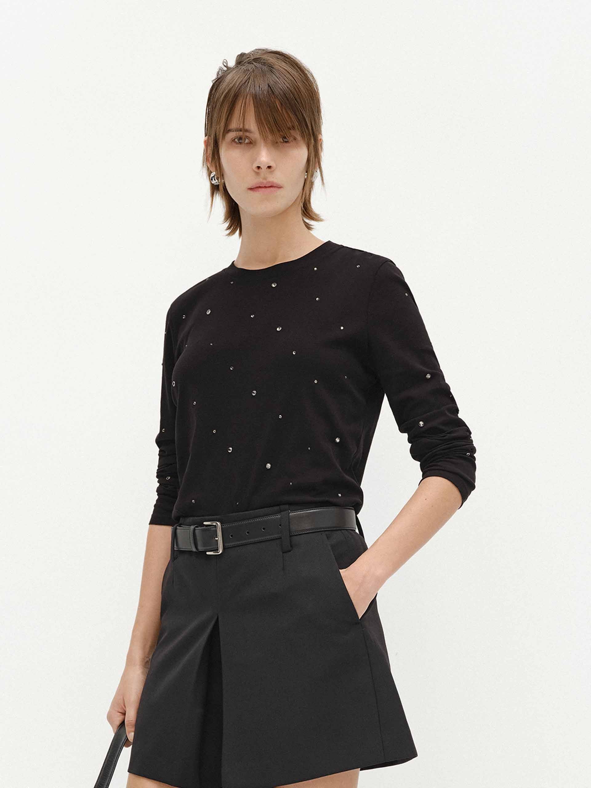 Expertly designed with 100% cotton for ultimate comfort, this set includes a versatile tank that can be styled in multiple ways. Feature a crew neck and crystal embellishments add a touch of sophistication to any outfit.