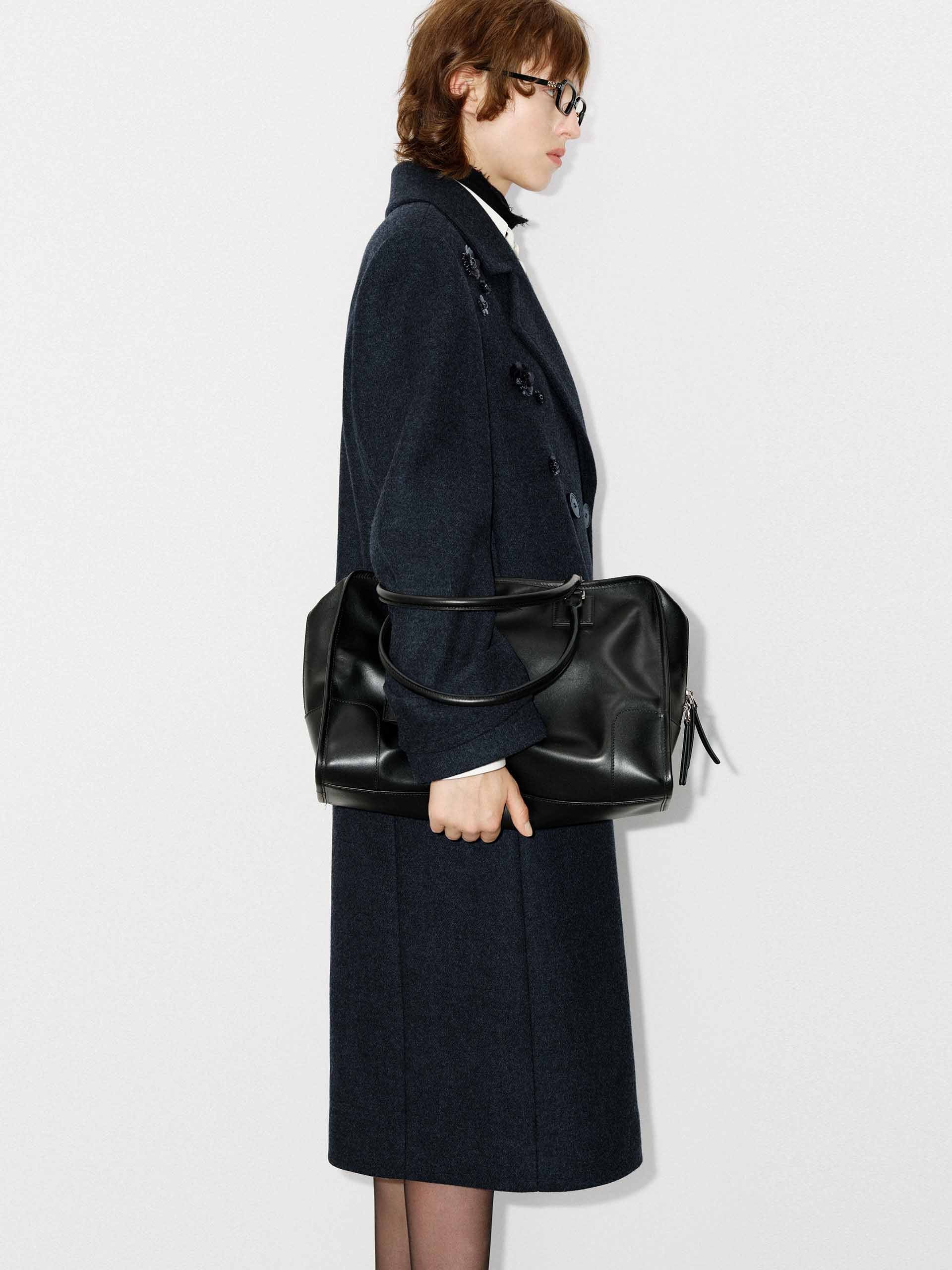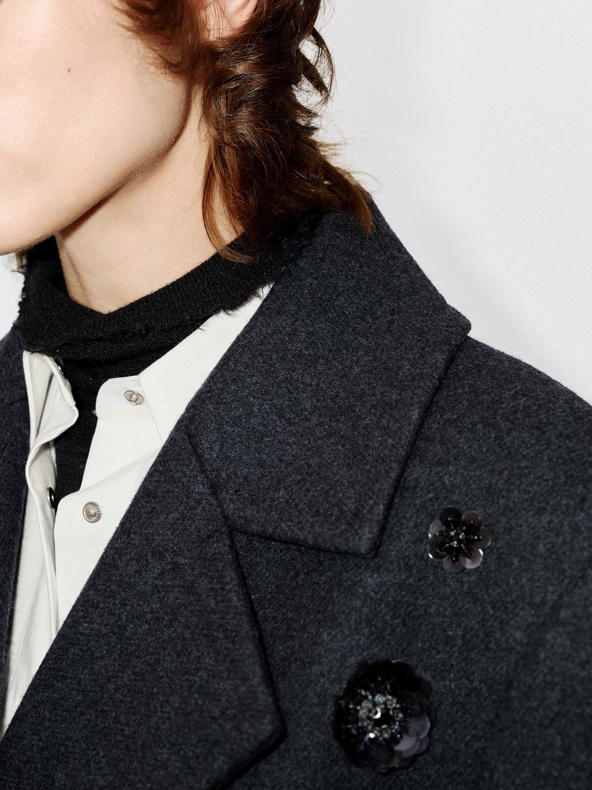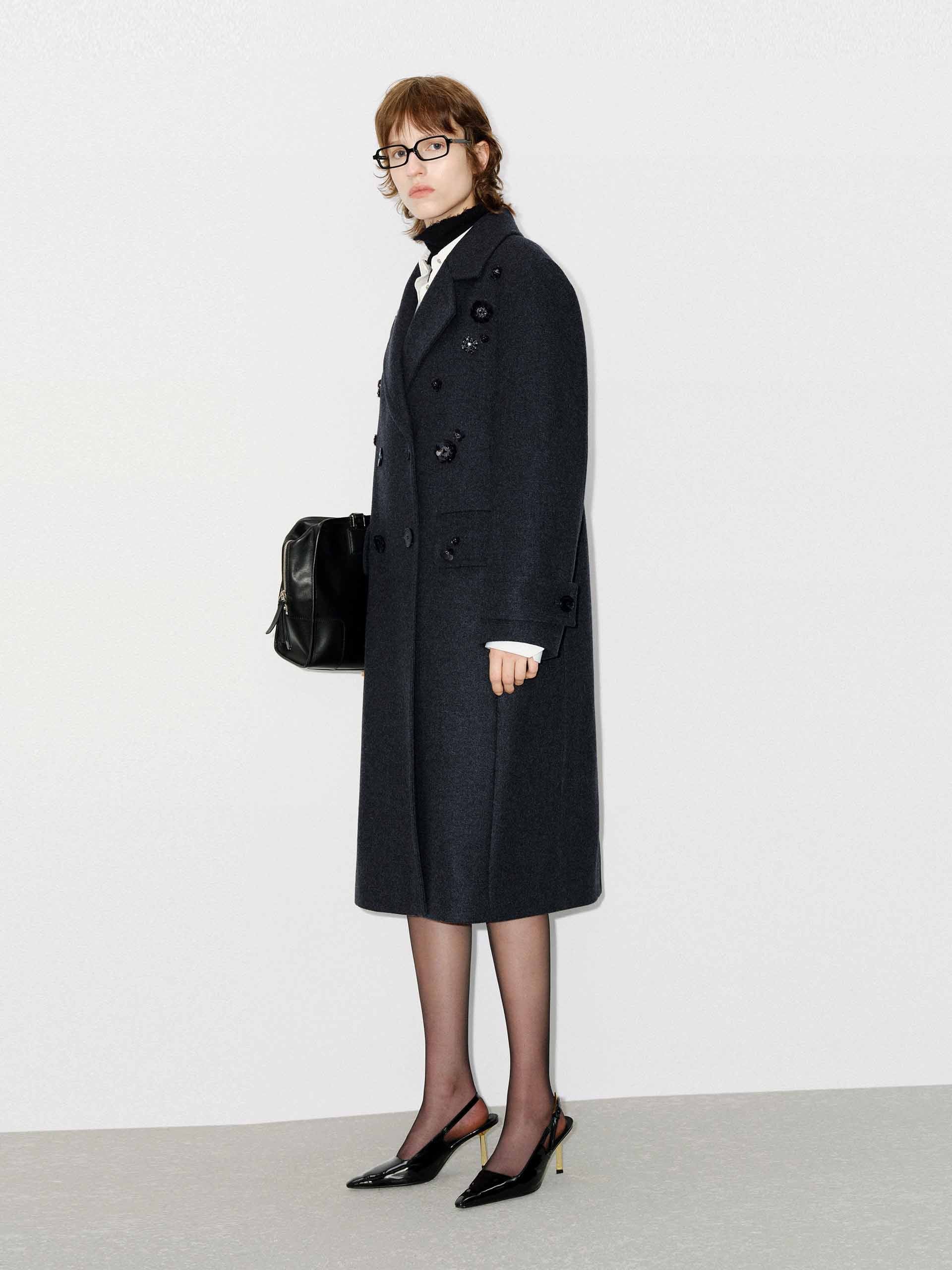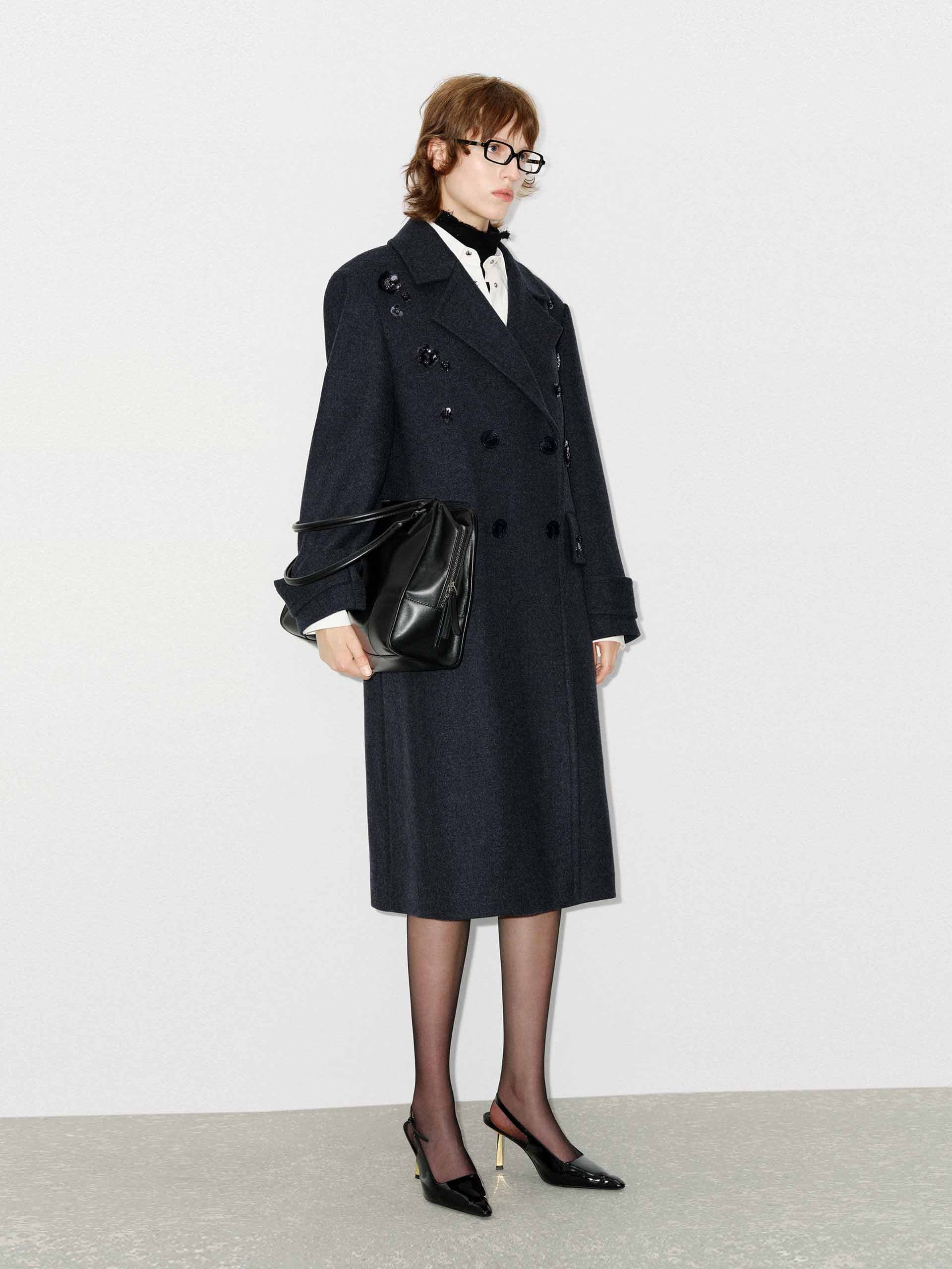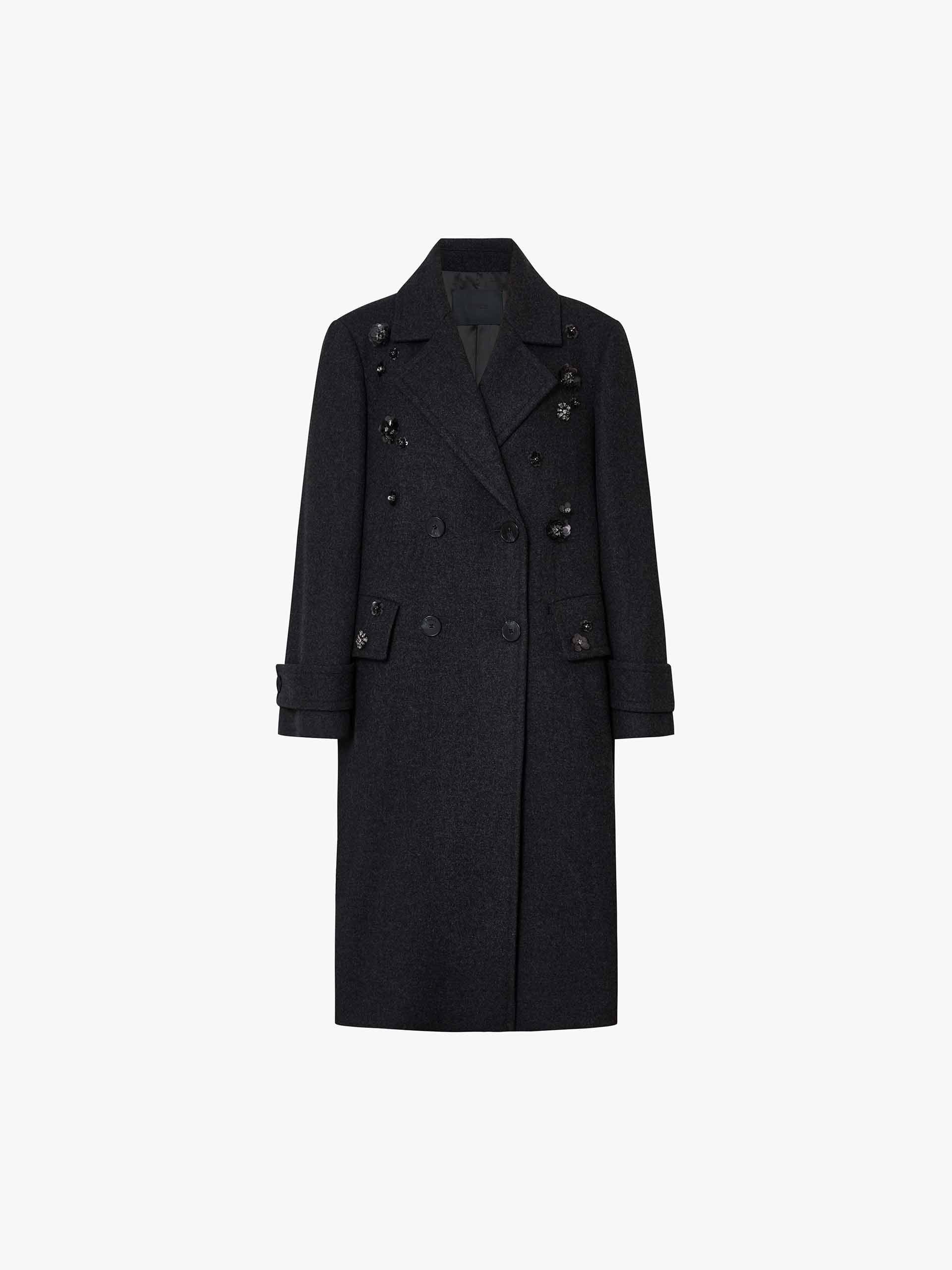 This midi coat is a staple for cooler months. Made from premium merino wool, it offers a luxurious and warmth. Tailored in a relaxed shape with sequin decoration detail and pad shoulders create a flattering and comfortable look.