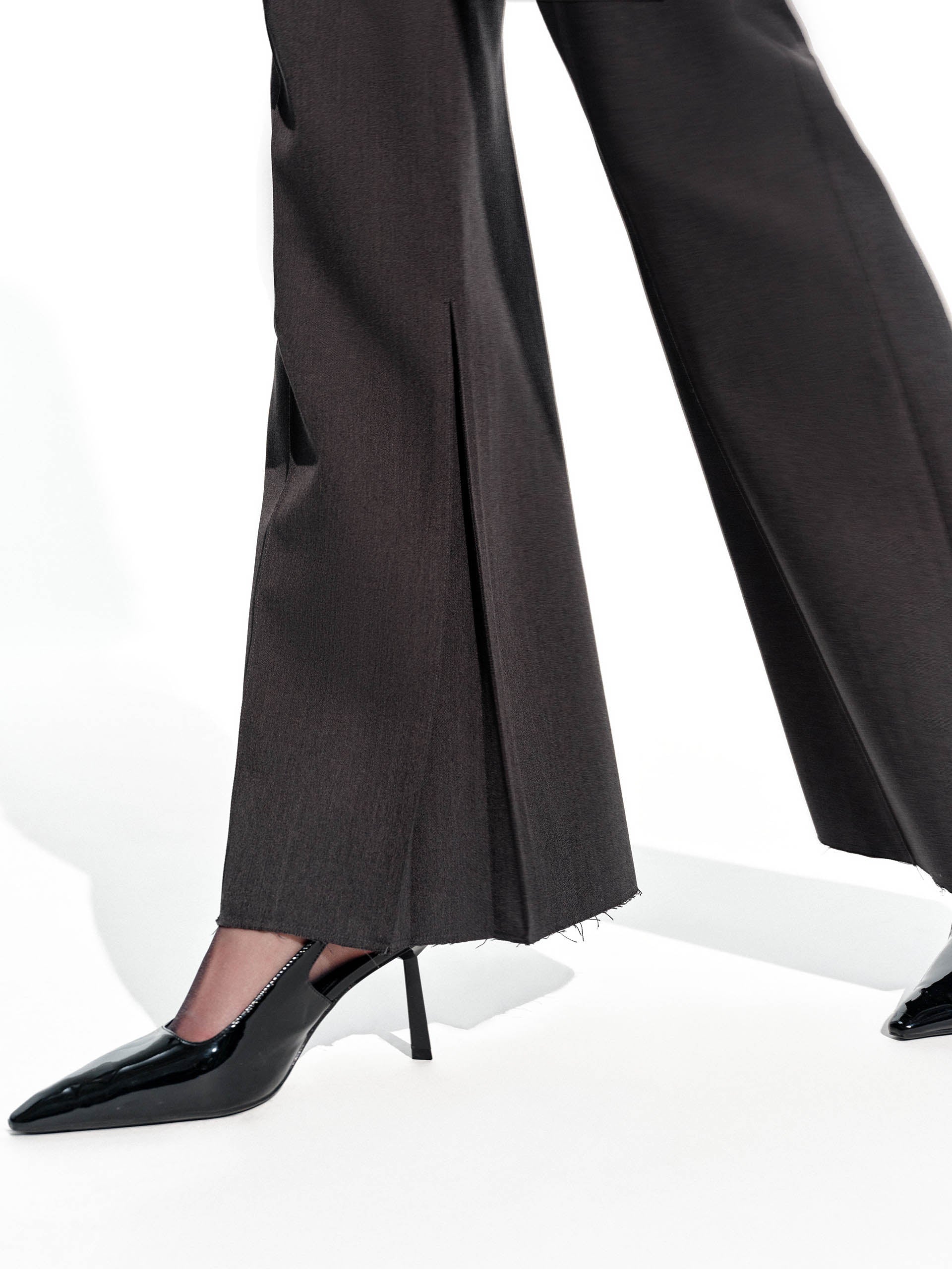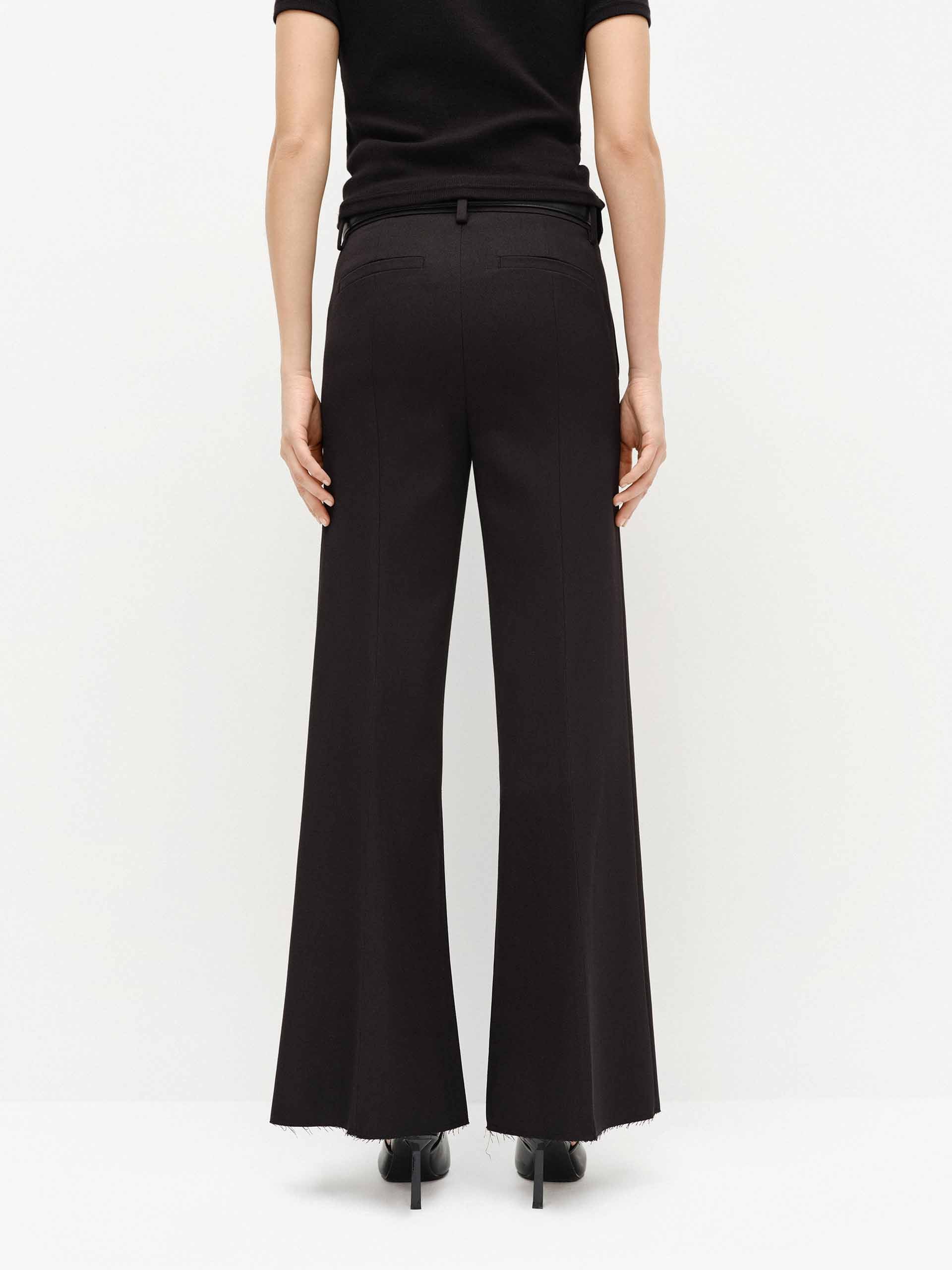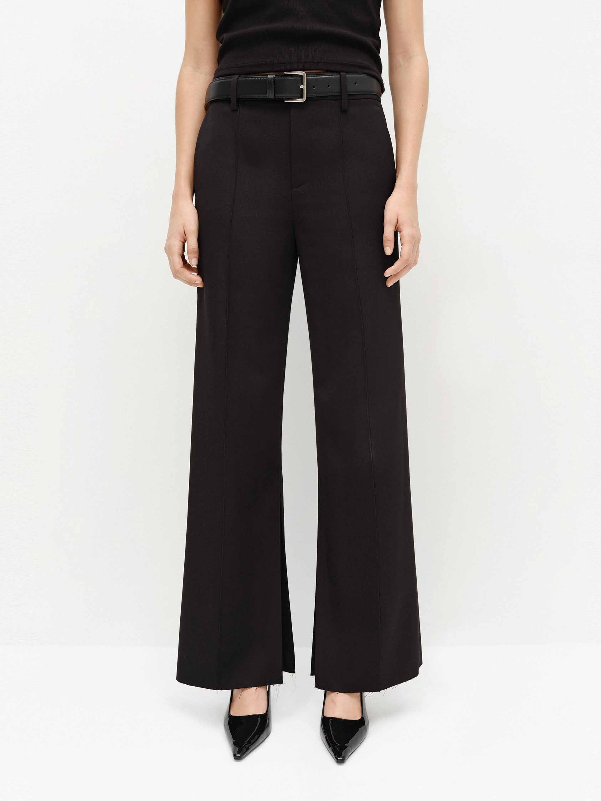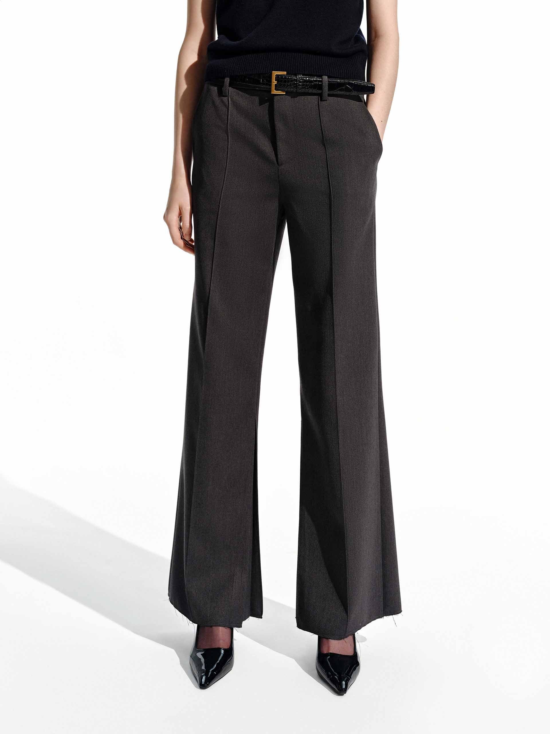 These pants are the perfect addition to your wardrobe, expertly tailored and effortlessly stylish. Featuring a relaxed, flared leg and raw hem detailing. The side paneled design adds a touch of sophistication, while the ankle-length hems accentuate your shoe choice.
