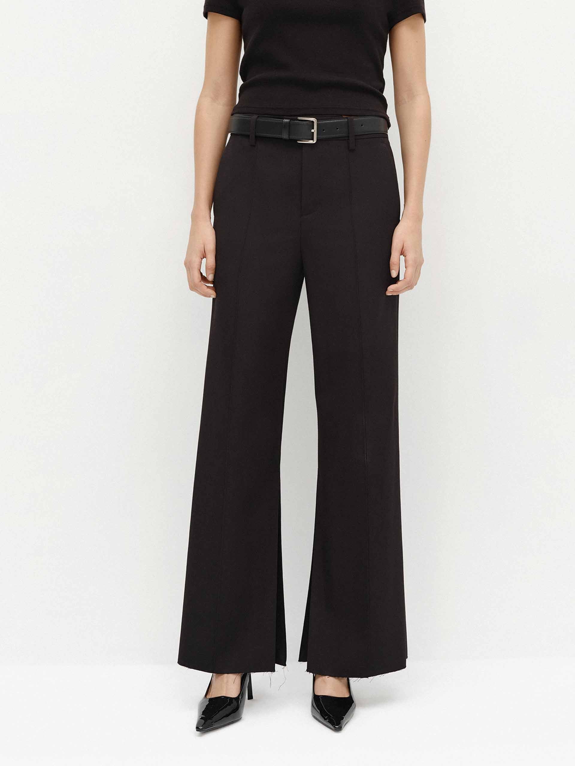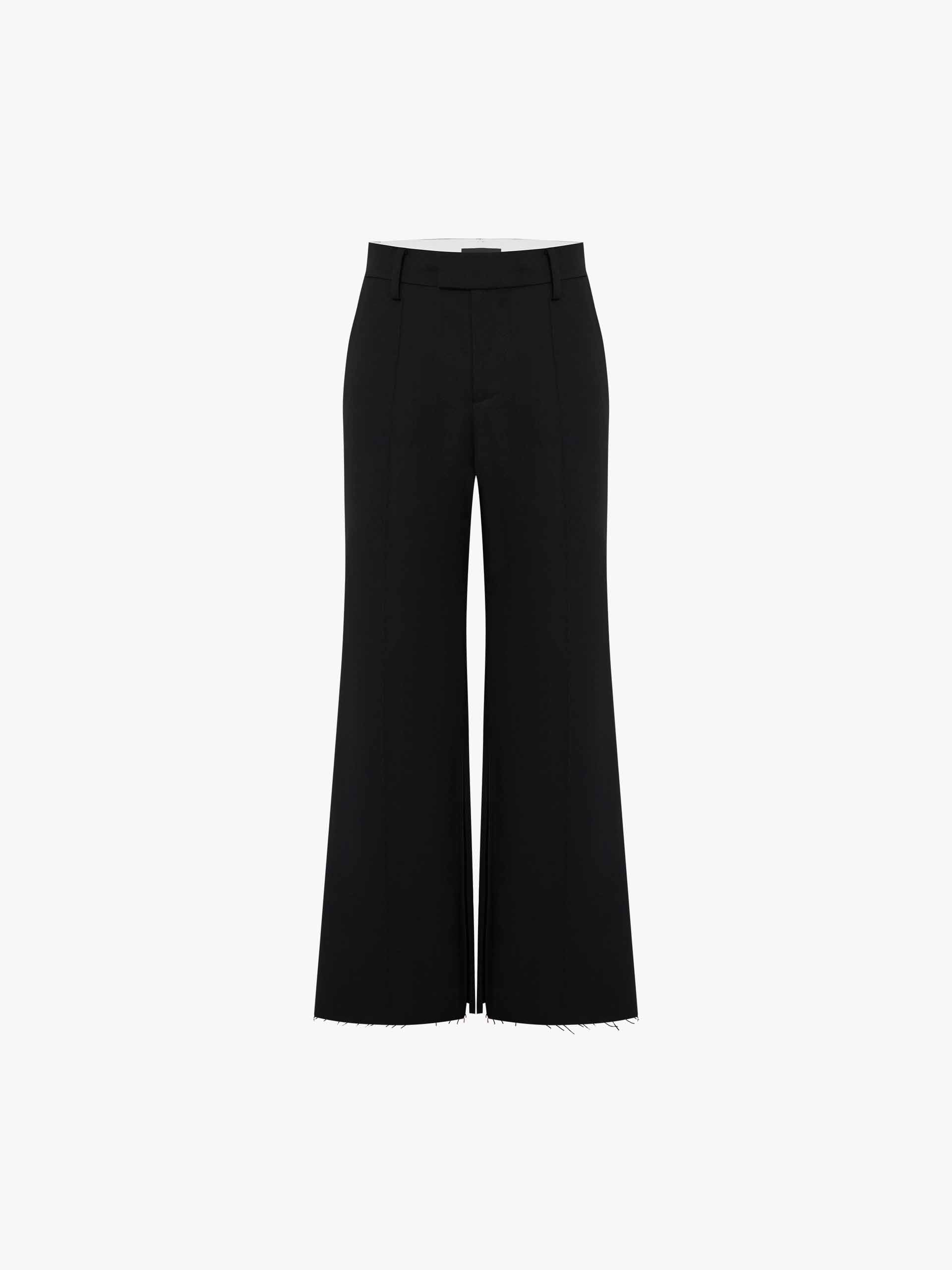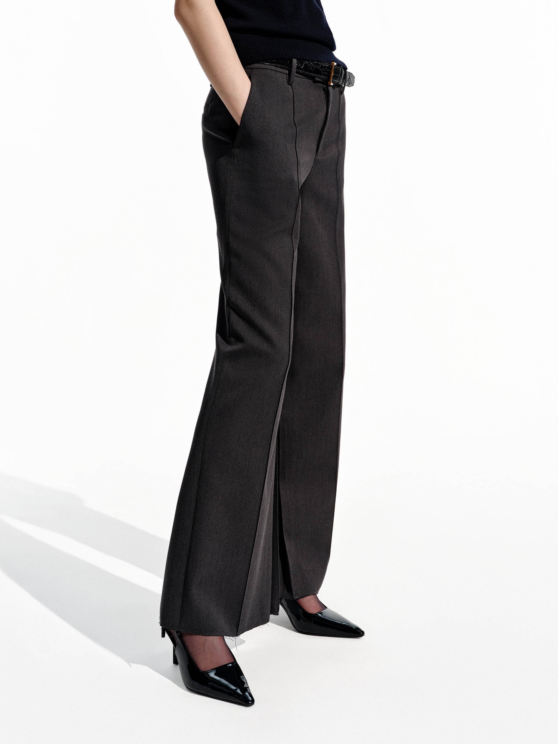 These pants are the perfect addition to your wardrobe, expertly tailored and effortlessly stylish. Featuring a relaxed, flared leg and raw hem detailing. The side paneled design adds a touch of sophistication, while the ankle-length hems accentuate your shoe choice.