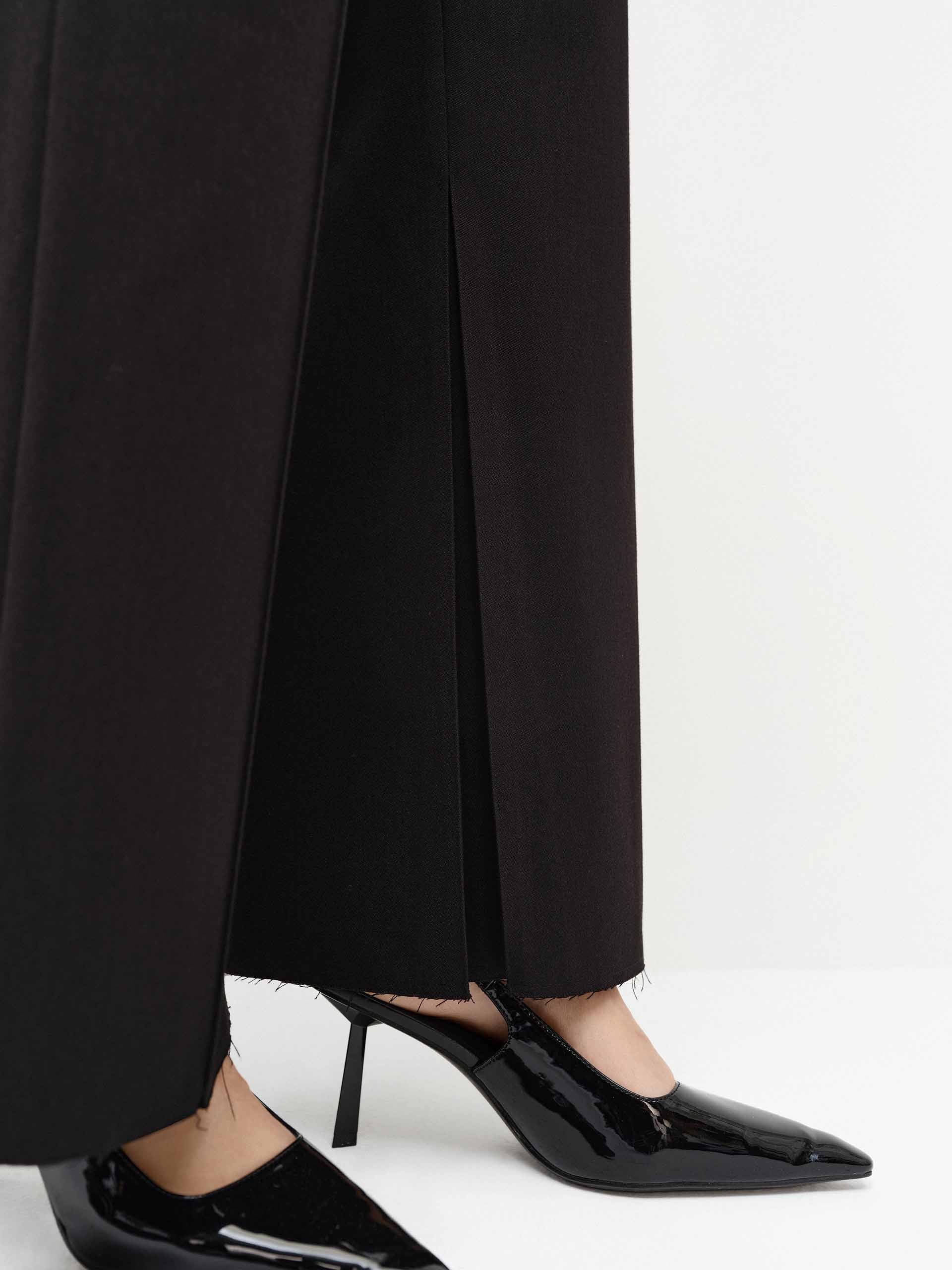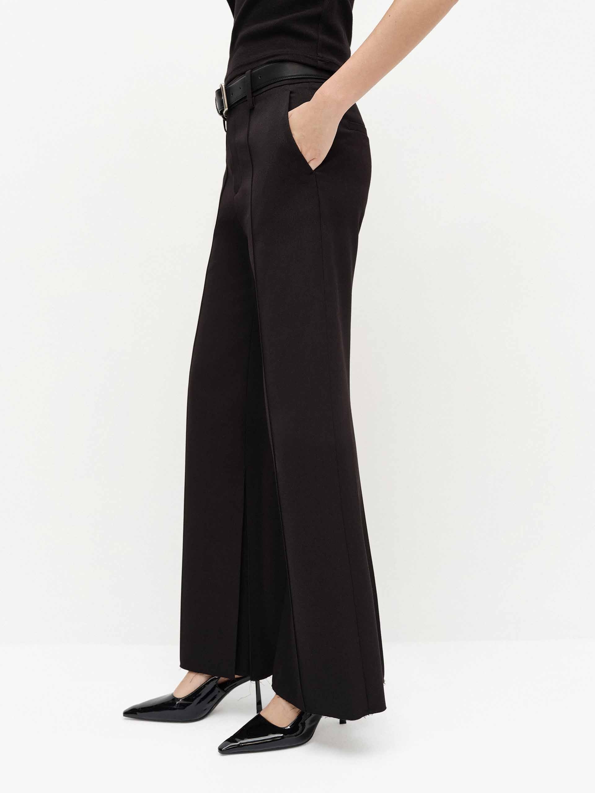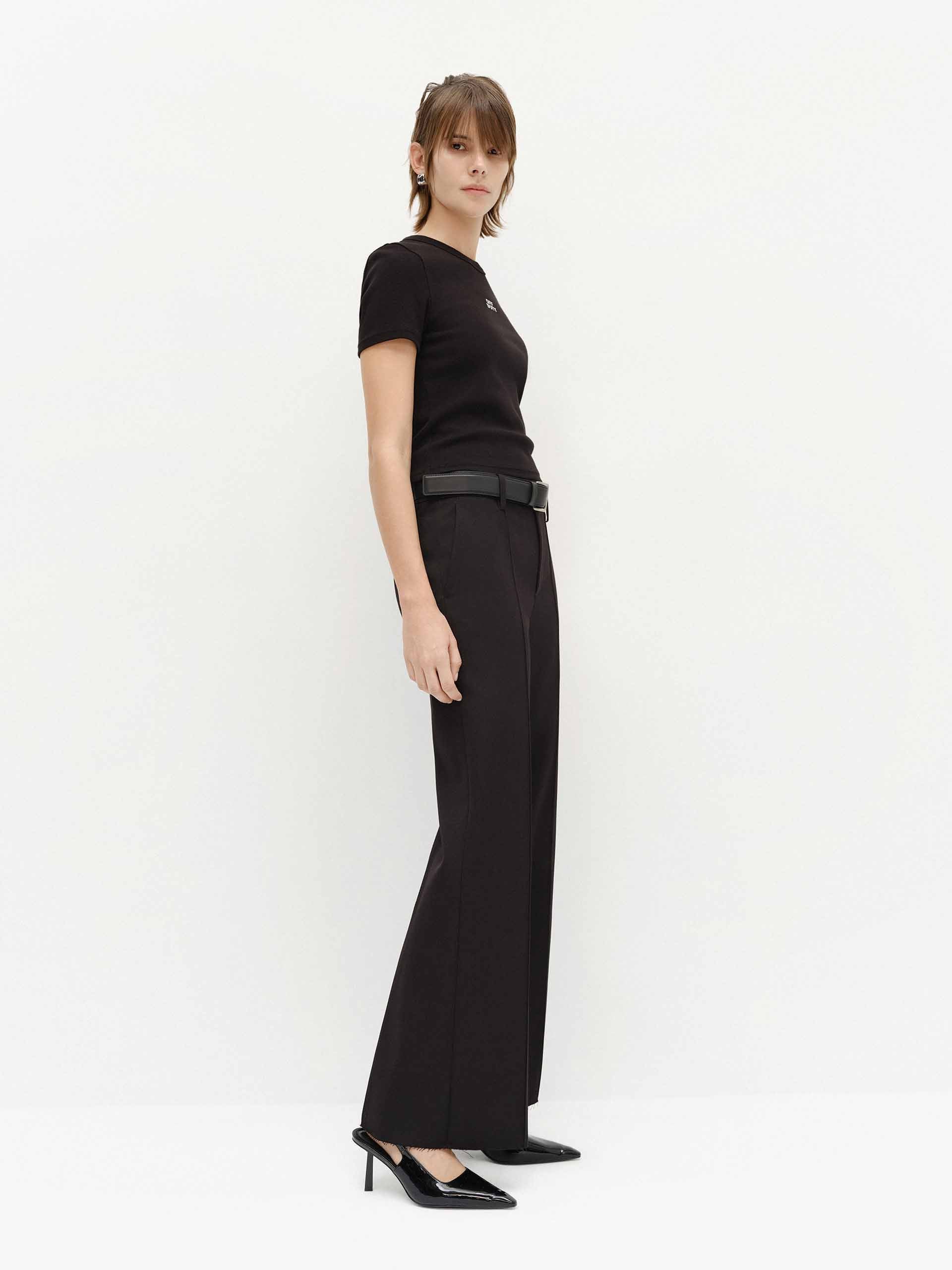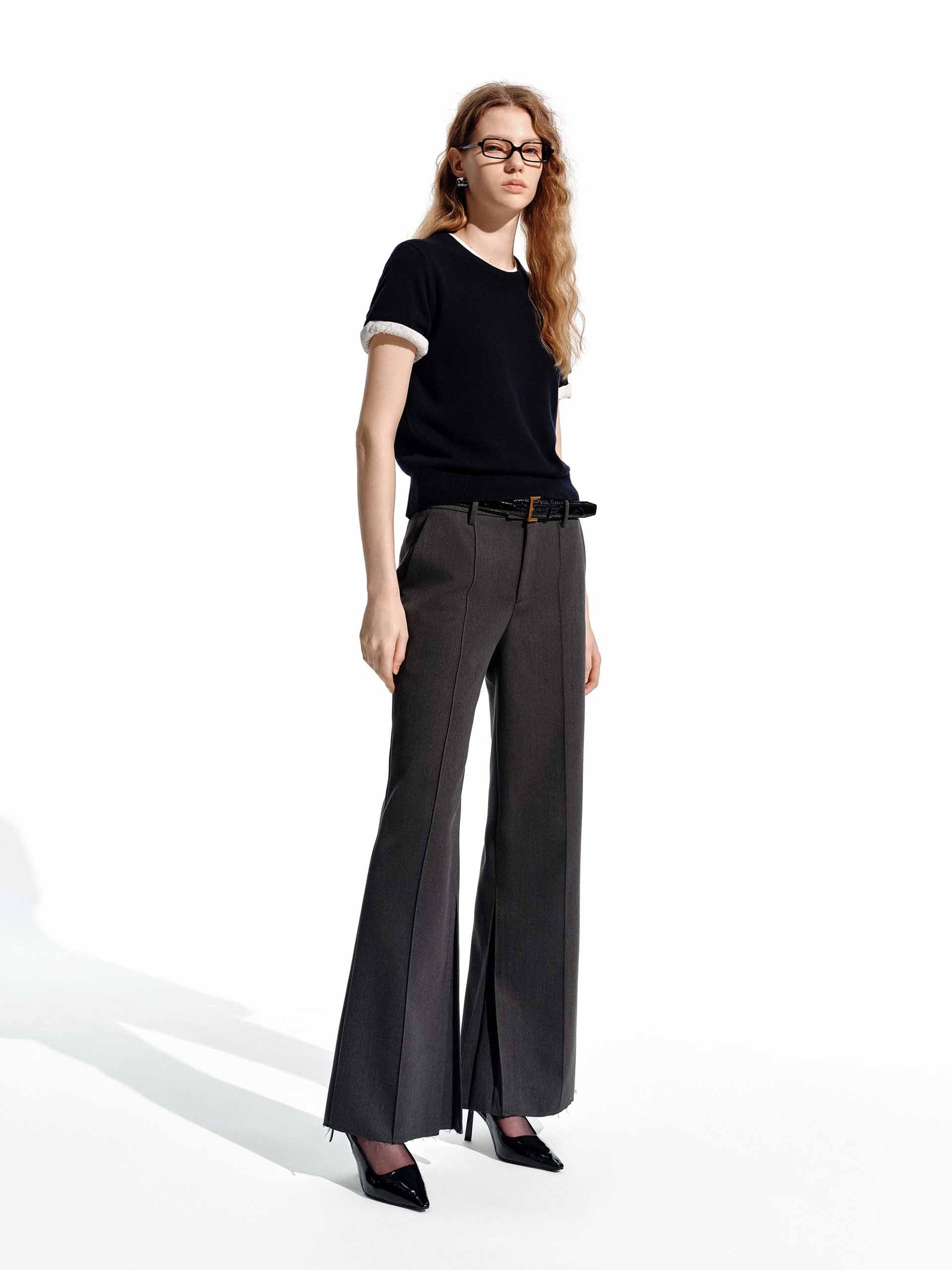 These pants are the perfect addition to your wardrobe, expertly tailored and effortlessly stylish. Featuring a relaxed, flared leg and raw hem detailing. The side paneled design adds a touch of sophistication, while the ankle-length hems accentuate your shoe choice.