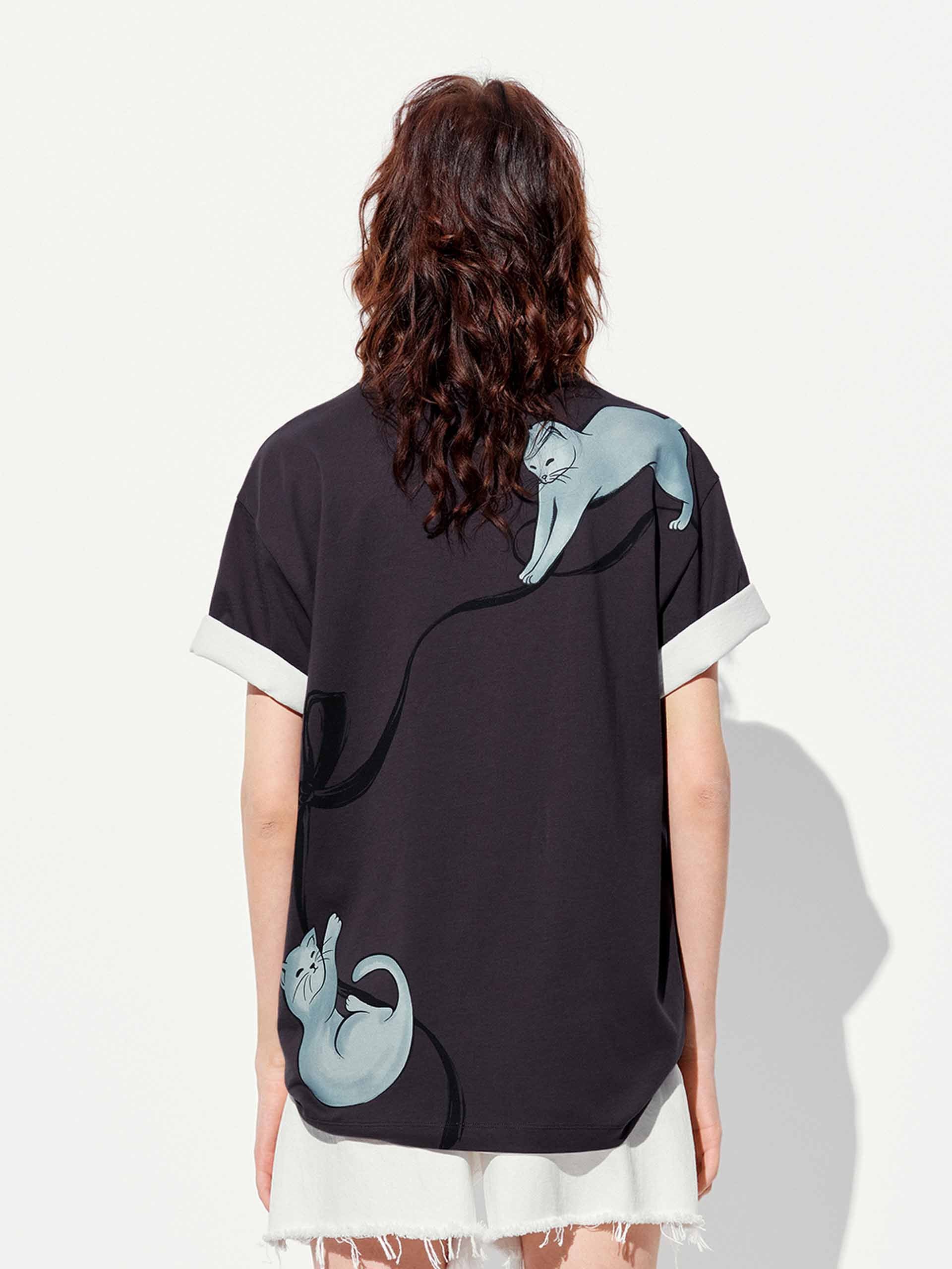 MO&Co. Women's Cat Pattern Cotton T-shirt