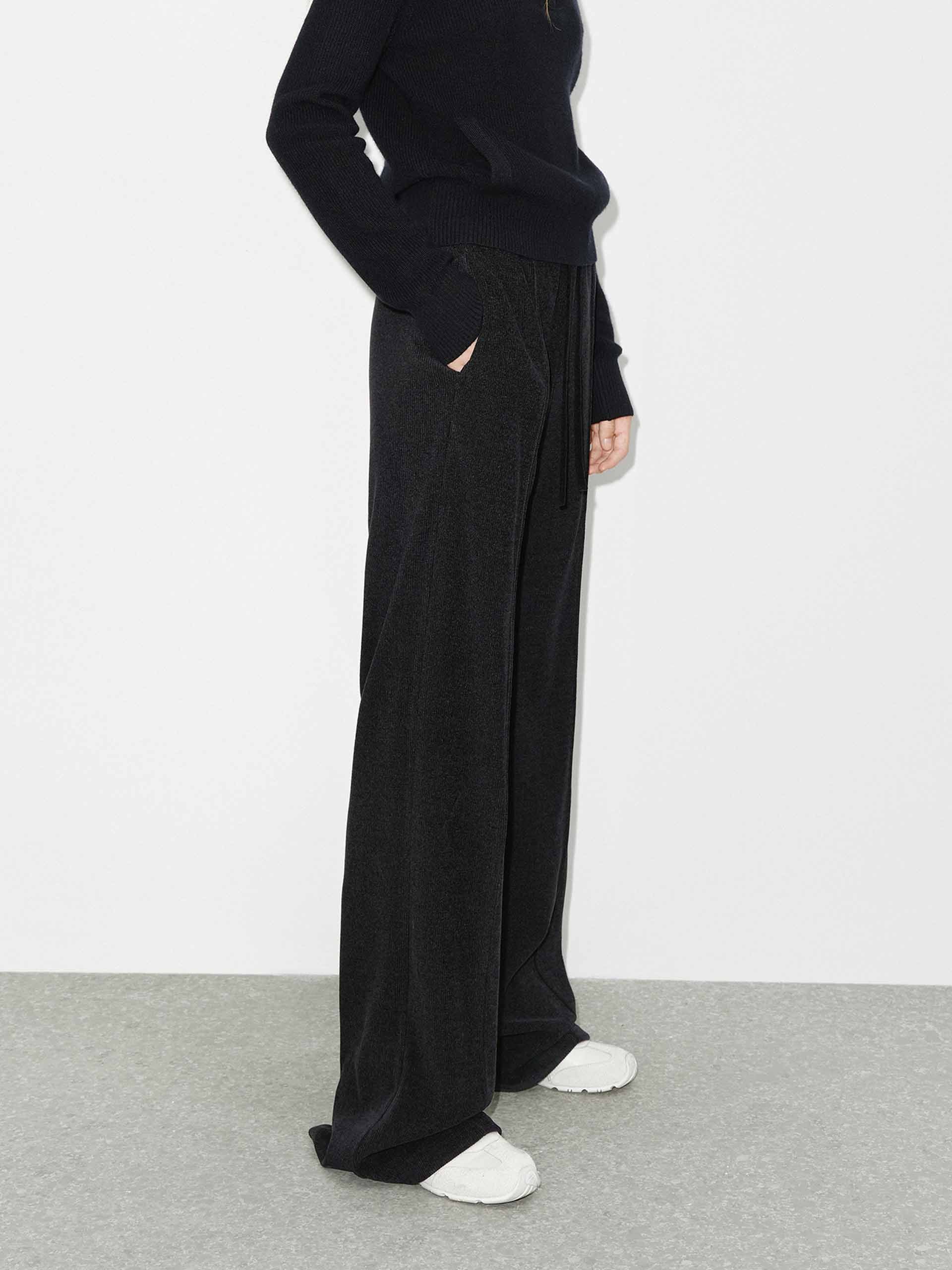 Discover our cozy casual pants this AW season. Made with soft corduroy fabric, it features an elastic waist and convenient side pockets. Pair them with cozy knitwear for a stylish and comfortable look.