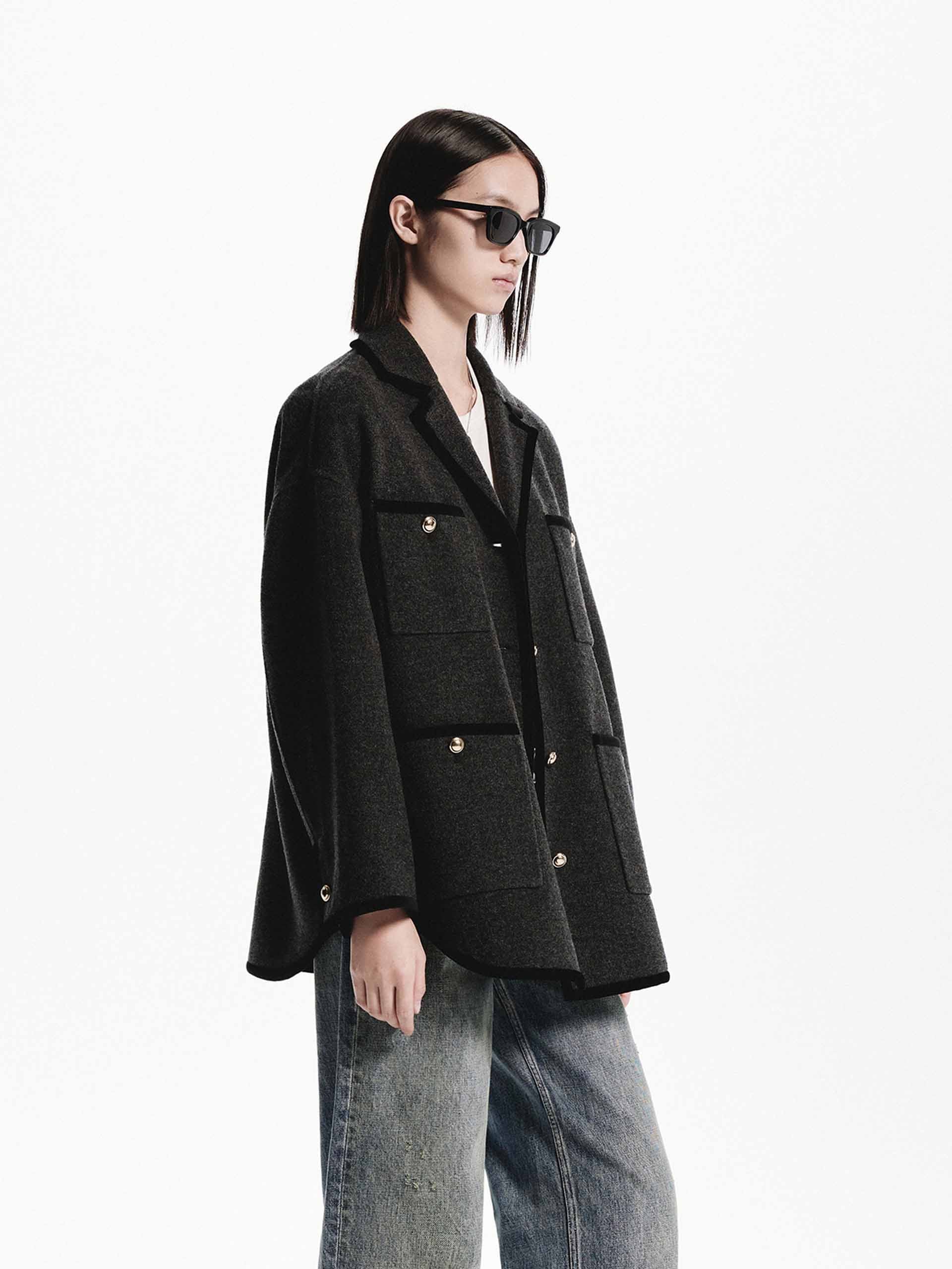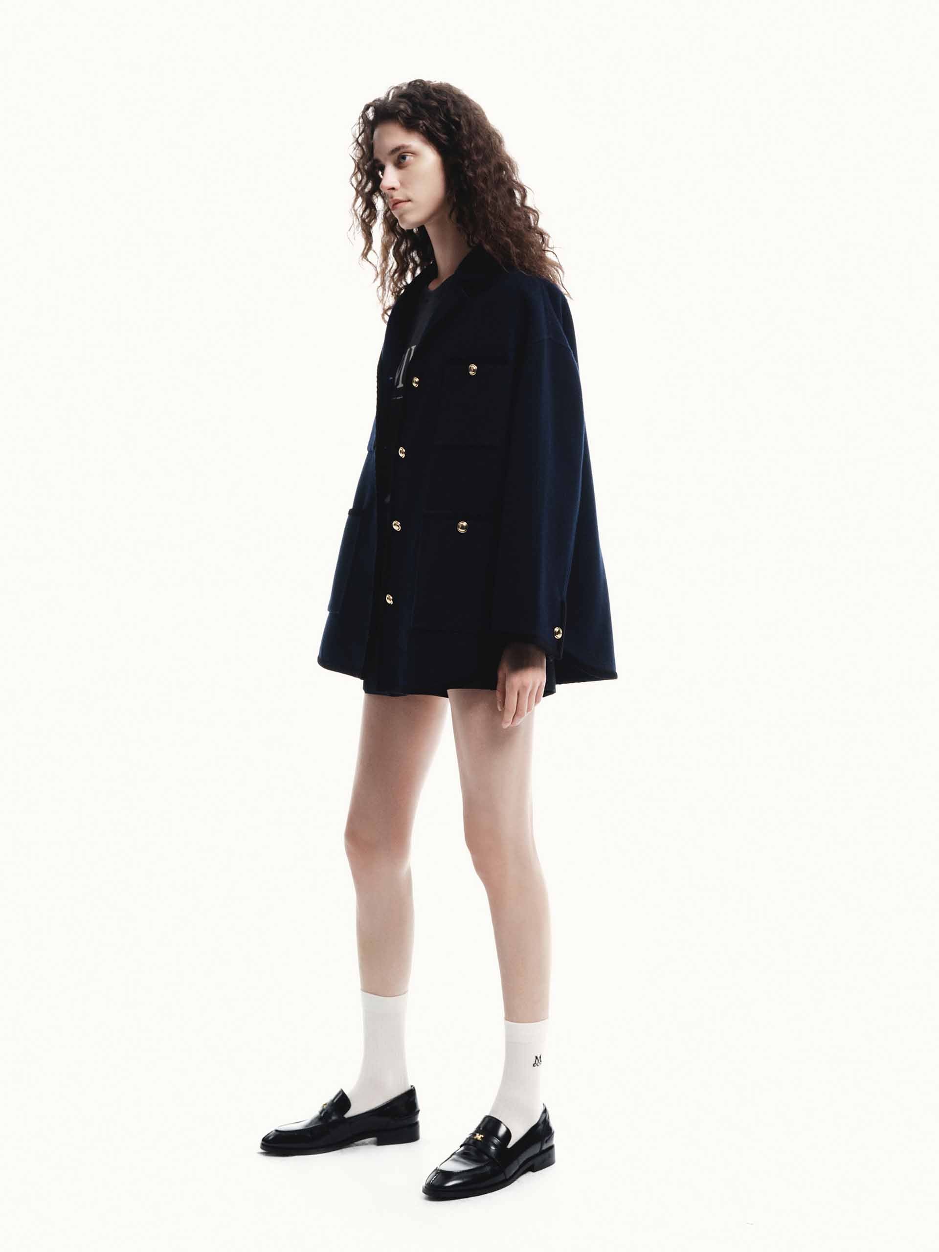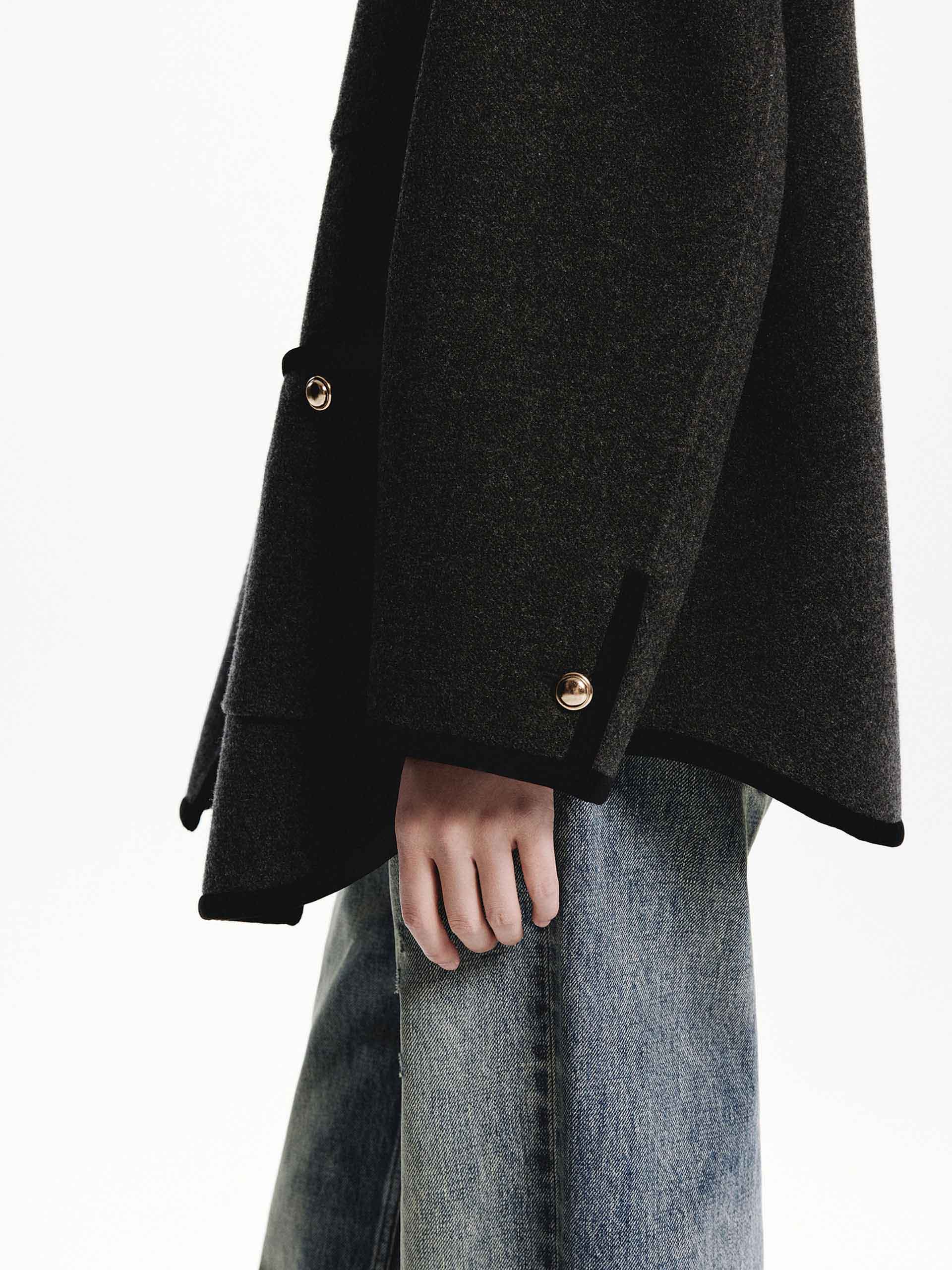This versatile coat, part of our 2024 Pre-Fall collection, is crafted from double-sided, premium Merino wool. With its midi length and metallic button detailing, this timeless piece will keep you warm and stylish throughout the cooler months.