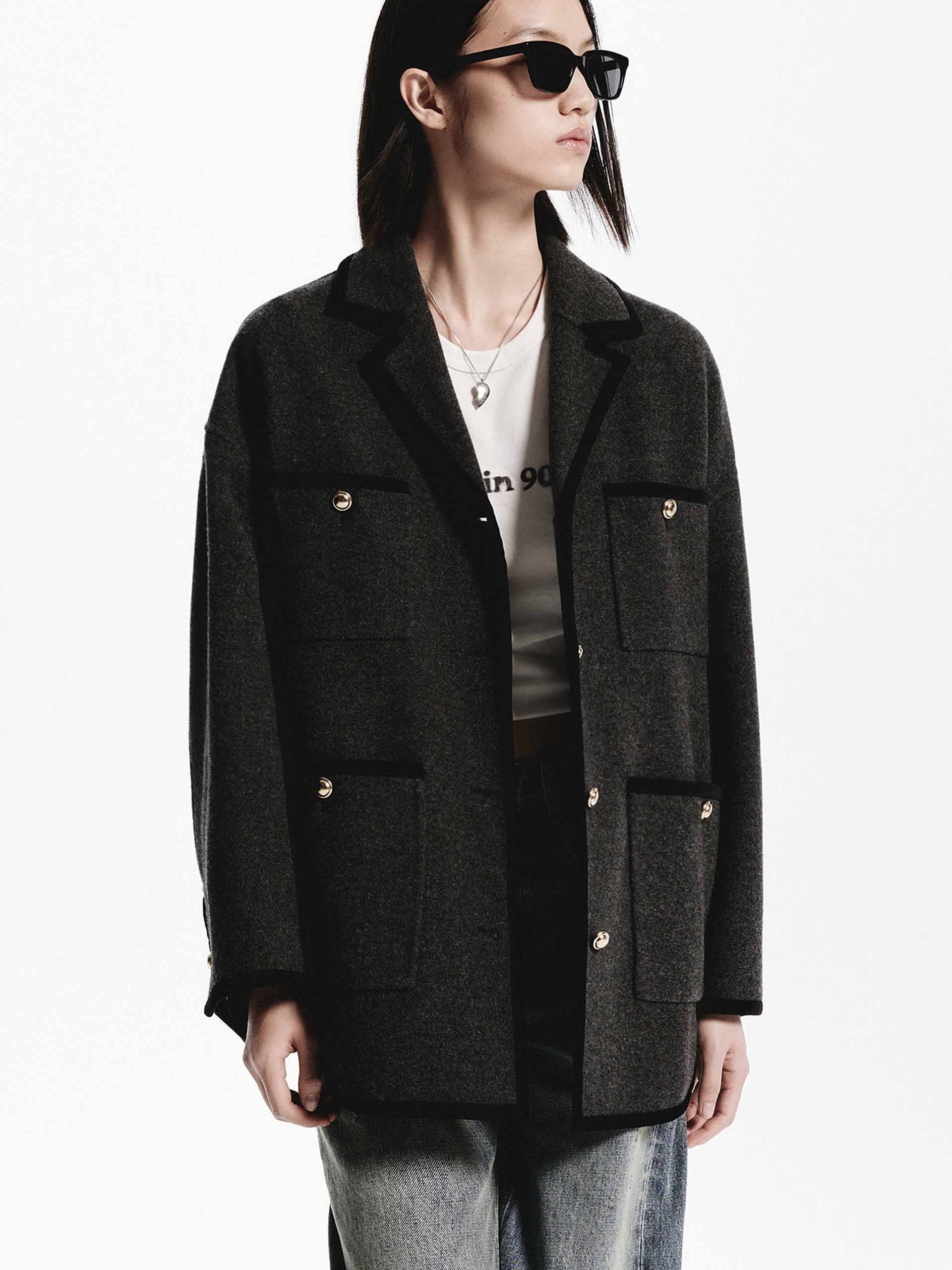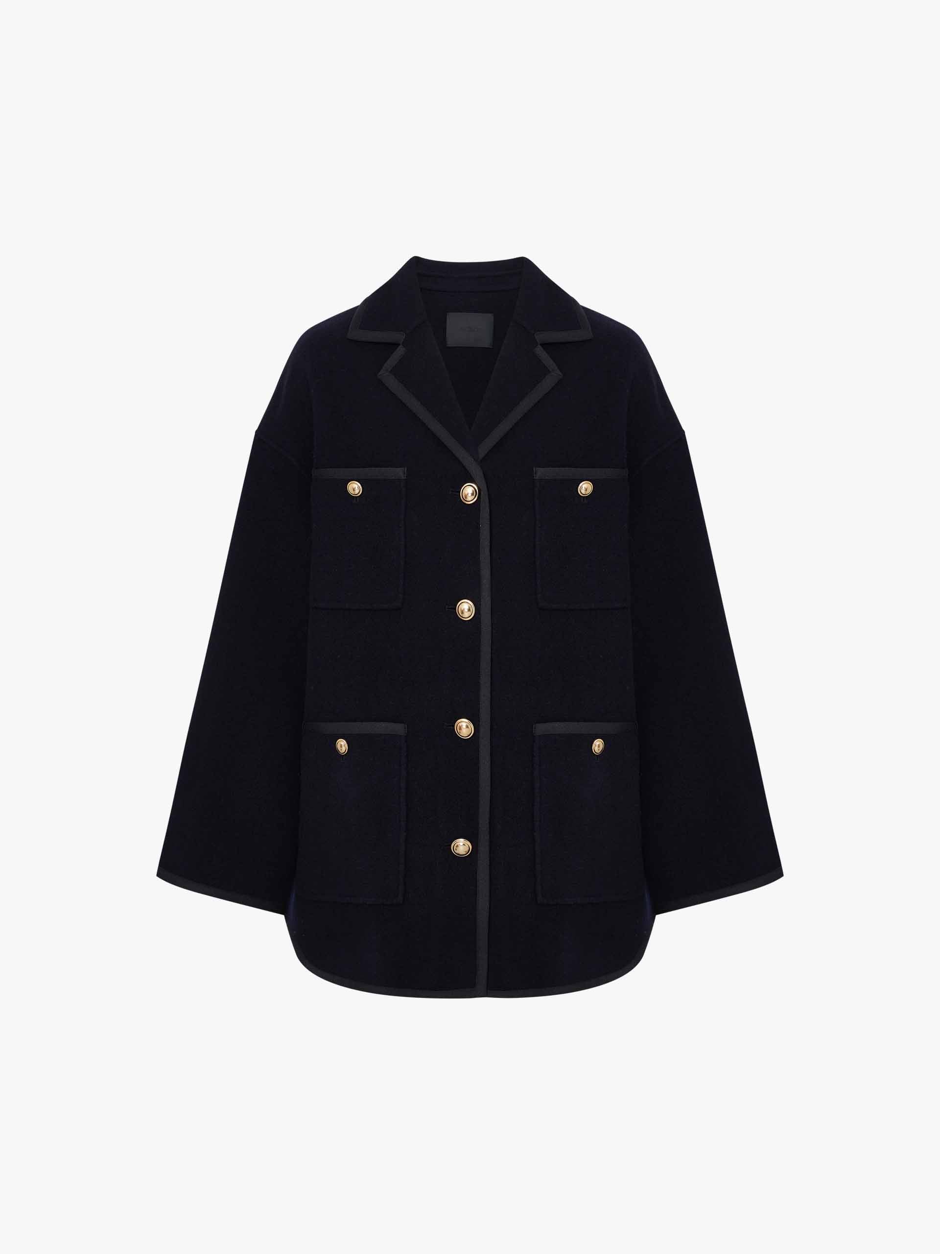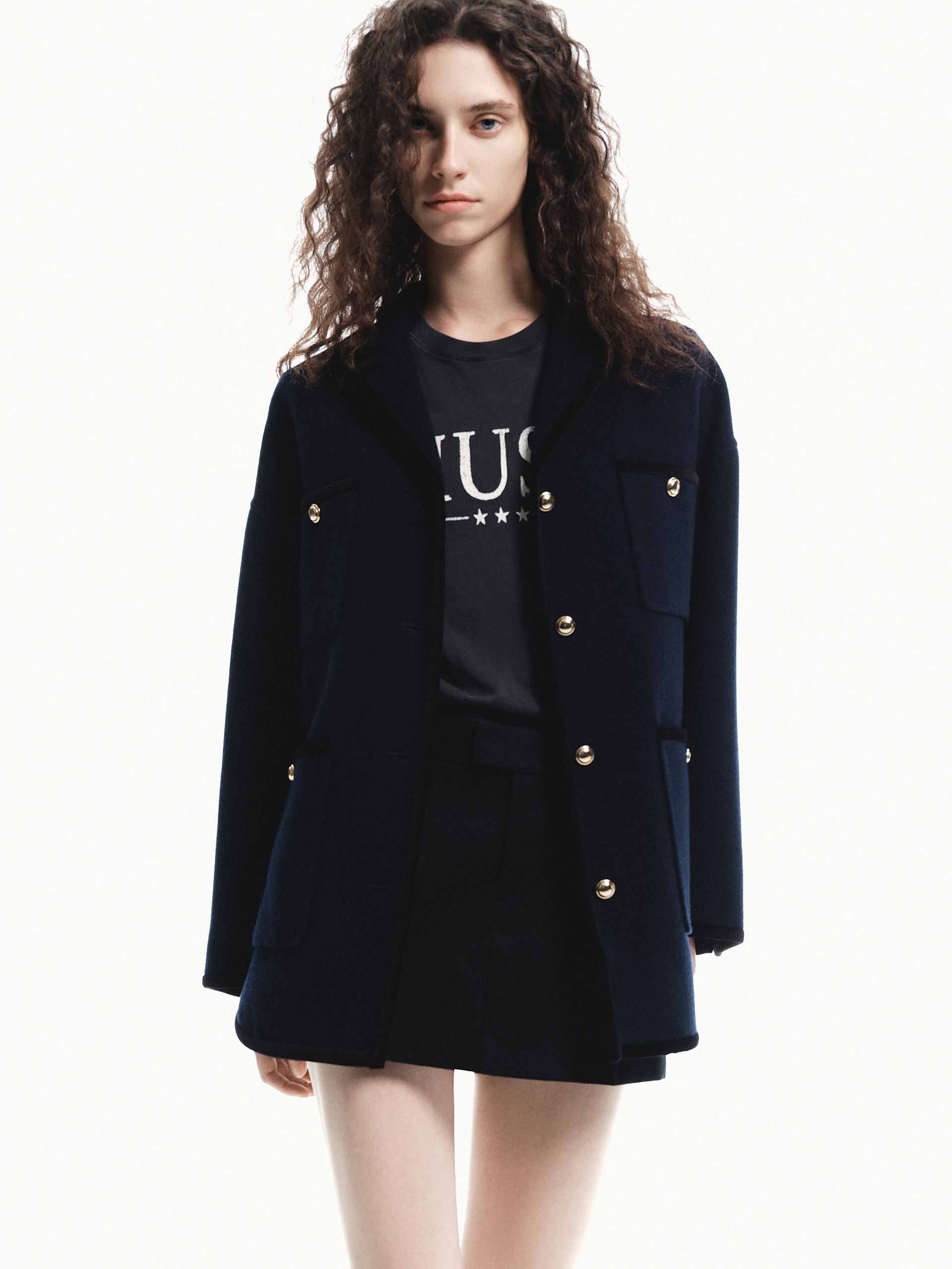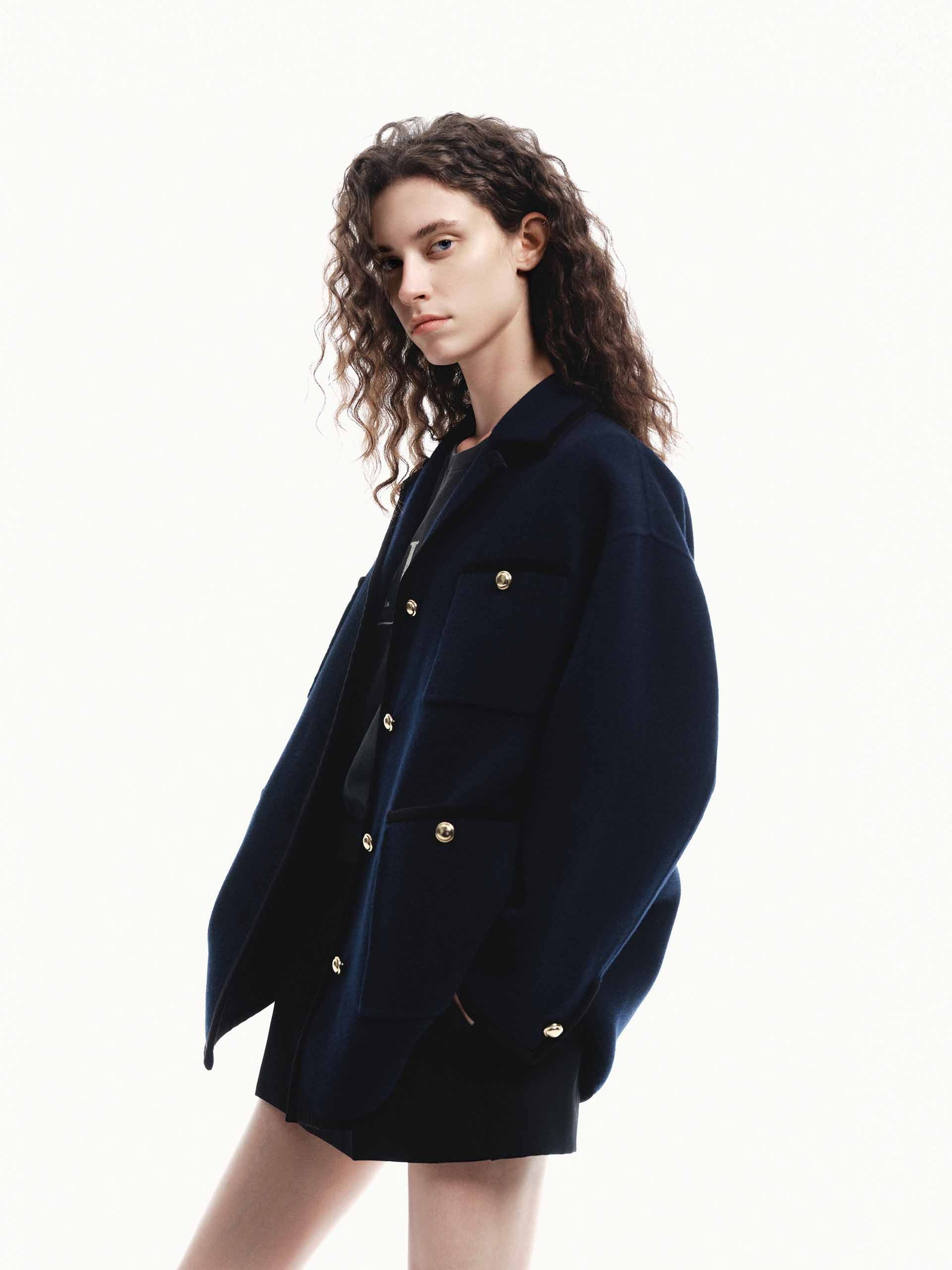 This versatile coat, part of our 2024 Pre-Fall collection, is crafted from double-sided, premium Merino wool. With its midi length and metallic button detailing, this timeless piece will keep you warm and stylish throughout the cooler months.