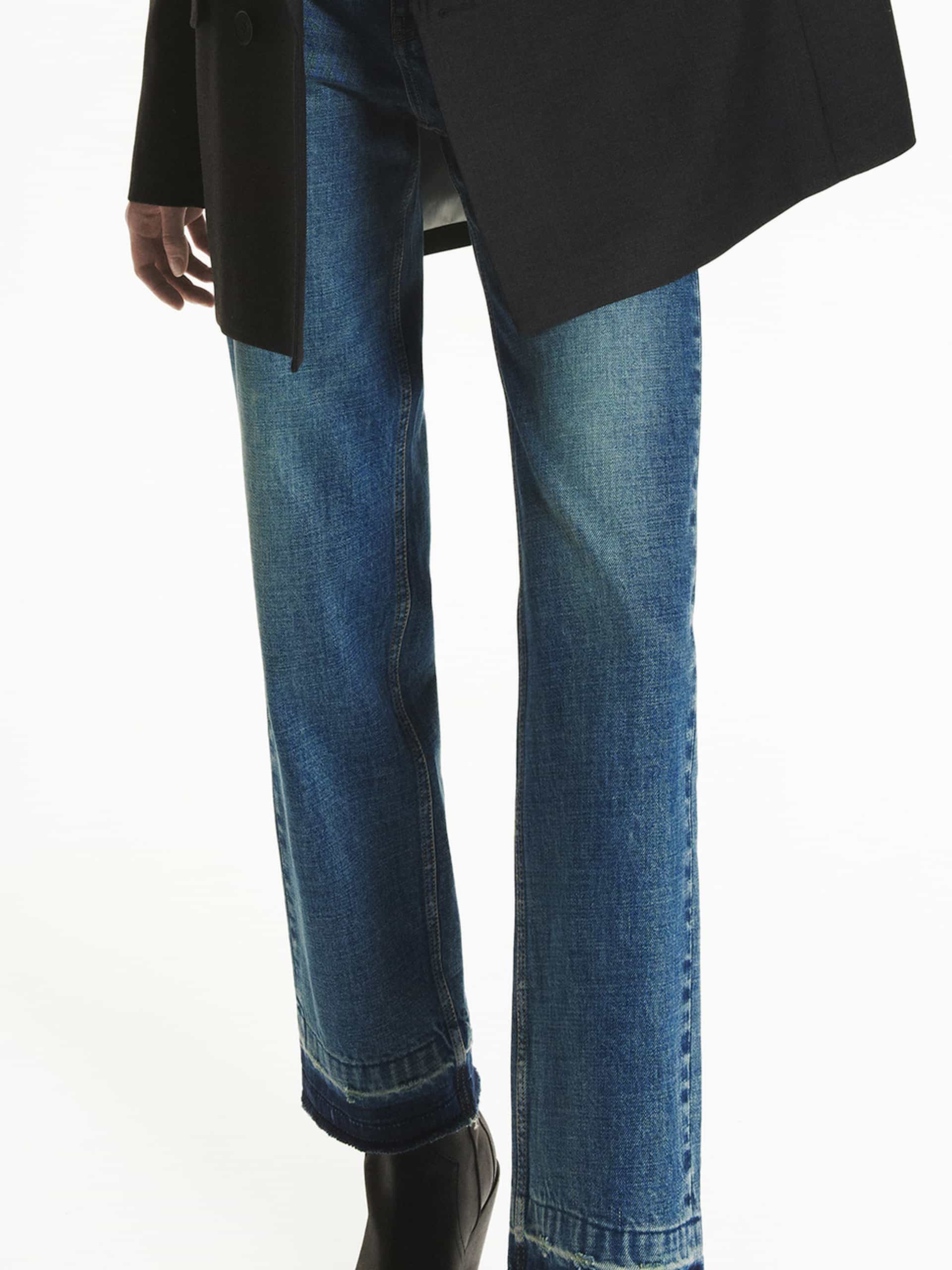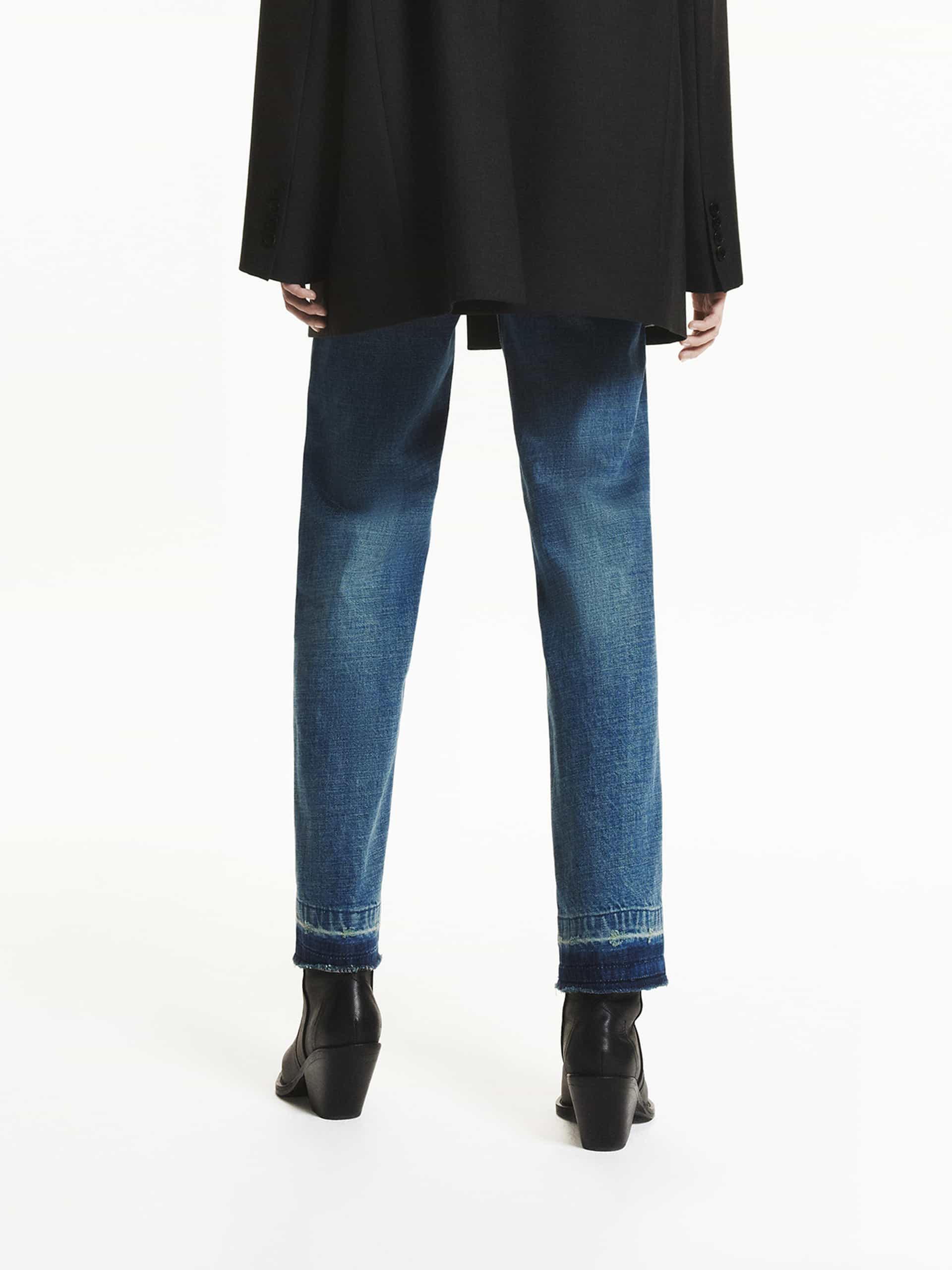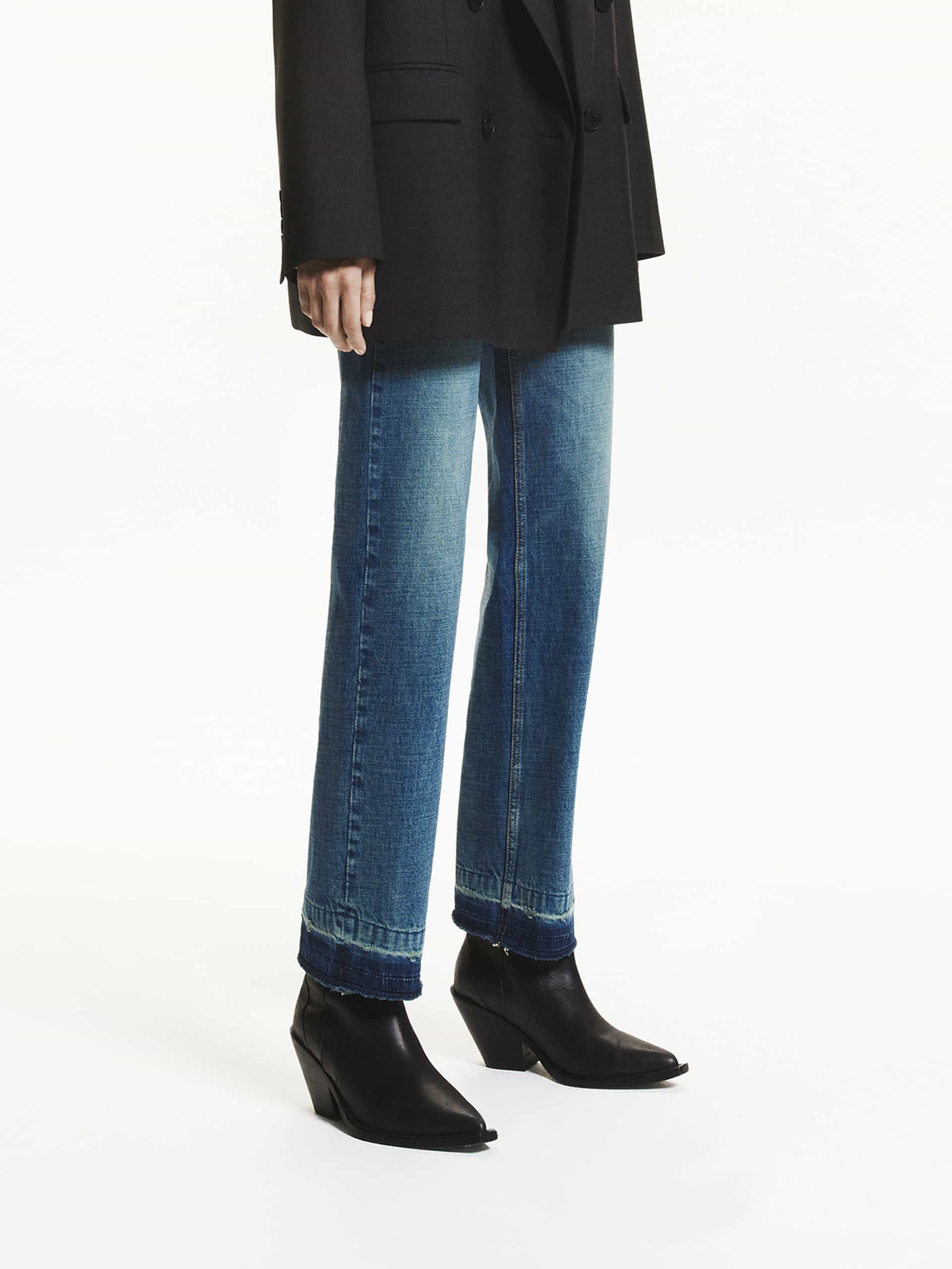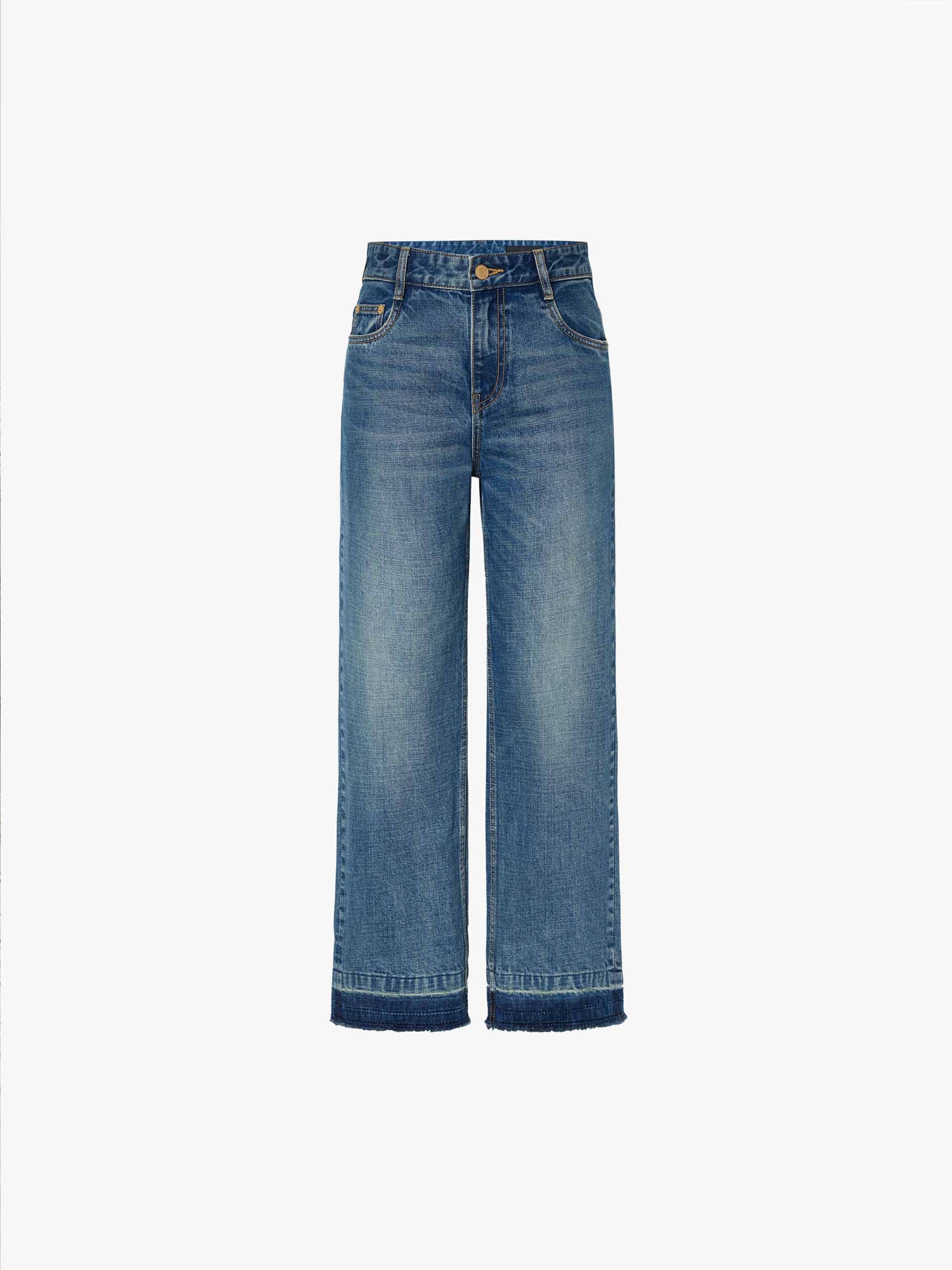 Crafted from high-quality and durable cotton, these jeans feature a straight leg fit and ankle length, they provide a flattering silhouette. The raw hem detail adds a unique touch, while the five-pocket design offers convenience and functionality.