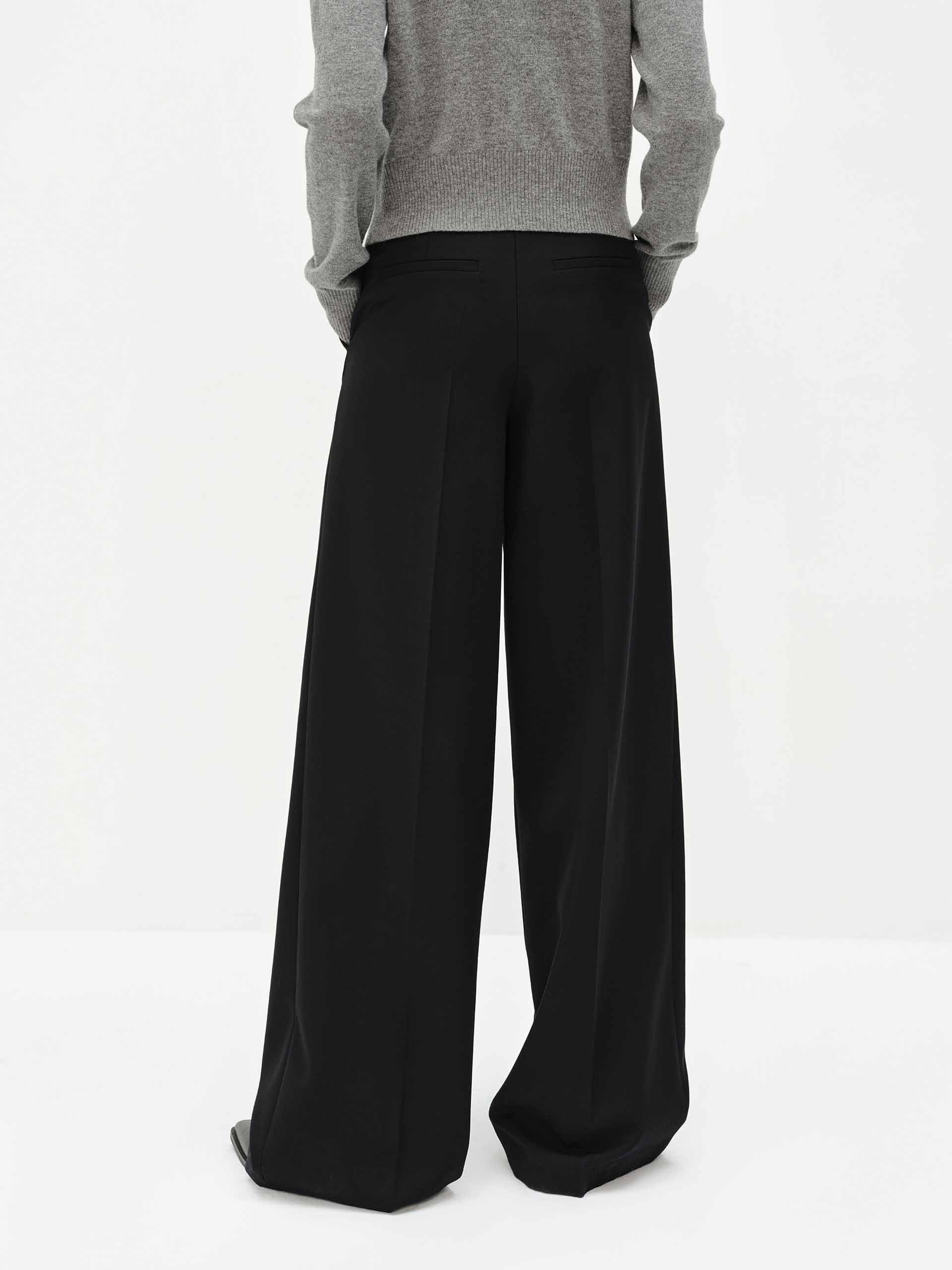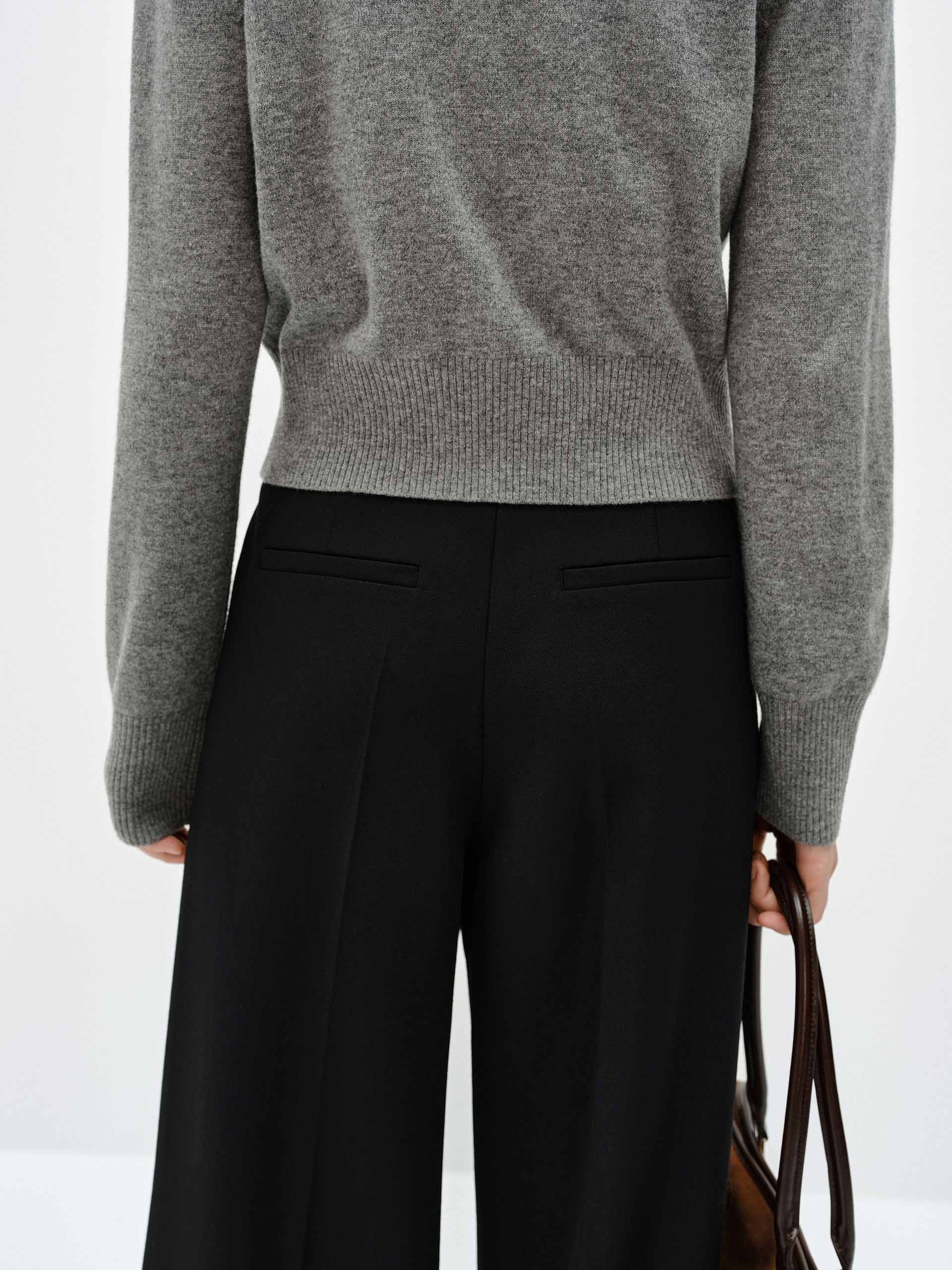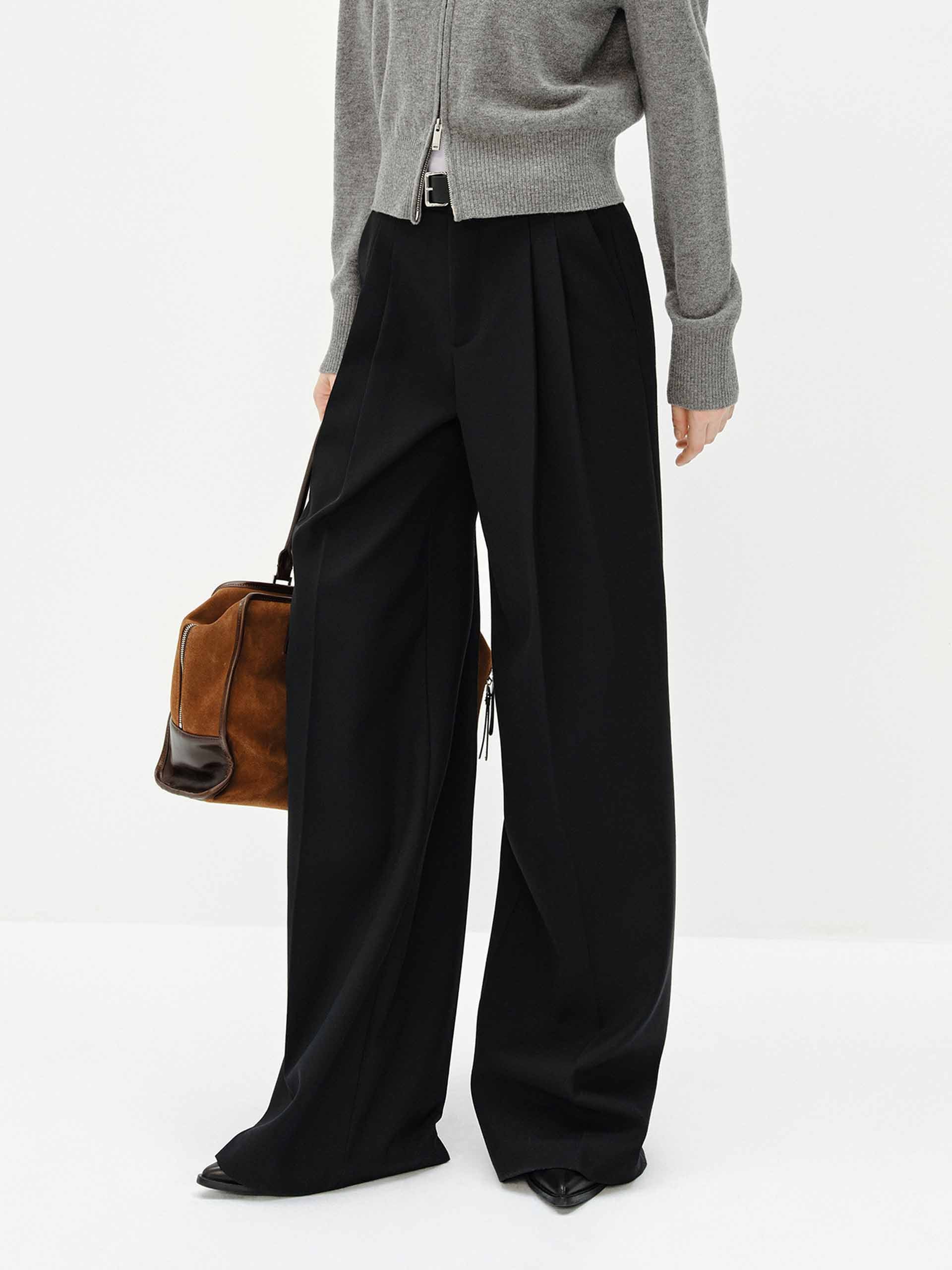 Crafted from a cozy wool blend, these pants offer comfort and style. The relaxed wide leg shape provides a flowy, effortless look, while the side pocket and front pleated design add practicality and sophistication. Perfectly pair with knitwear for a chic and polished ensemble.