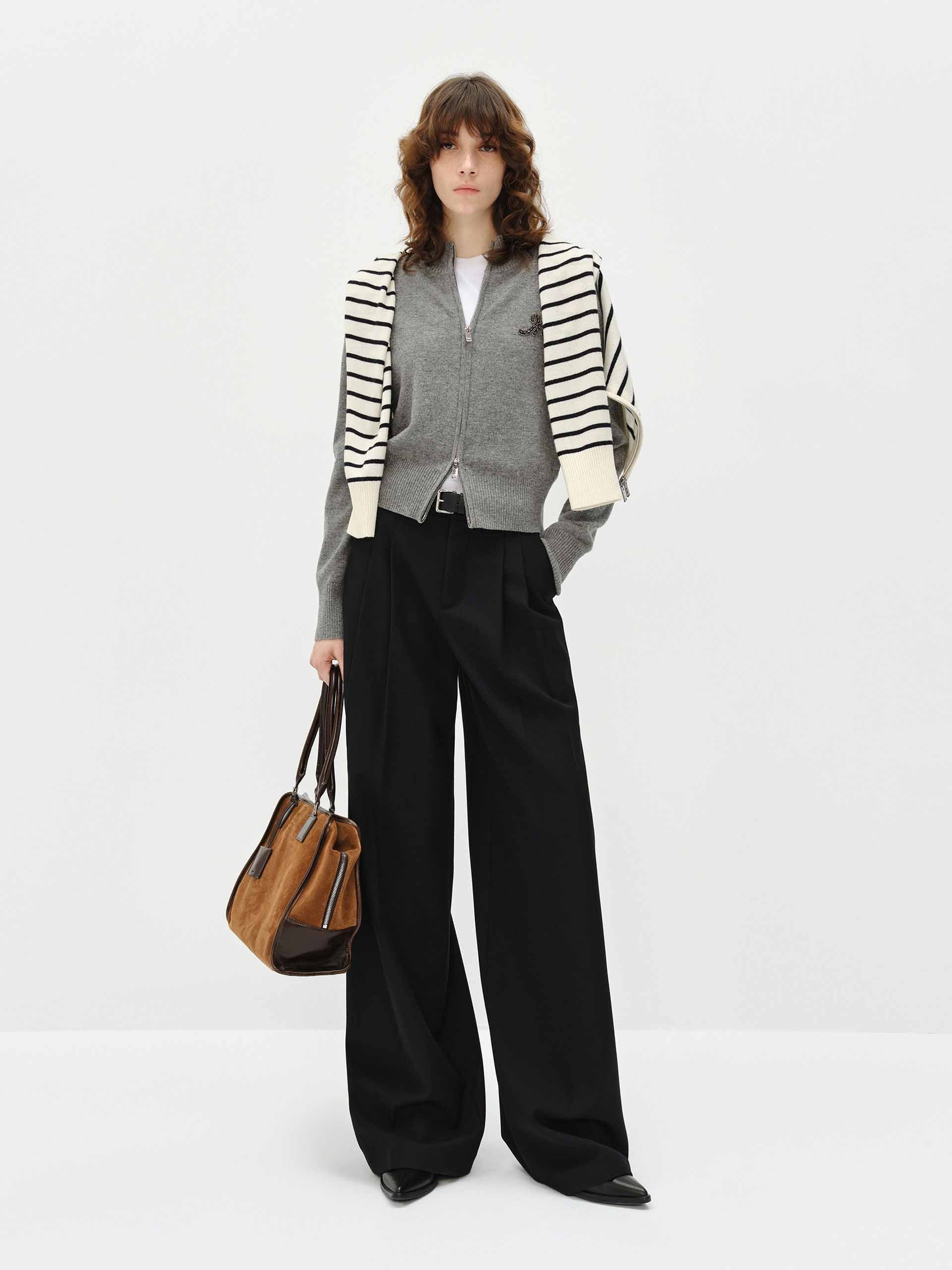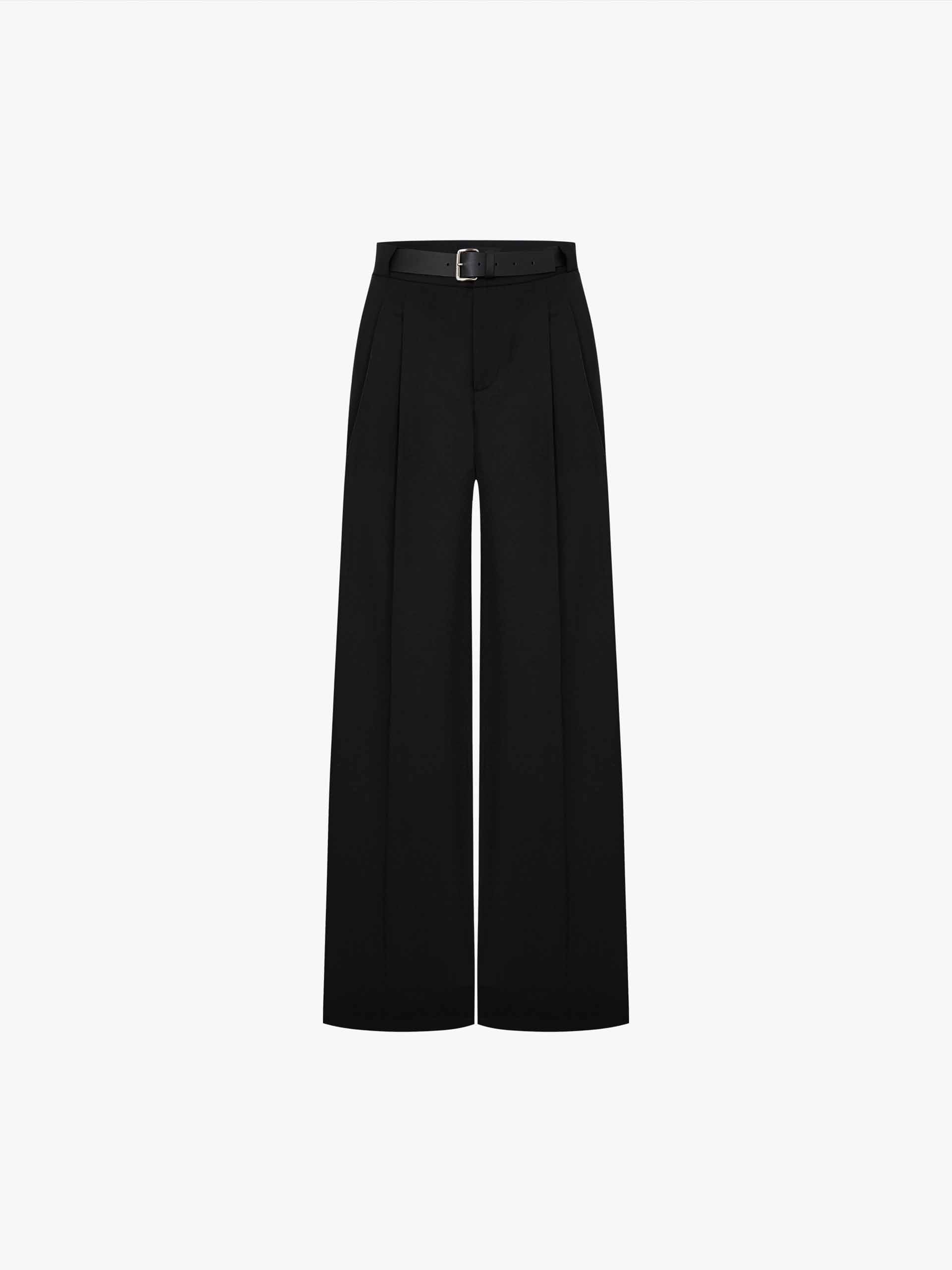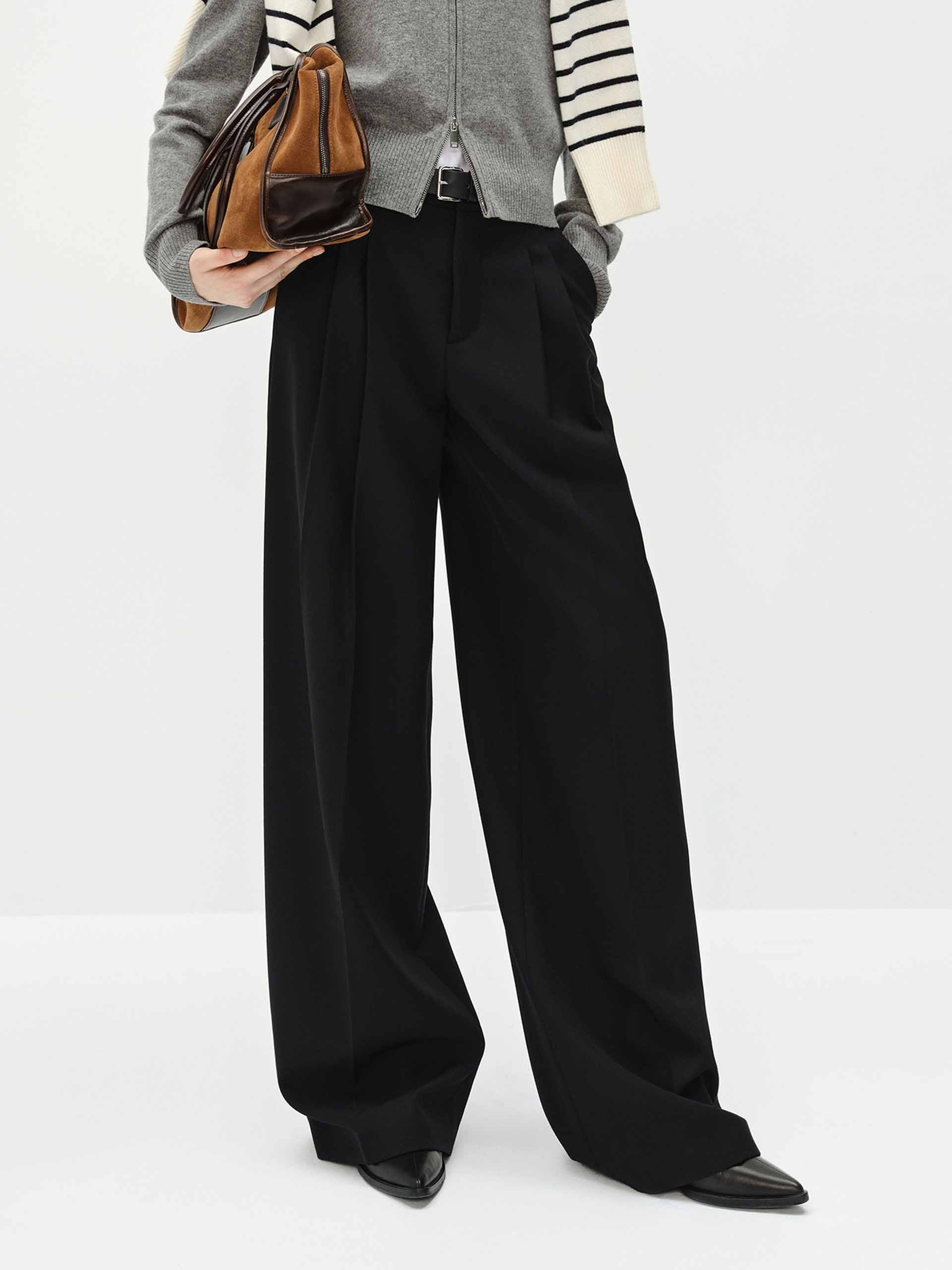 Crafted from a cozy wool blend, these pants offer comfort and style. The relaxed wide leg shape provides a flowy, effortless look, while the side pocket and front pleated design add practicality and sophistication. Perfectly pair with knitwear for a chic and polished ensemble.