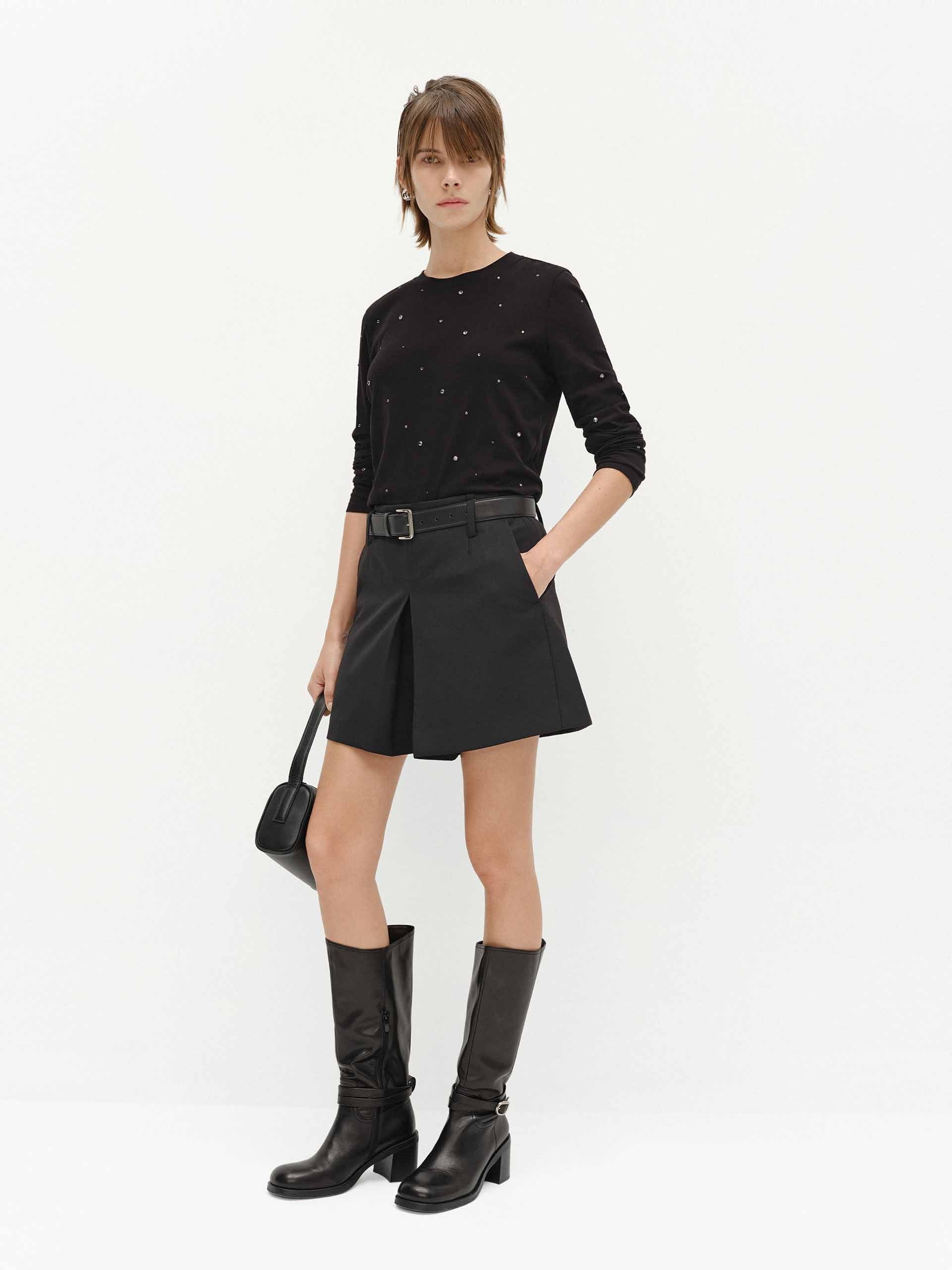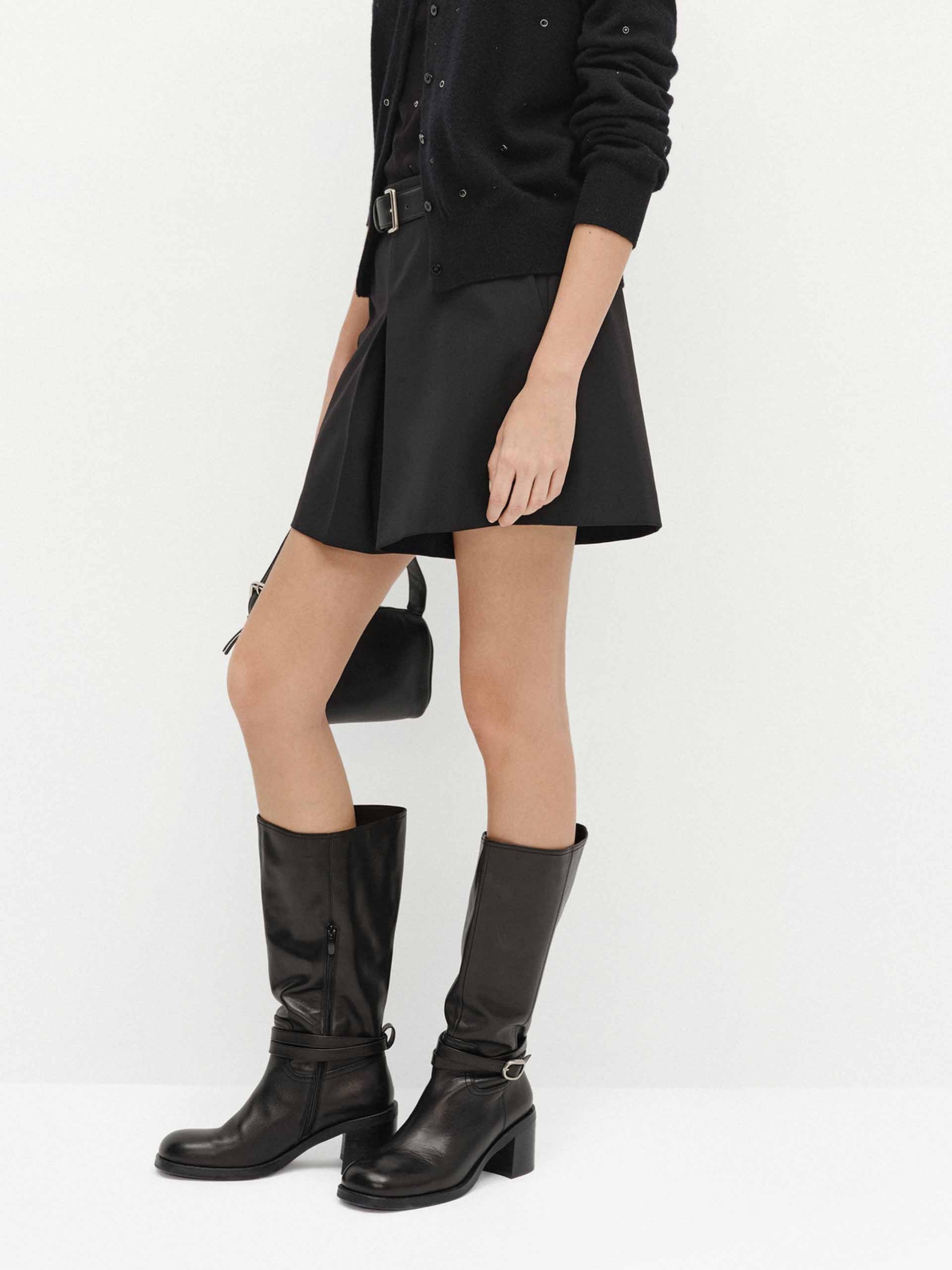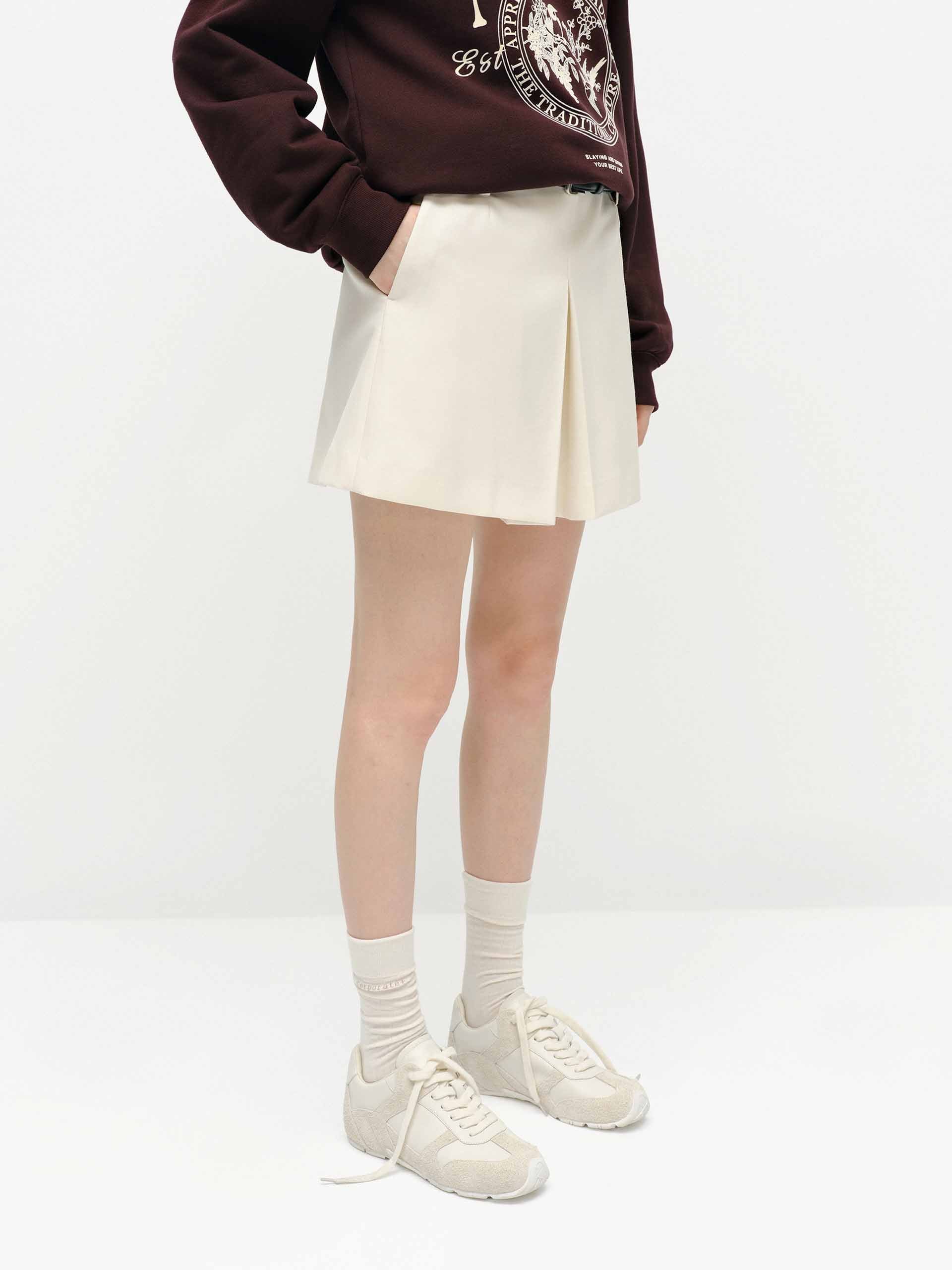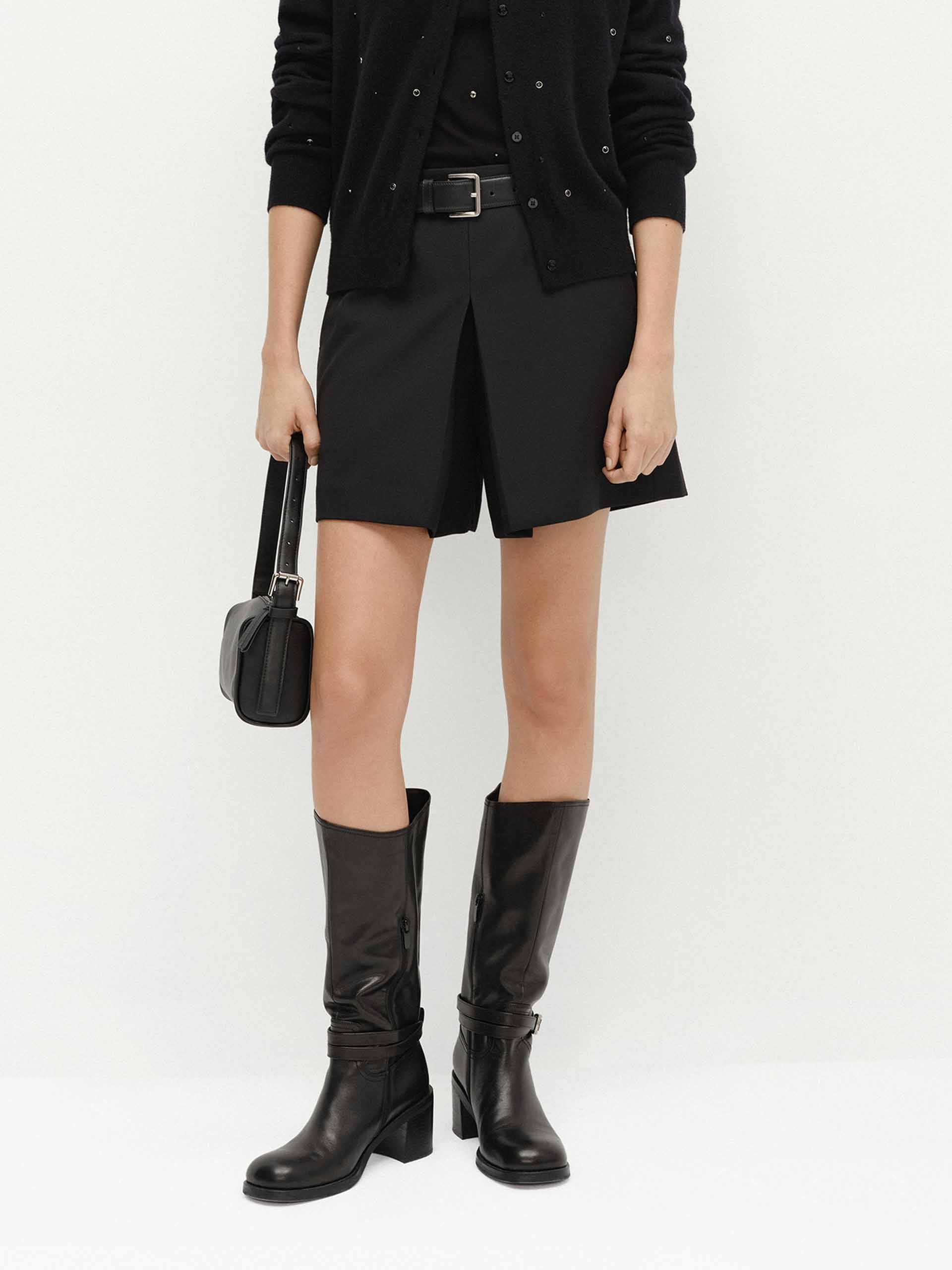 Crafted from a luxurious wool blend, these shorts feature a high waist for a flattering fit, they are tailored to A-line cut and designed with convenient side pockets and a secure zip closure.