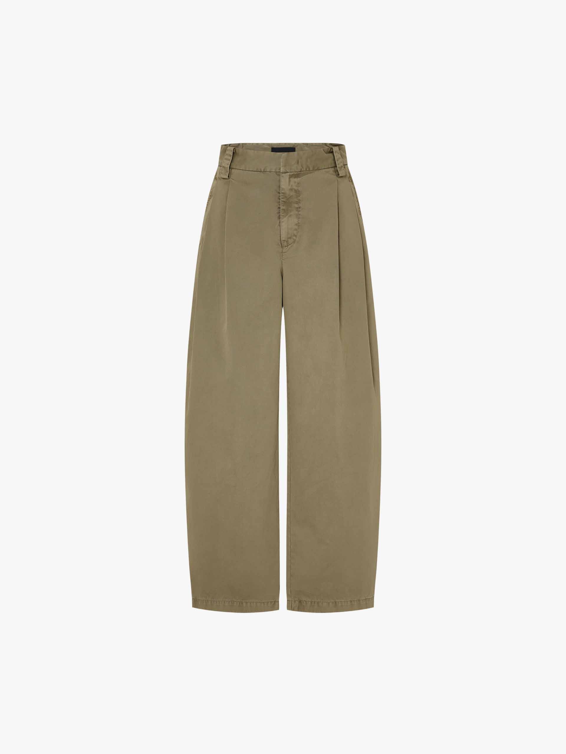 這款長褲採用柔軟棉質面料,鮮明的前褶增添結構感動態,鉤扣、棒扣與拉鍊閉合確保貼合度。實用側邊口袋無縫融入設計,打造大膽又平衡的時尚宣言。
