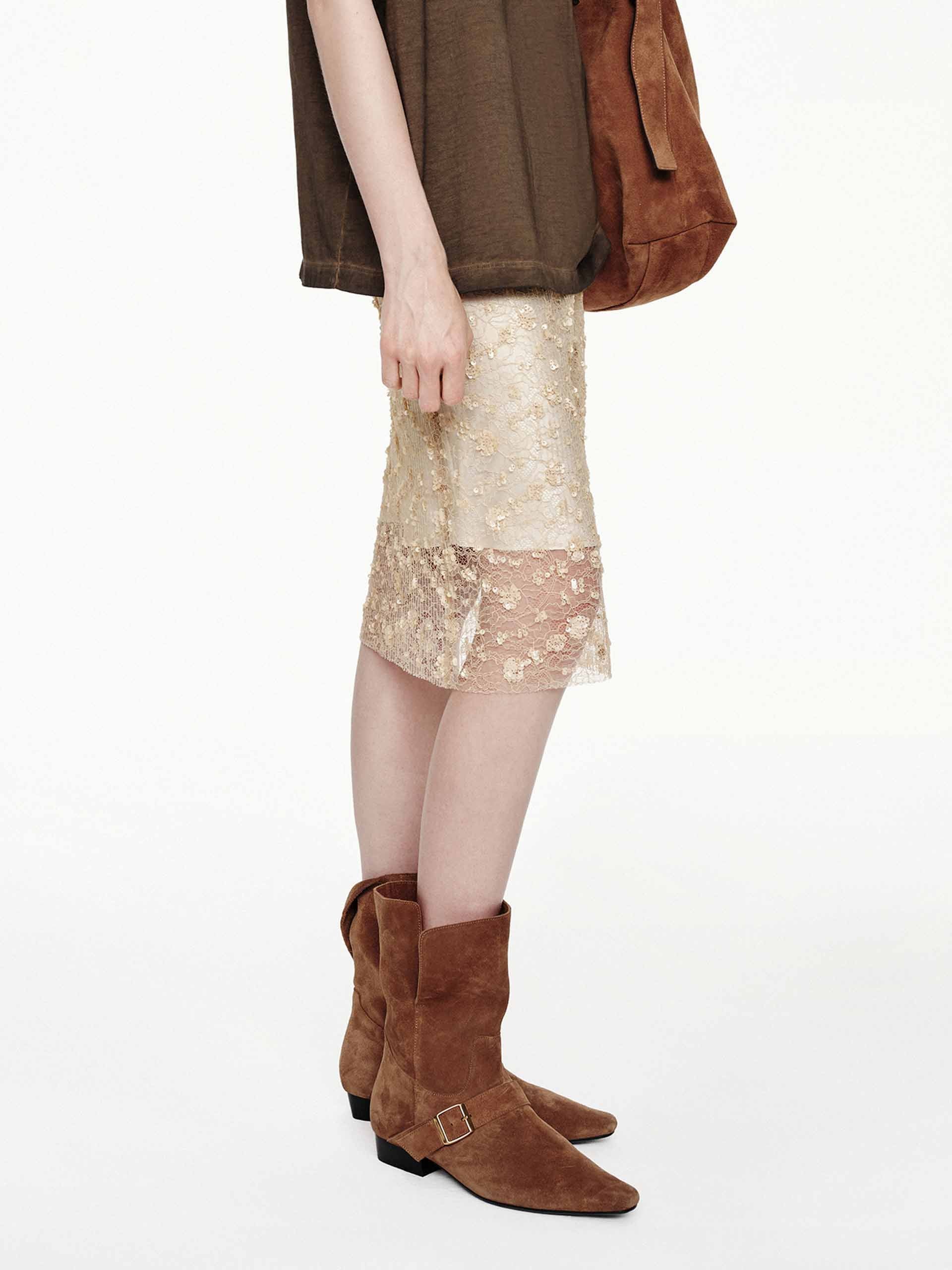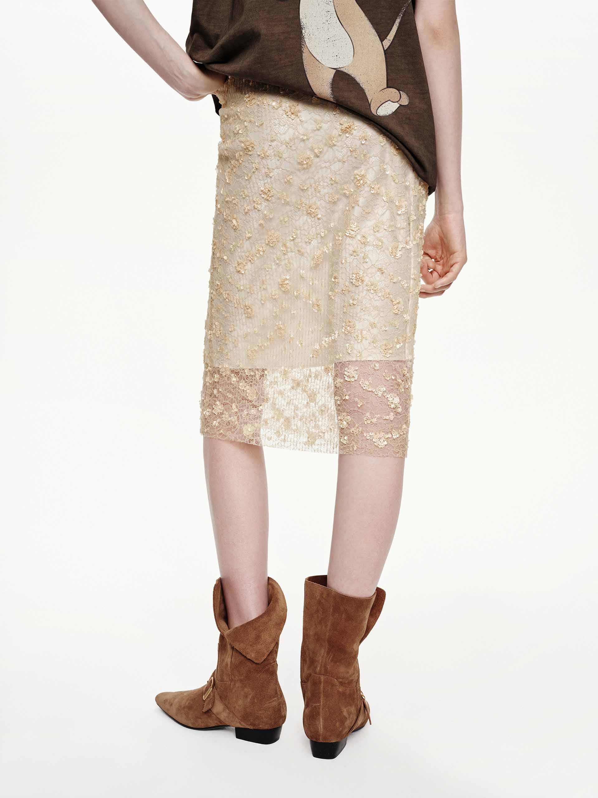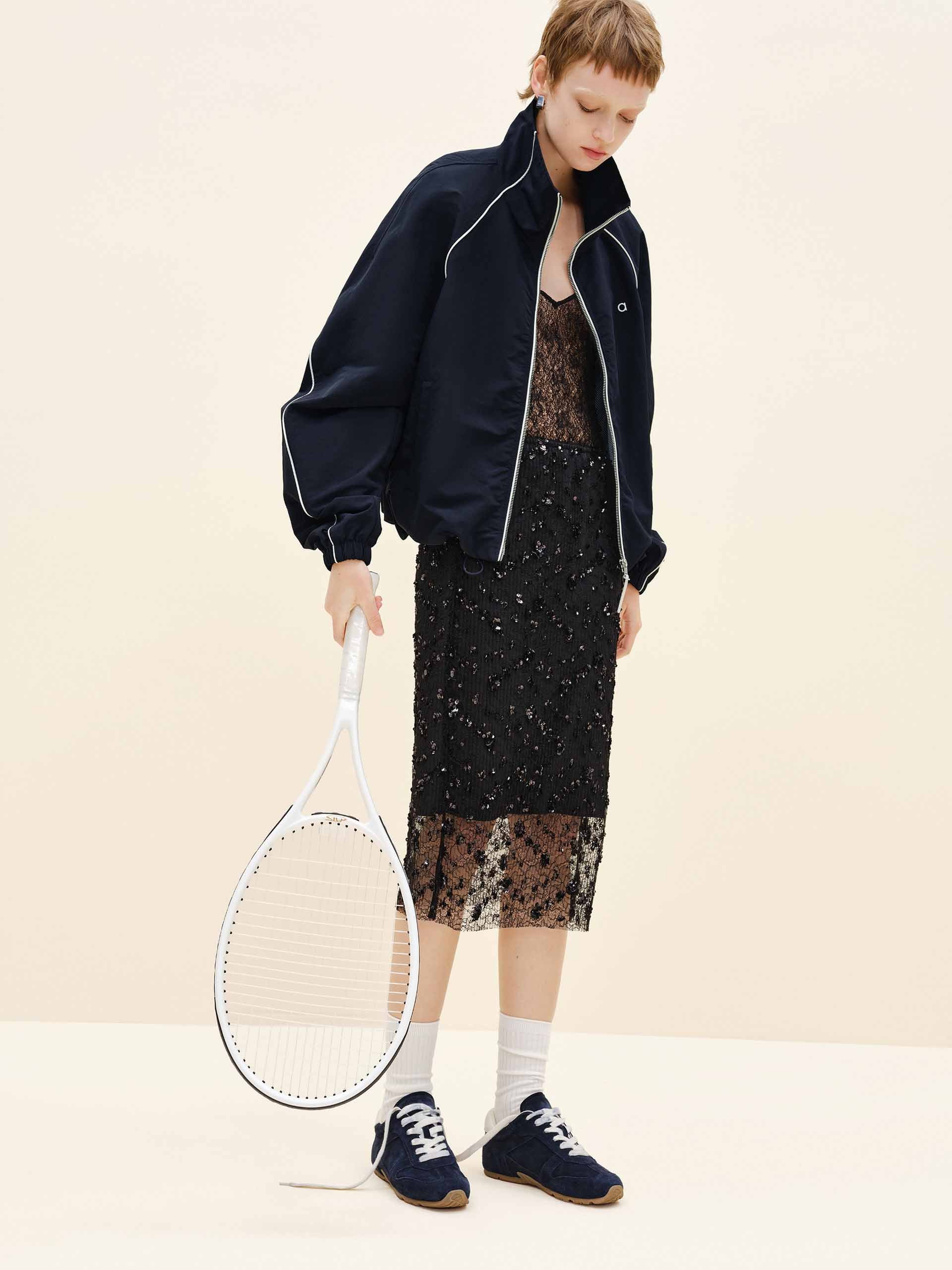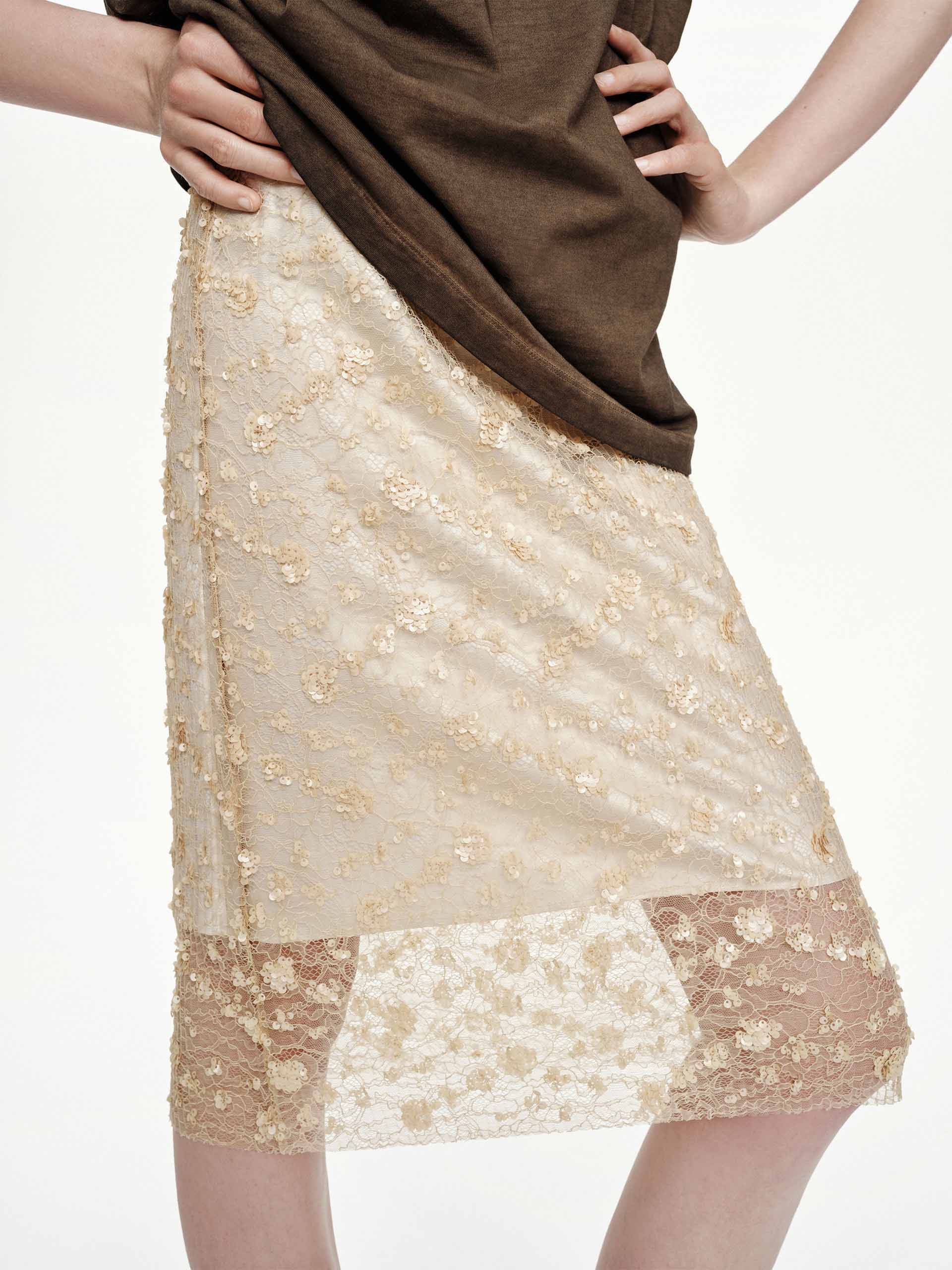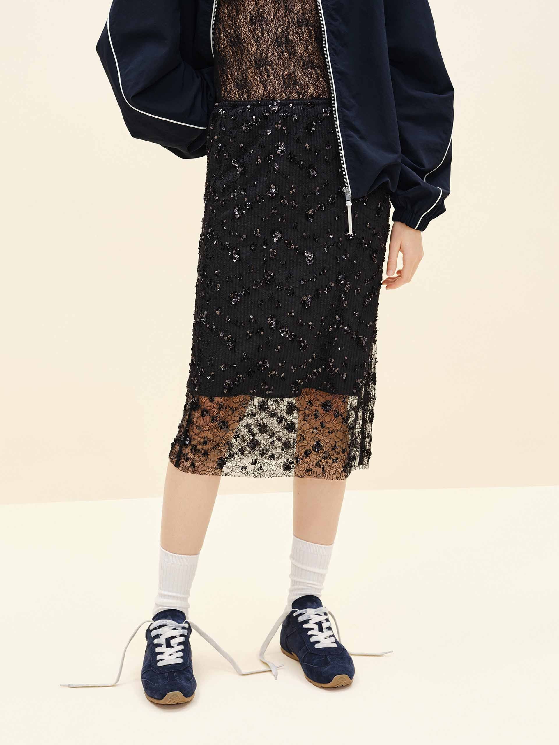 這款高腰設計裙裝能拉長身形線條,精緻蕾絲拼接增添浪漫質感,滿版亮片面料確保每一步都閃耀奪目。光滑內裡提供舒適與遮蓋度,特別適合特殊場合穿著。