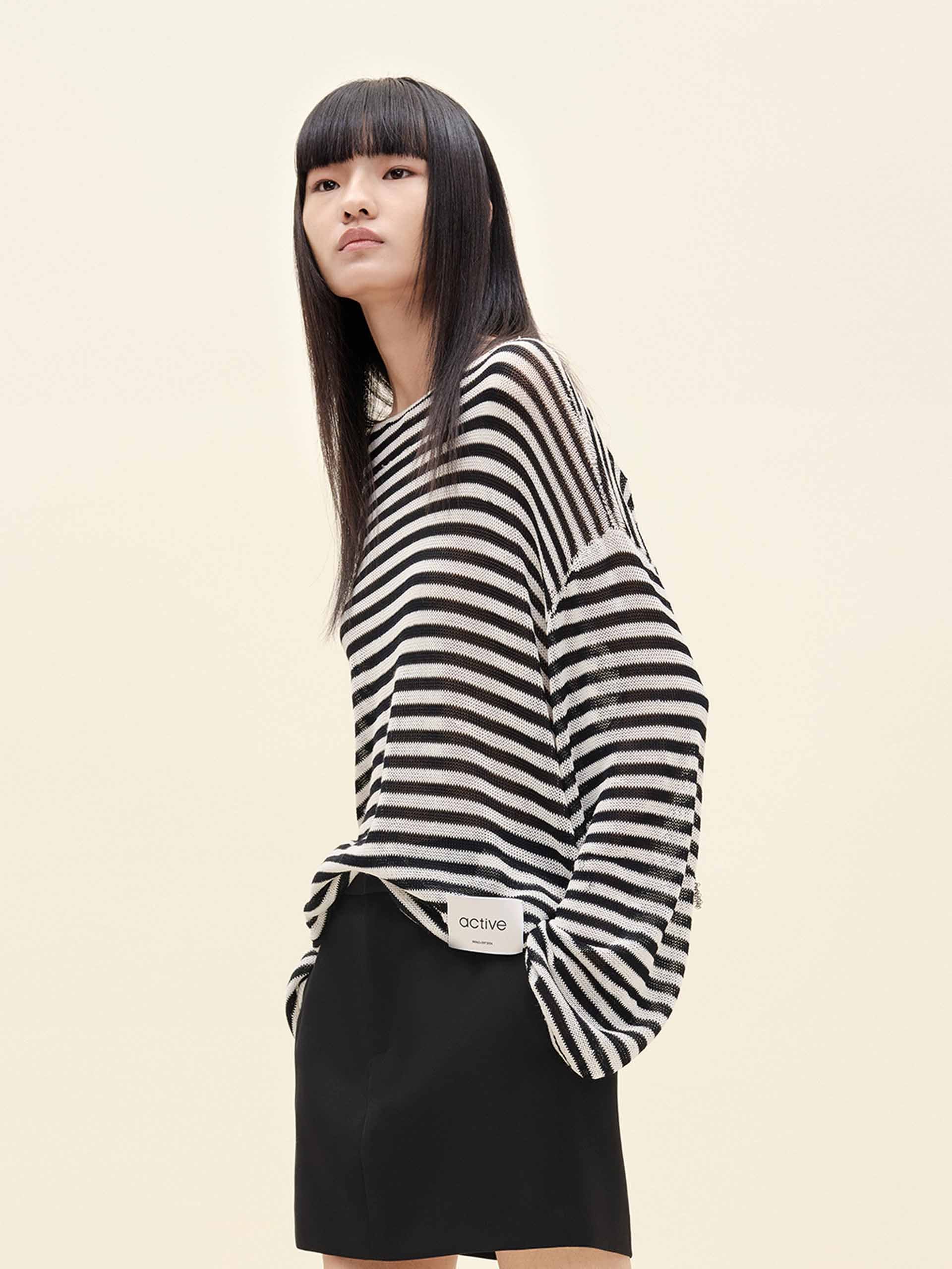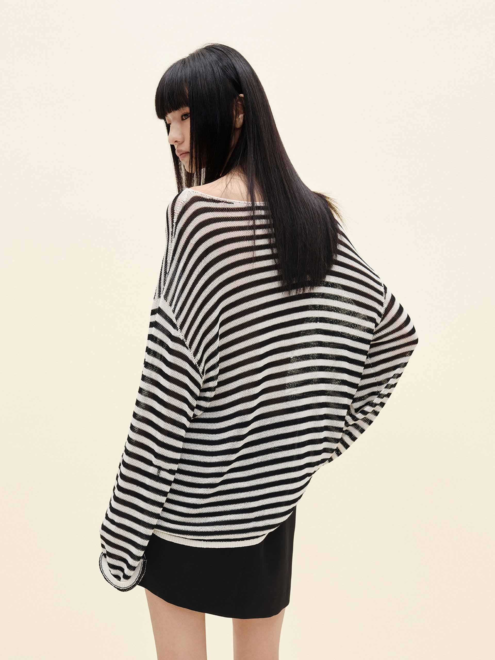 這款上衣融合舒適與精緻感,長袖設計適合過渡季節穿著。寬鬆版型展現輕鬆優雅感,船領和落肩設計增添女性魅力。