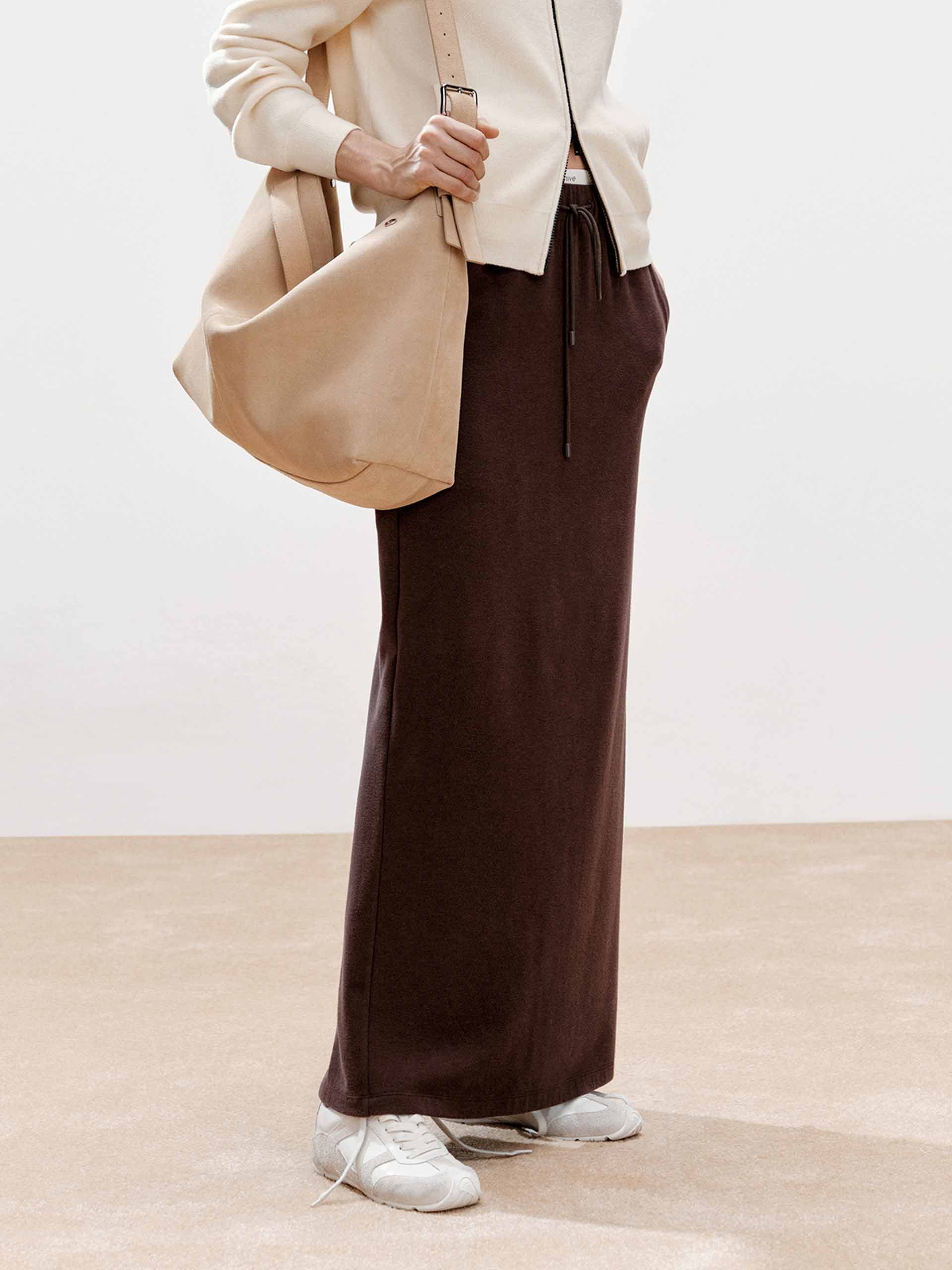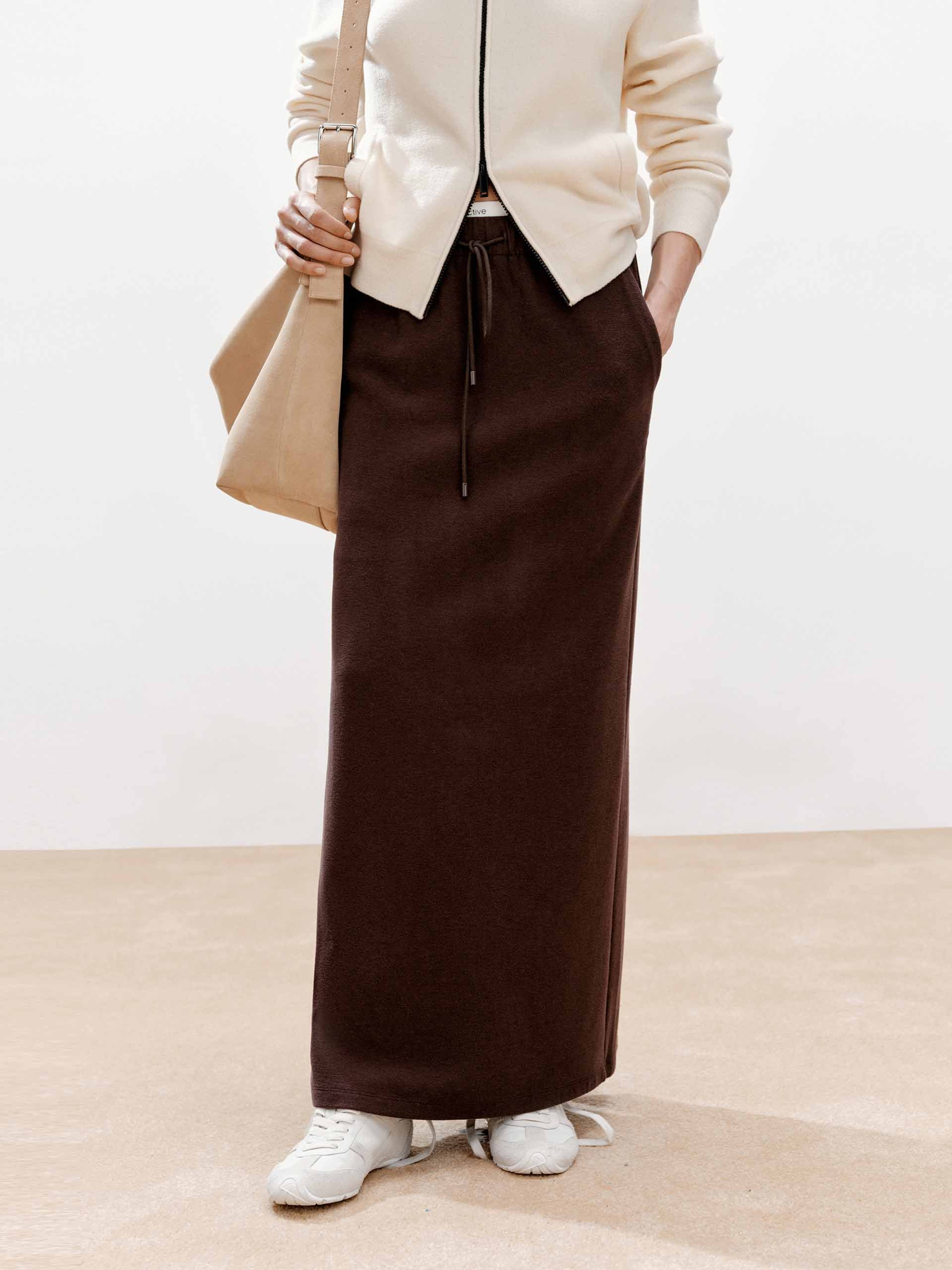 擁抱波西米亞輕鬆感與現代設計的融合,這款裙子具有優雅的長版長度和舒適的常規版型,營造出輕鬆優雅的輪廓。裙子以其獨特的層次拼接腰頭為定義,該腰頭結合了鬆緊腰帶和可調節抽繩,實現可定制和迷人的貼合度。實用的後開衩確保了活動的便利性。