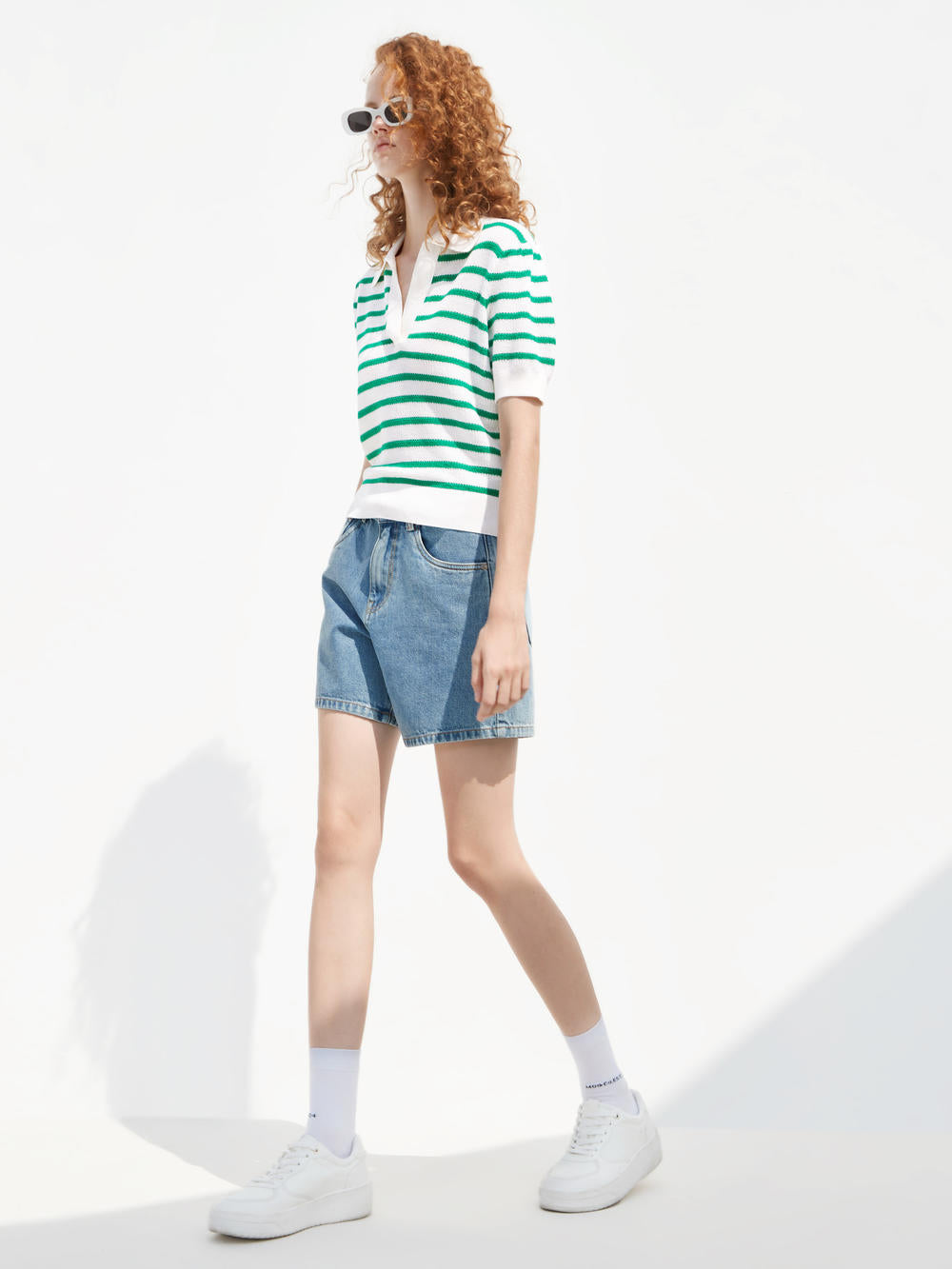 The shirt is a nice comfortable material. I can wear it with jeans during the summer, a high waisted skirt, or even with some cute shorts.