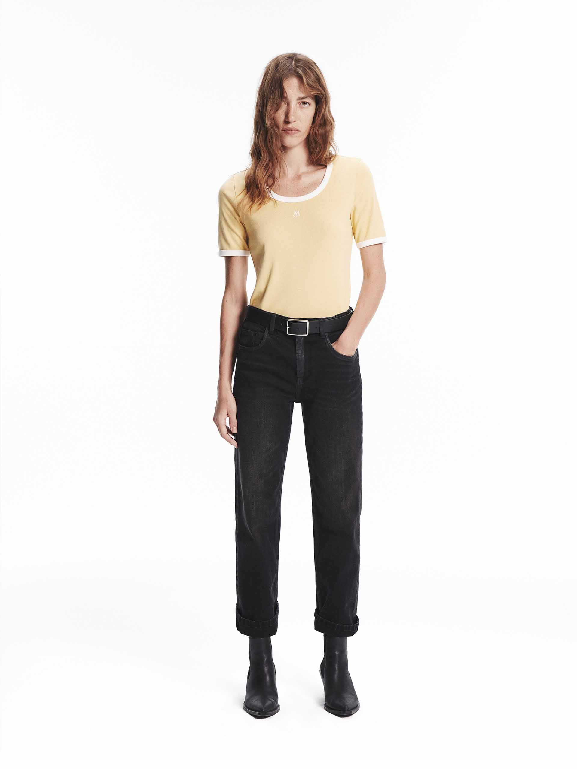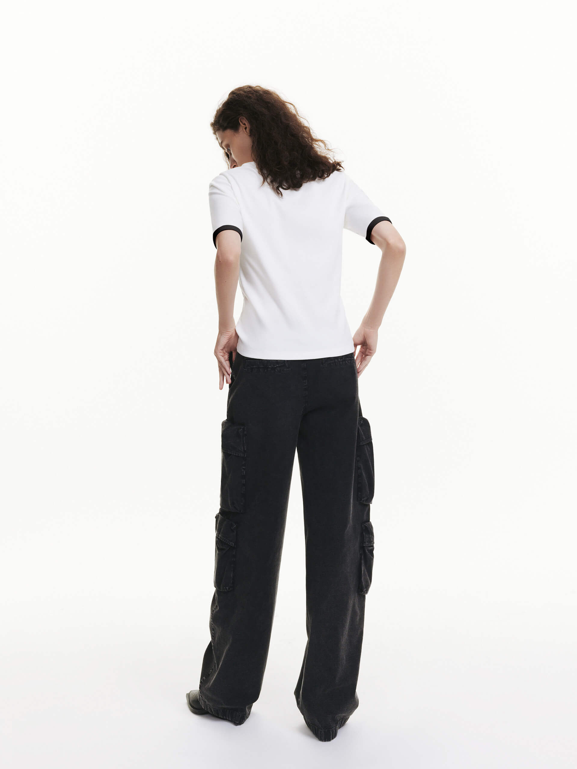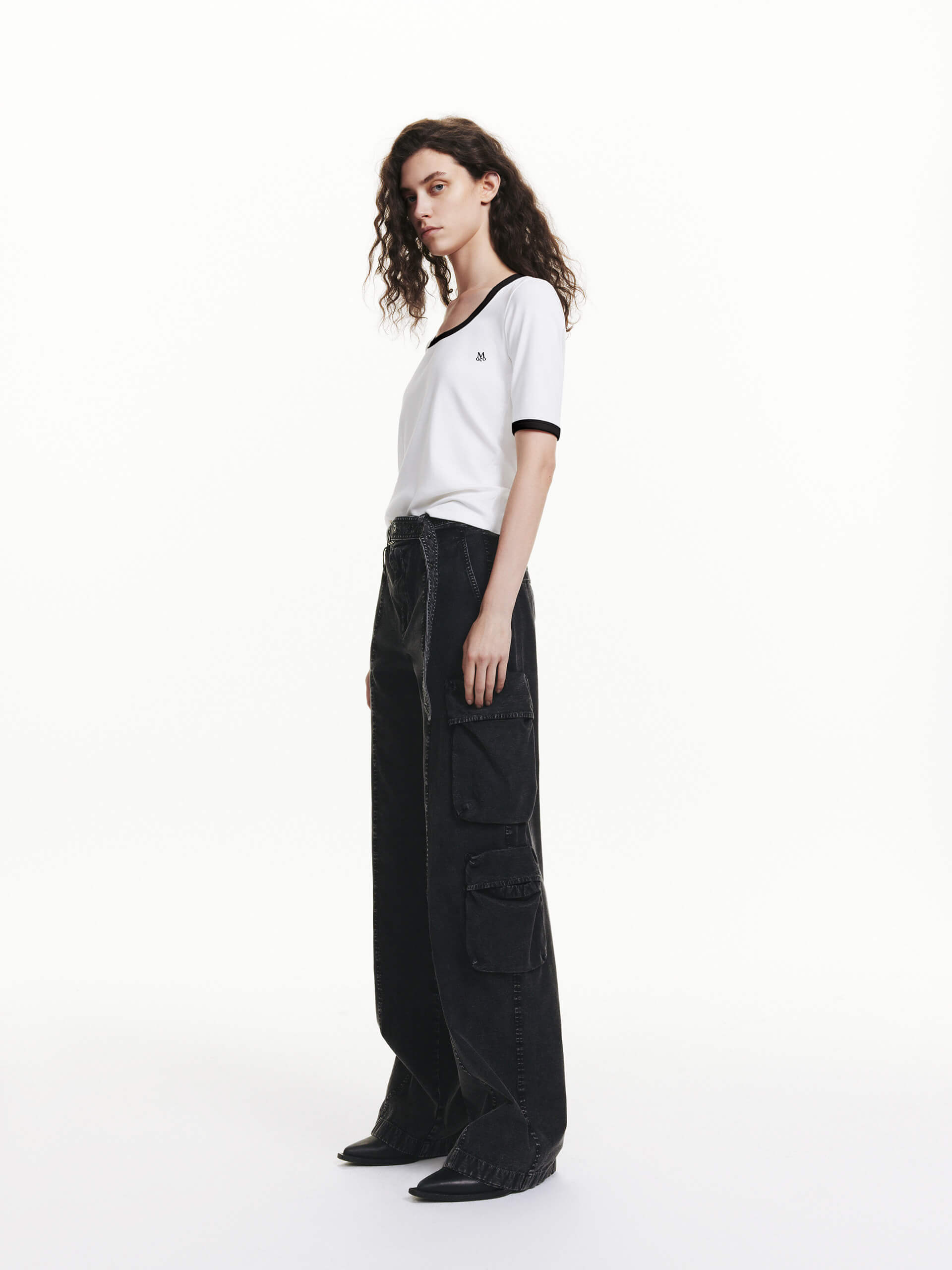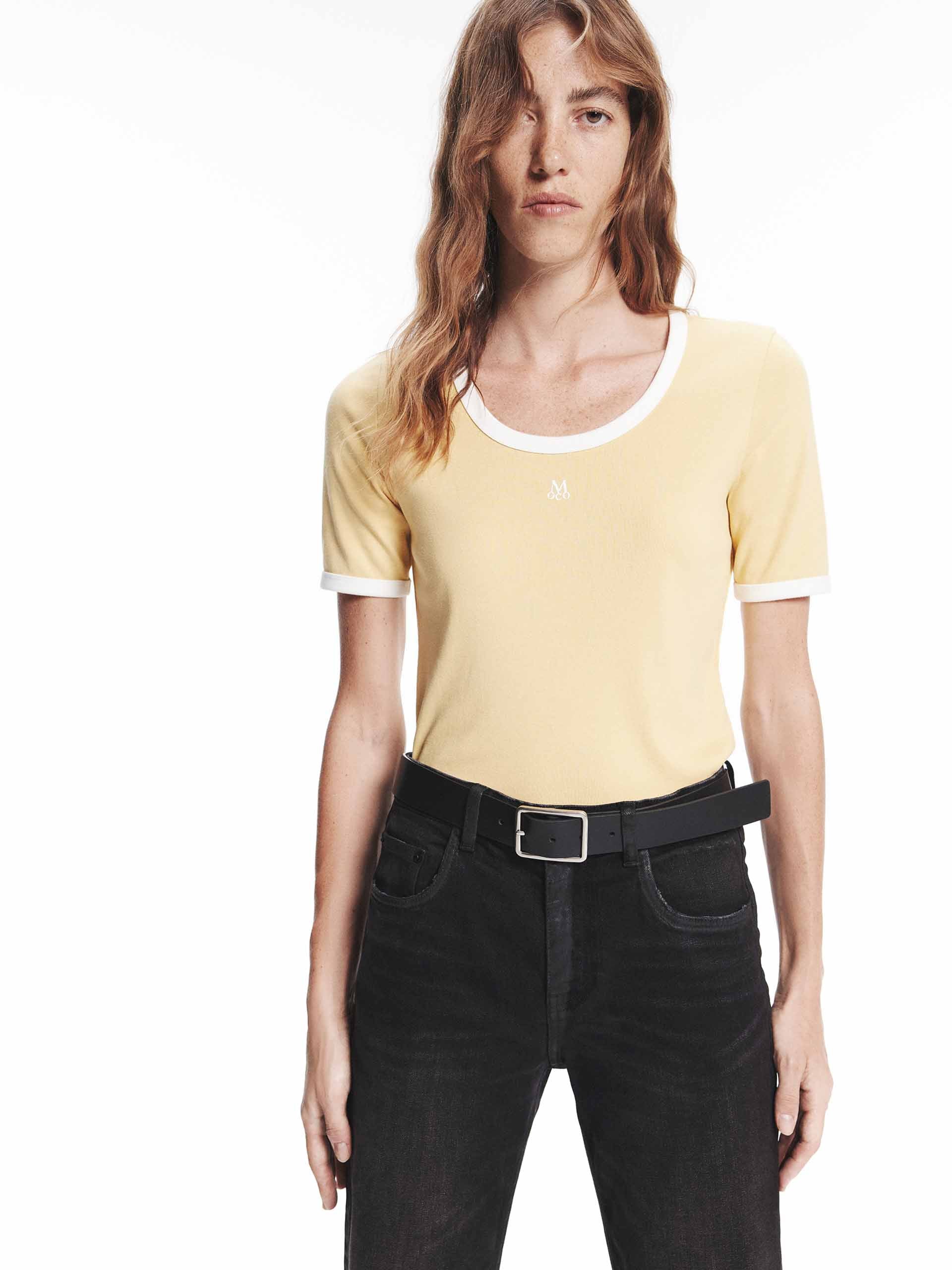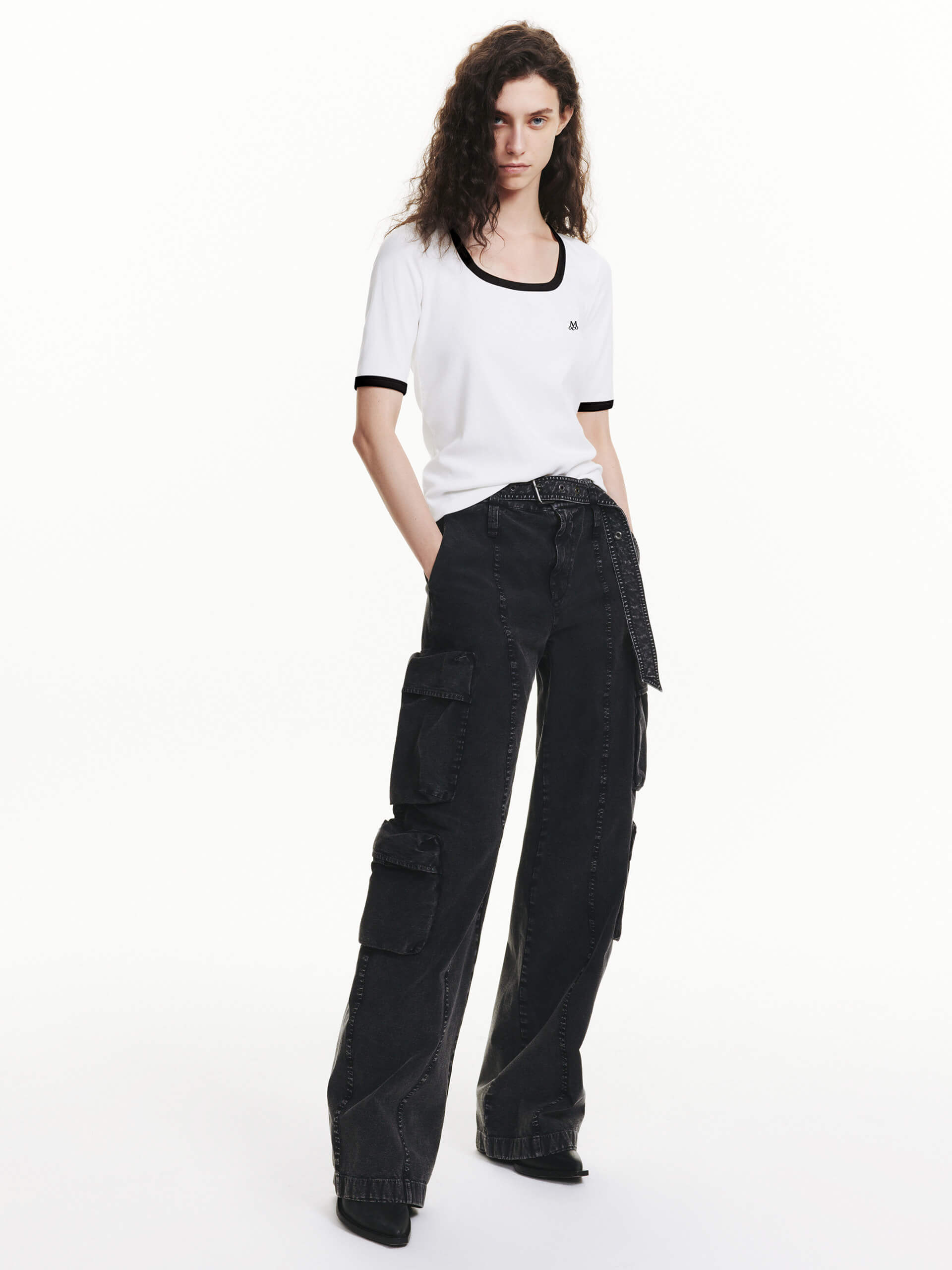 這款T恤採用舒適的棉混紡面料,U型領口和醒目的對比飾邊設計。合身剪裁提供現代修身的輪廓。