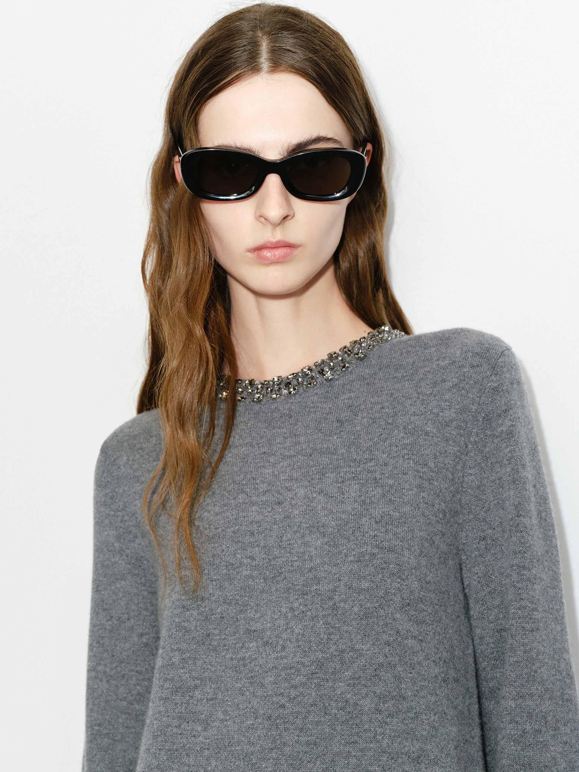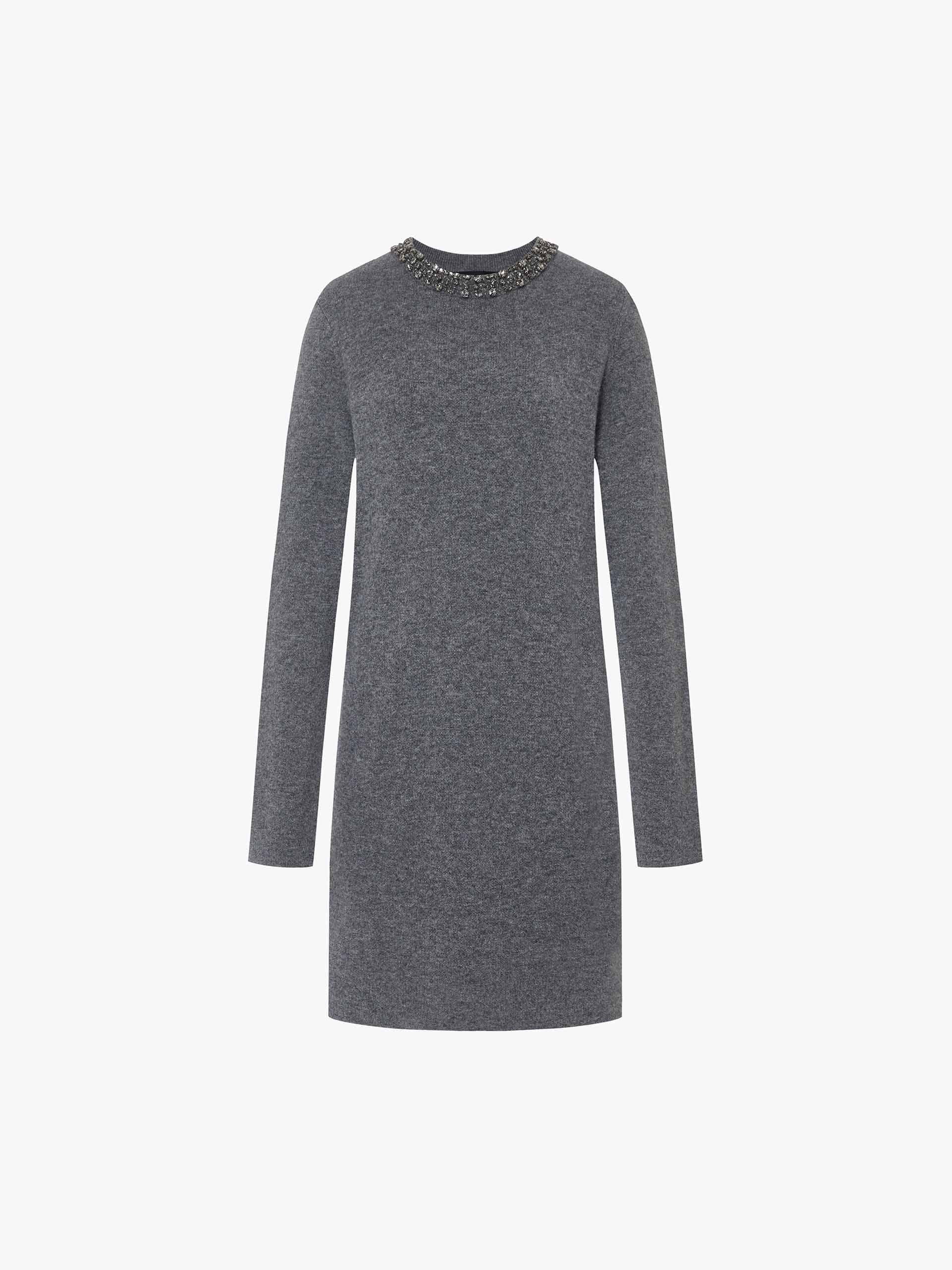 這款連衣裙採用奢華的羊毛混紡面料製成,確保柔軟舒適的觸感。其迷你輪廓、圓領和水晶裝飾細節使其成為任何場合的獨特選擇。搭配一雙靴子,打造時尚的秋冬造型。