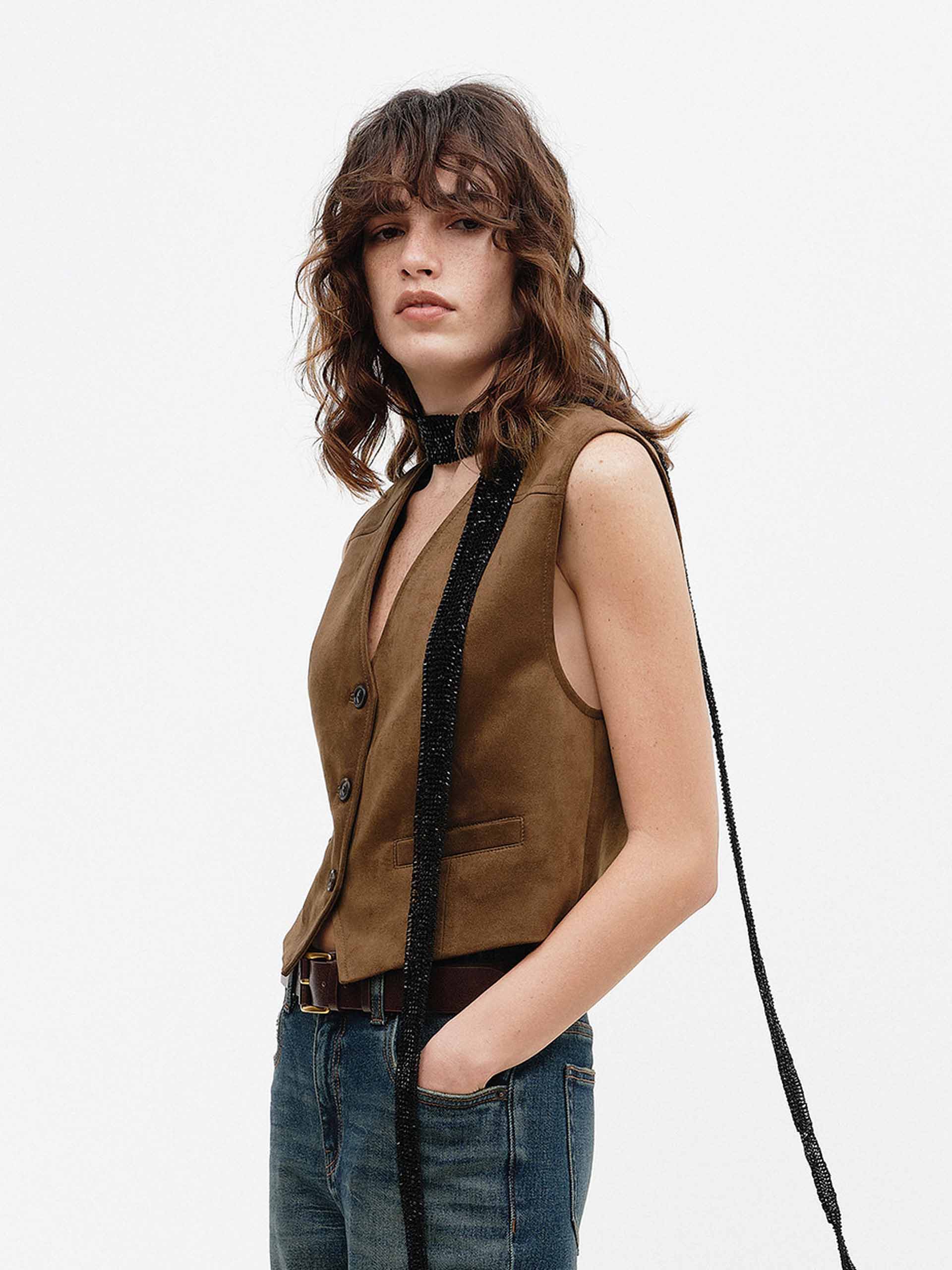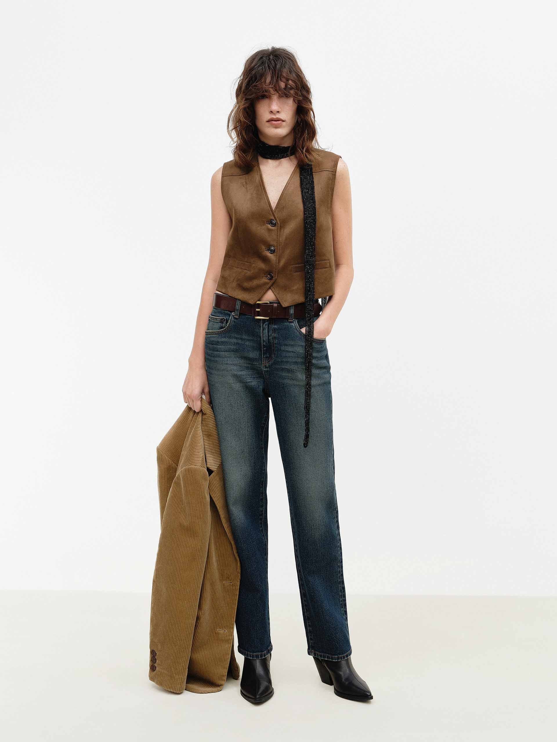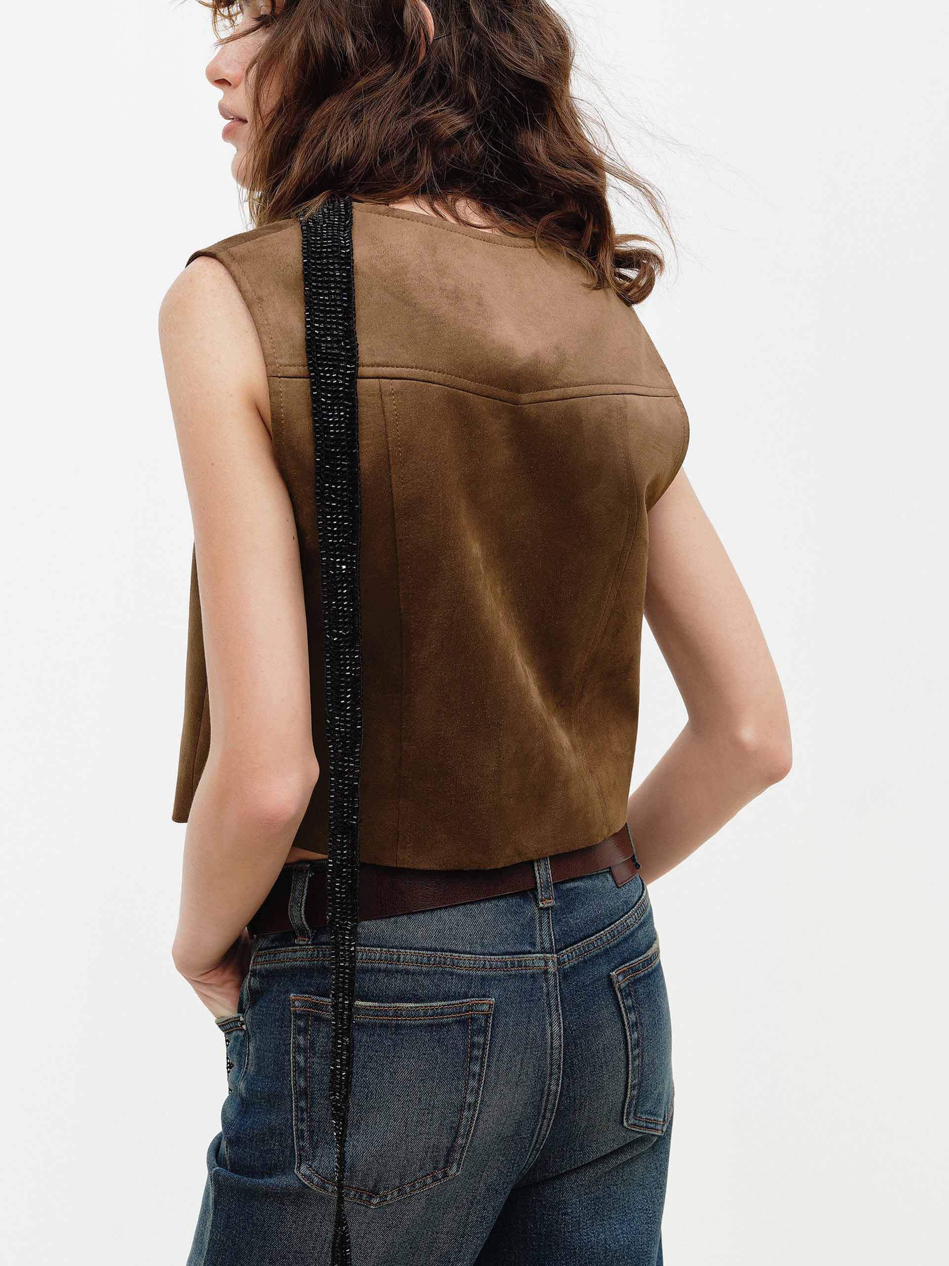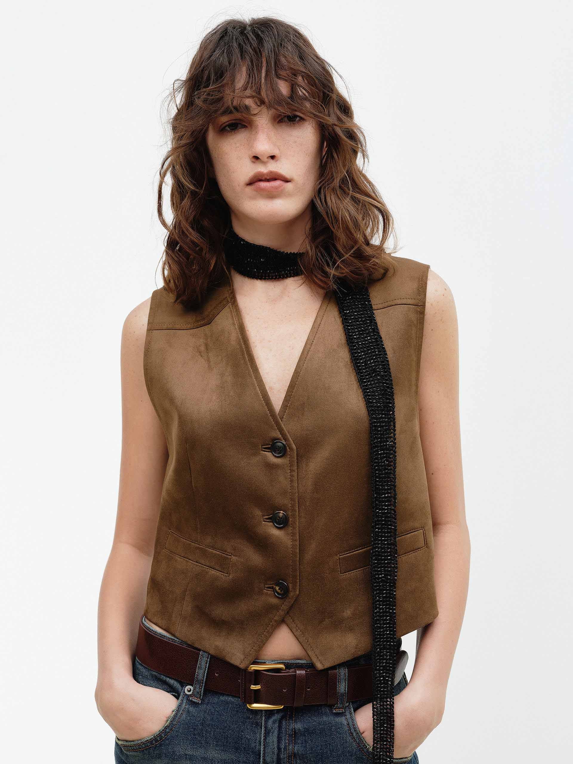 MO&Co. 女士 V 領麂皮紋背心