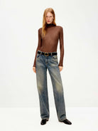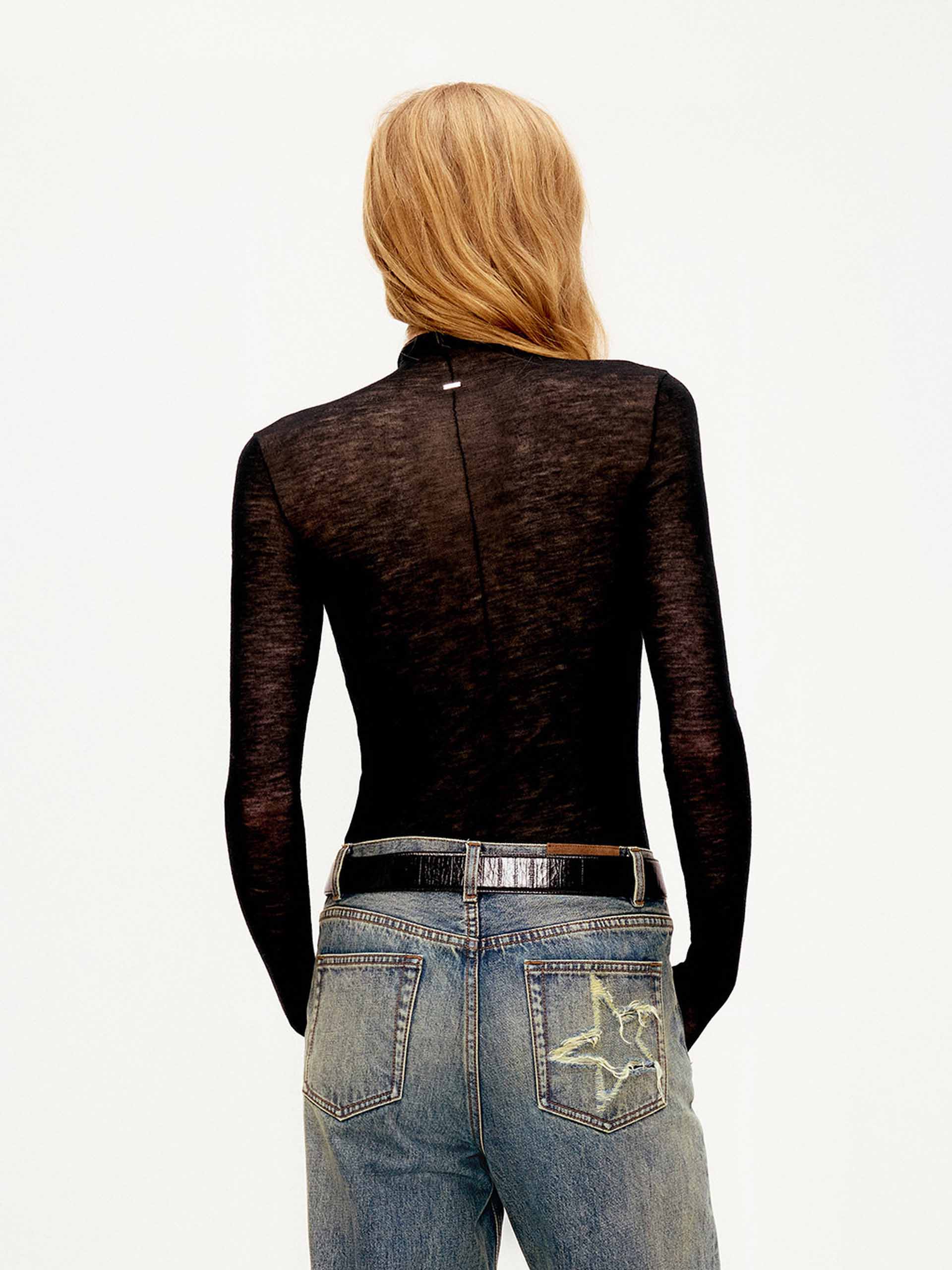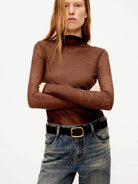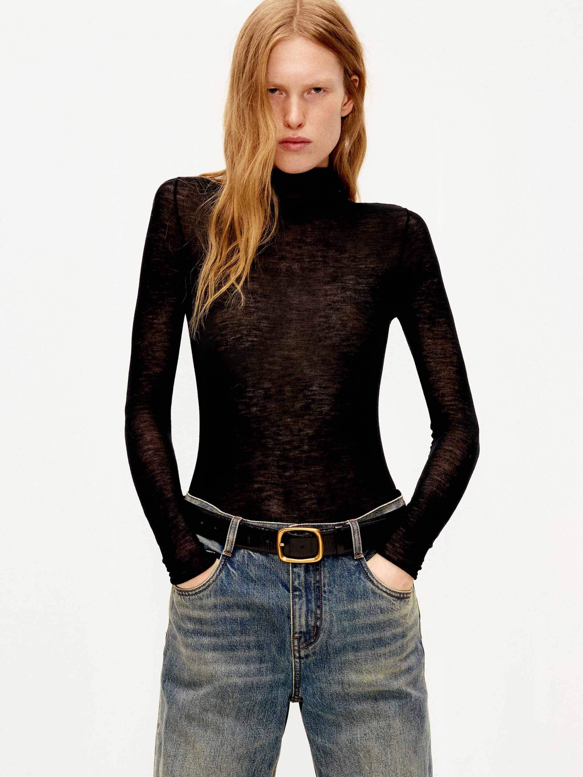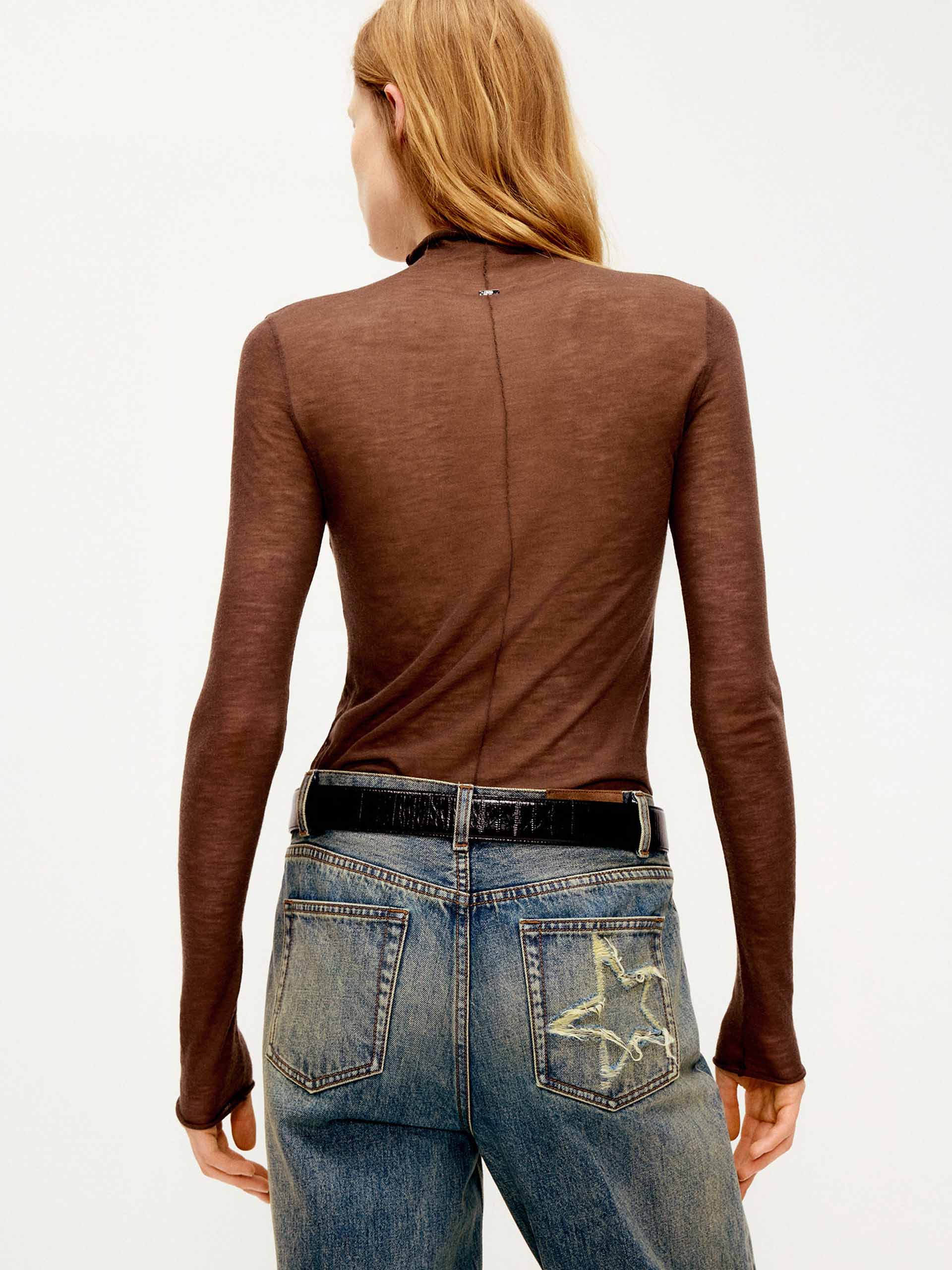採用羊毛與羊絨的奢華混紡面料製成,這款上衣提供俐落的修身版型,展現精緻、流線型的輪廓。優雅的高領配捲邊飾與獨特的金屬片細節,創造出摩登的雅緻感,而微妙的後中縫線確保了精美的合身剪裁。這款上衣巧妙結合了奢華的舒適感與永恆的設計,展現多樣化的優雅。