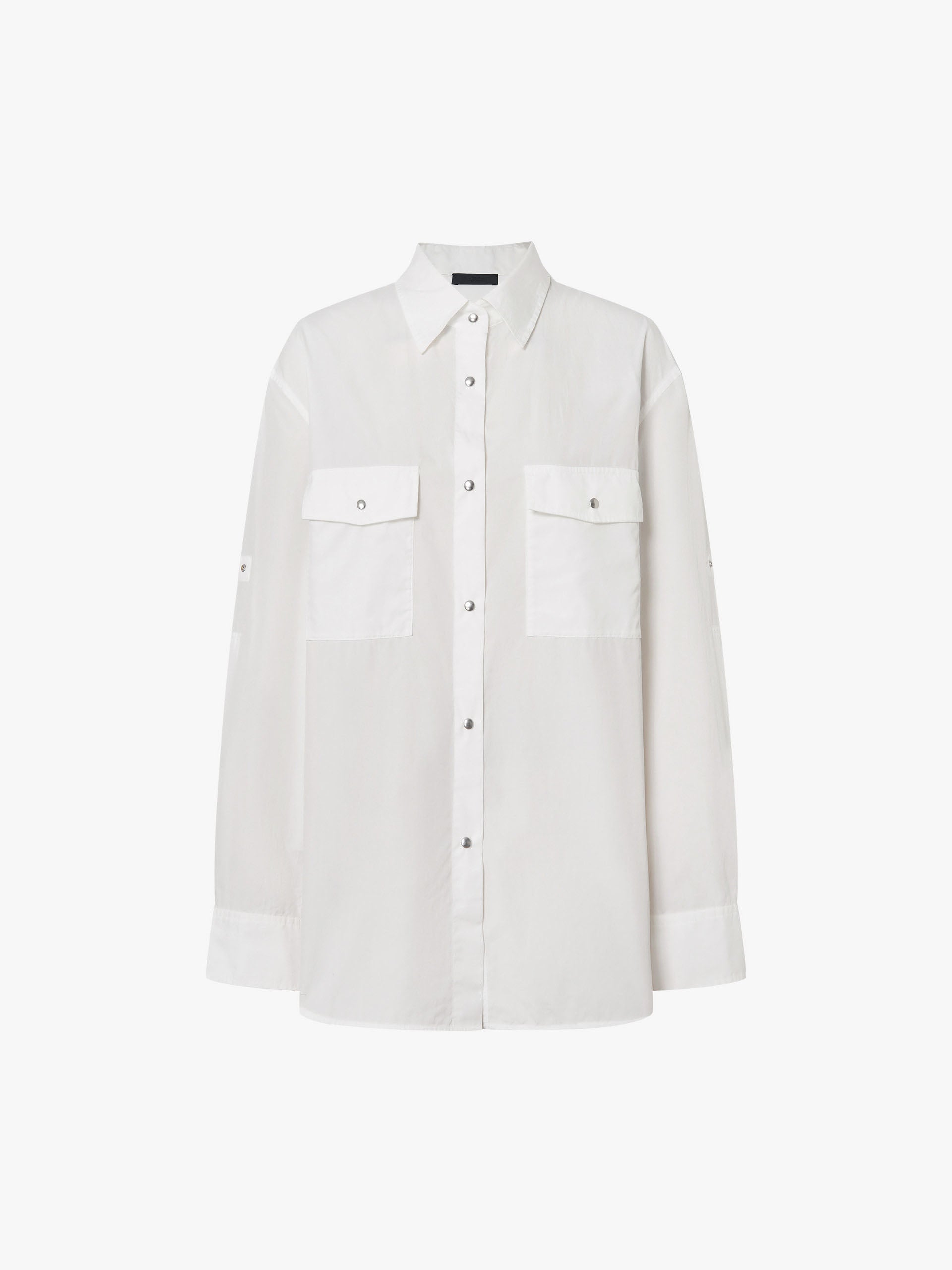 此款襯衫選用100%純棉,寬鬆版型活動自如,胸前按扣口袋方便實用,袖口可調節扣環設計,打造個人化合身度。