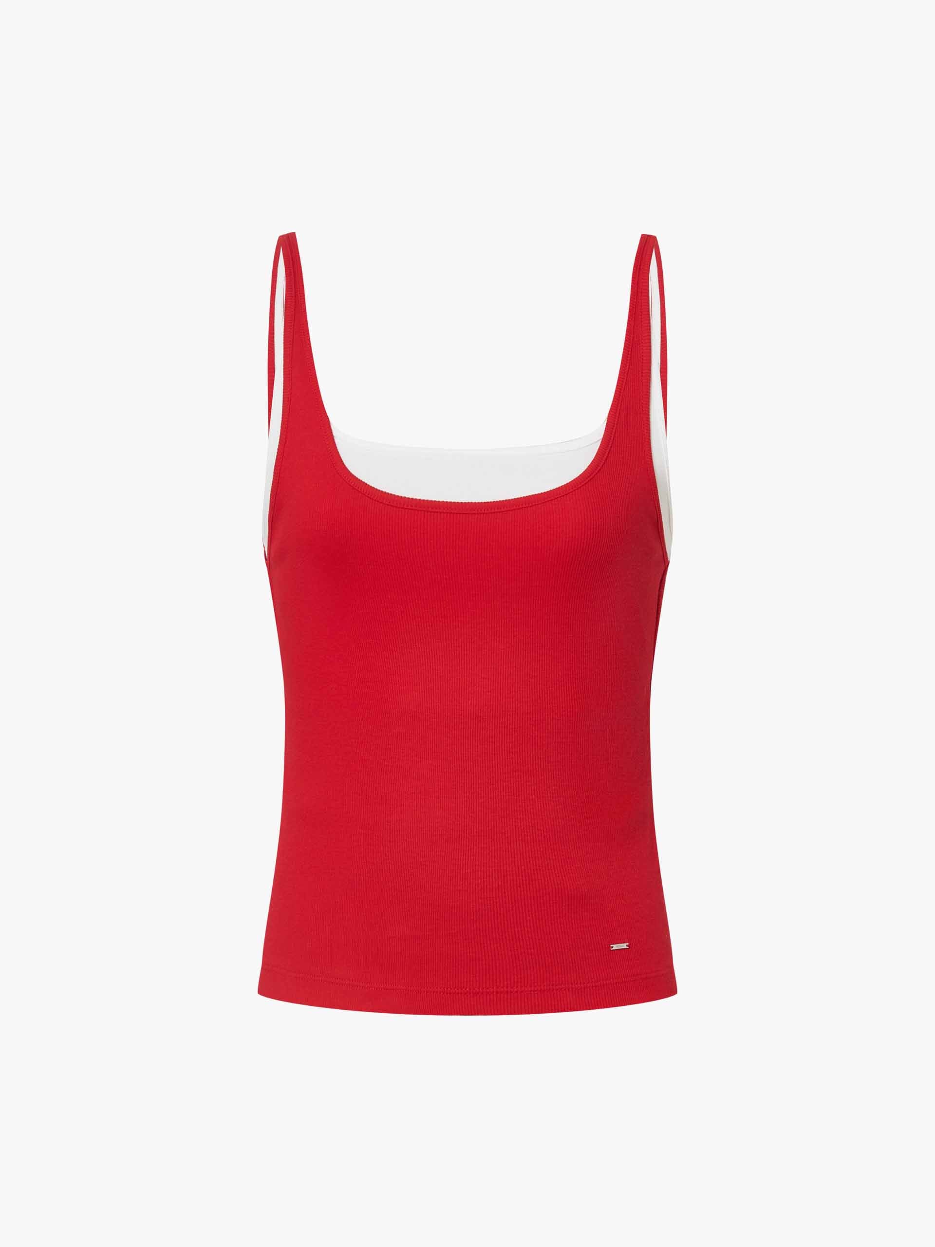 這款背心採用柔軟彈性棉質,舒適好穿。修飾的U型領口搭配露背設計,並以撞色拼接細節增添層次感。俐落時髦——適合疊穿或單穿作為個性焦點單品。