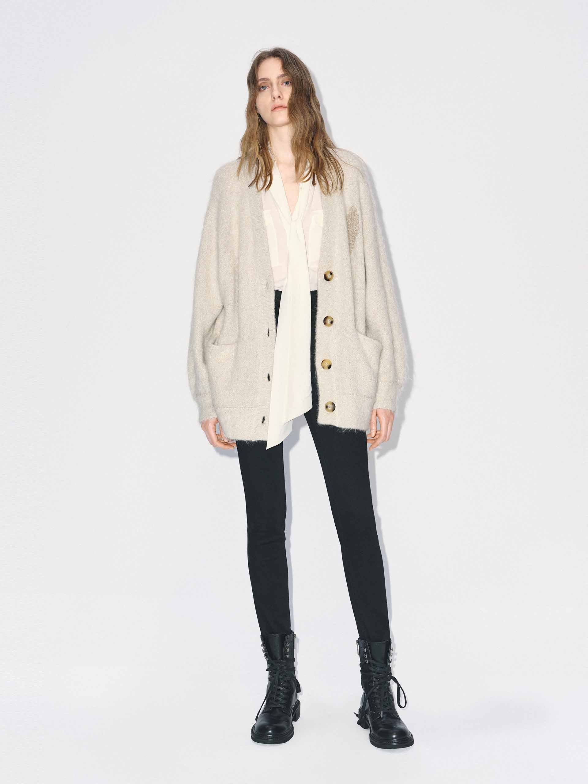 這件開襟衫輕鬆融合舒適感與精緻閃耀元素。修飾臉型的 V 領與實用鈕扣開合,呈現經典百搭的外觀。配以實用貼袋,採用獨特金蔥面料,展現微妙的對比圖案,捕捉光線,創造出耀眼又易穿著的亮眼單品,完美提升任何造型。