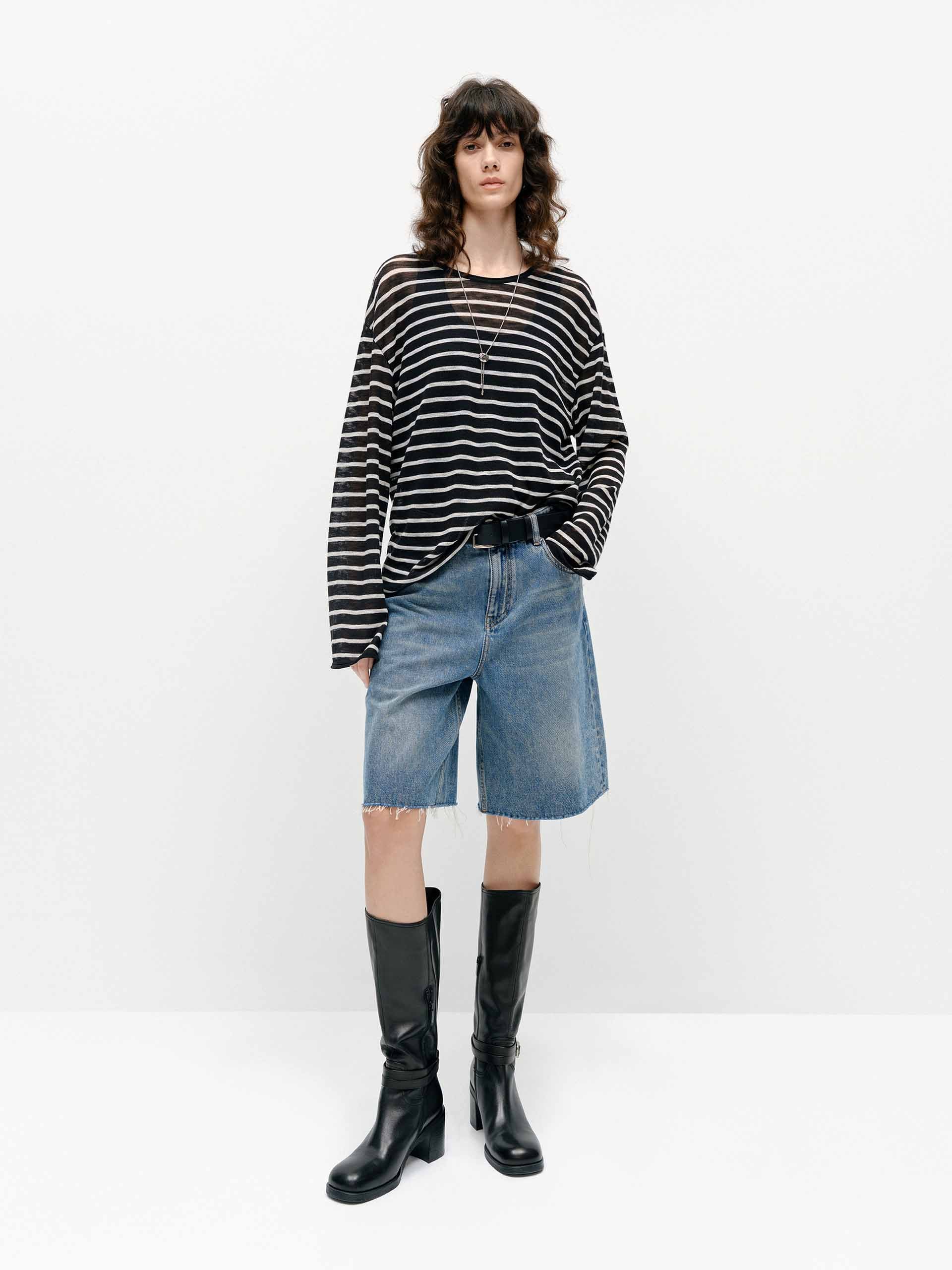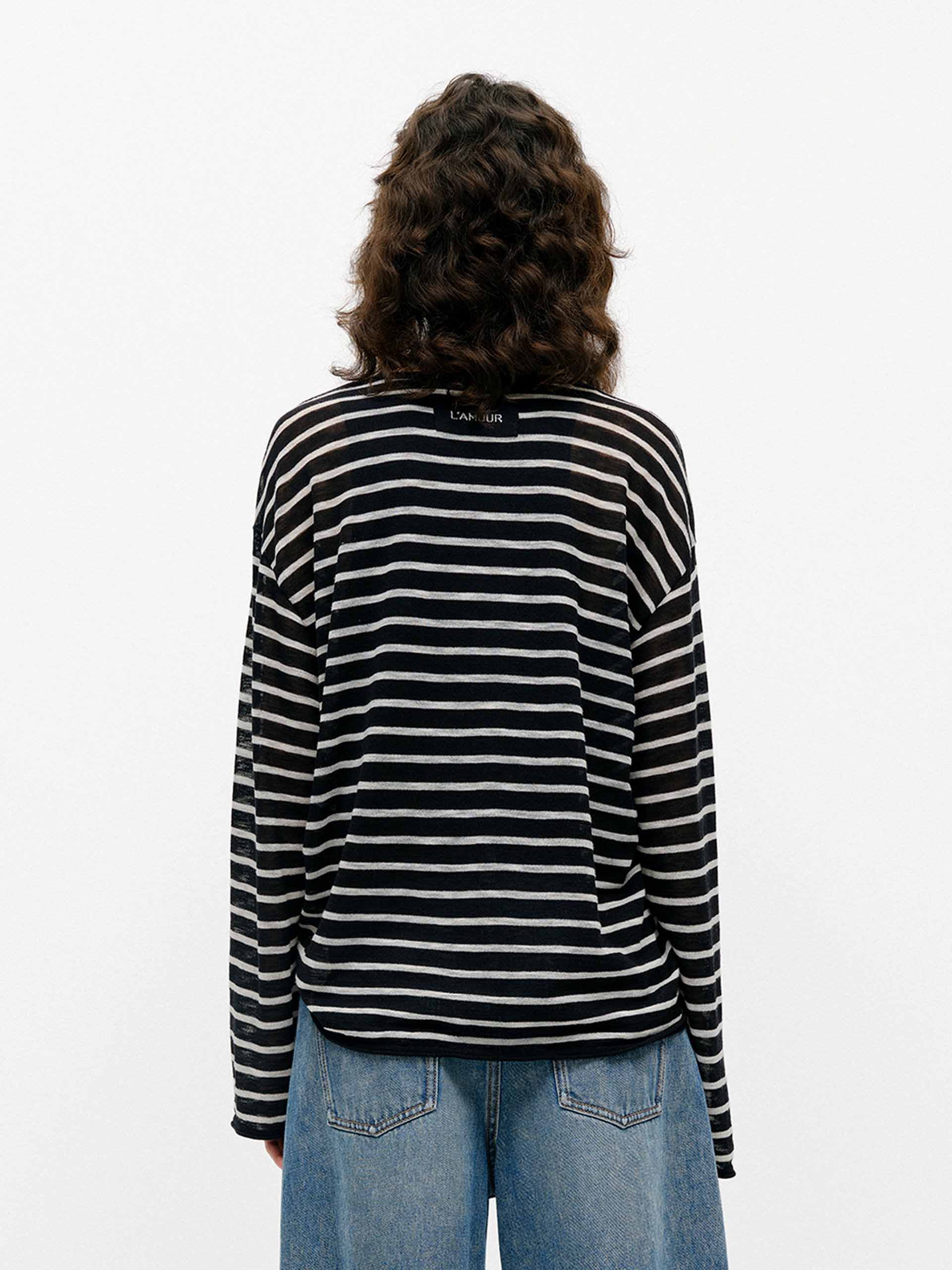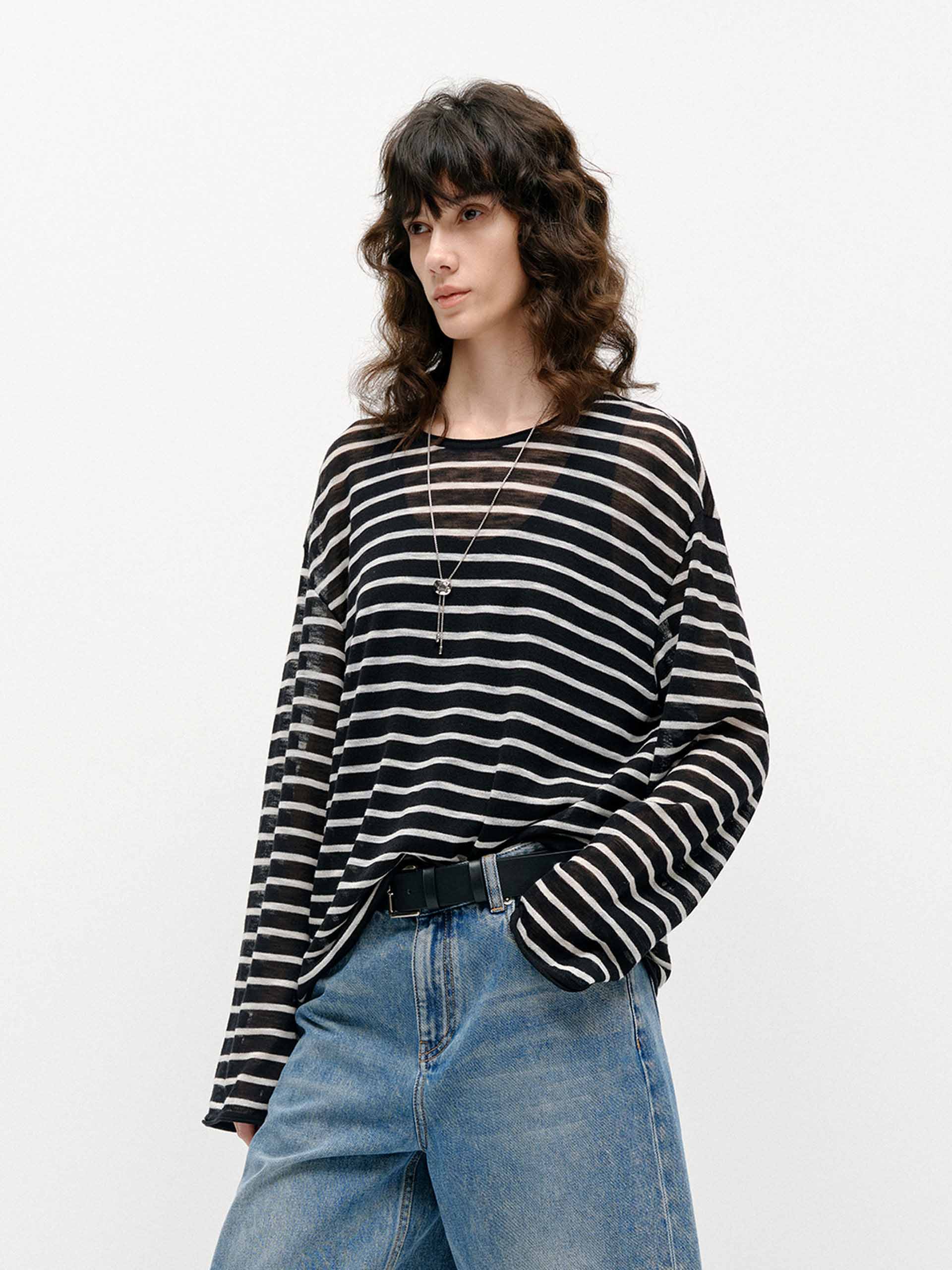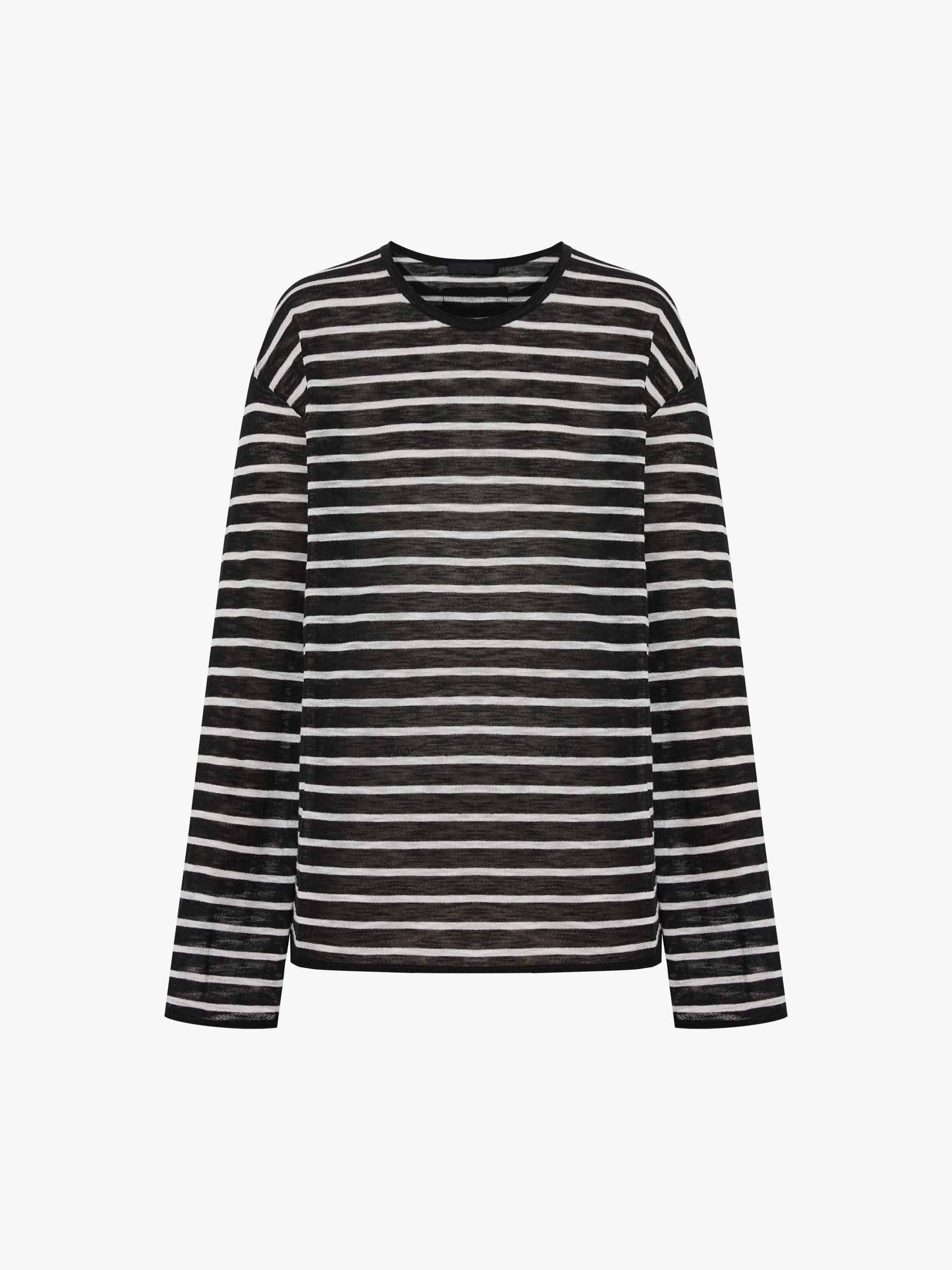 這款毛衣讓您體驗輕鬆的舒適與風格。採用柔軟的羊毛混紡面料製作,具有寬鬆剪裁、經典的黑白條紋和落肩設計。非常適合打造休閒時尚造型。