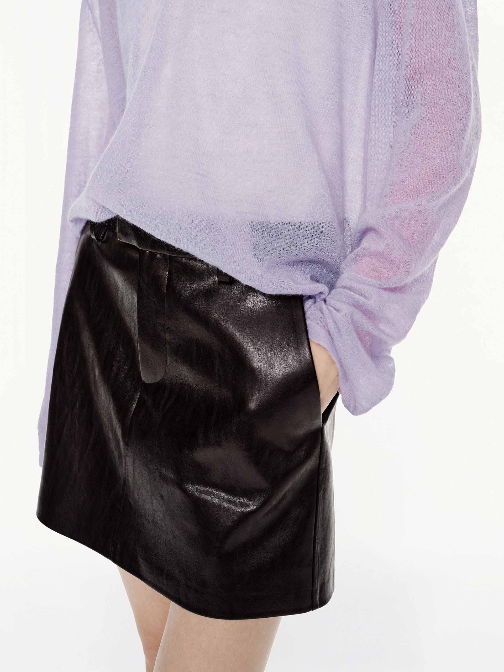 這款裙褲採用高品質人造皮革製成,呈現光滑純素風格,打造強烈時尚宣言。高腰設計延伸腿部線條,鉤扣、棒扣與拉鍊閉合確保貼合度。實用側邊口袋為時尚輪廓增添實用邊緣感。完美搭配靴子打造夜間外出造型。