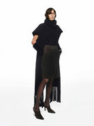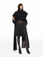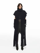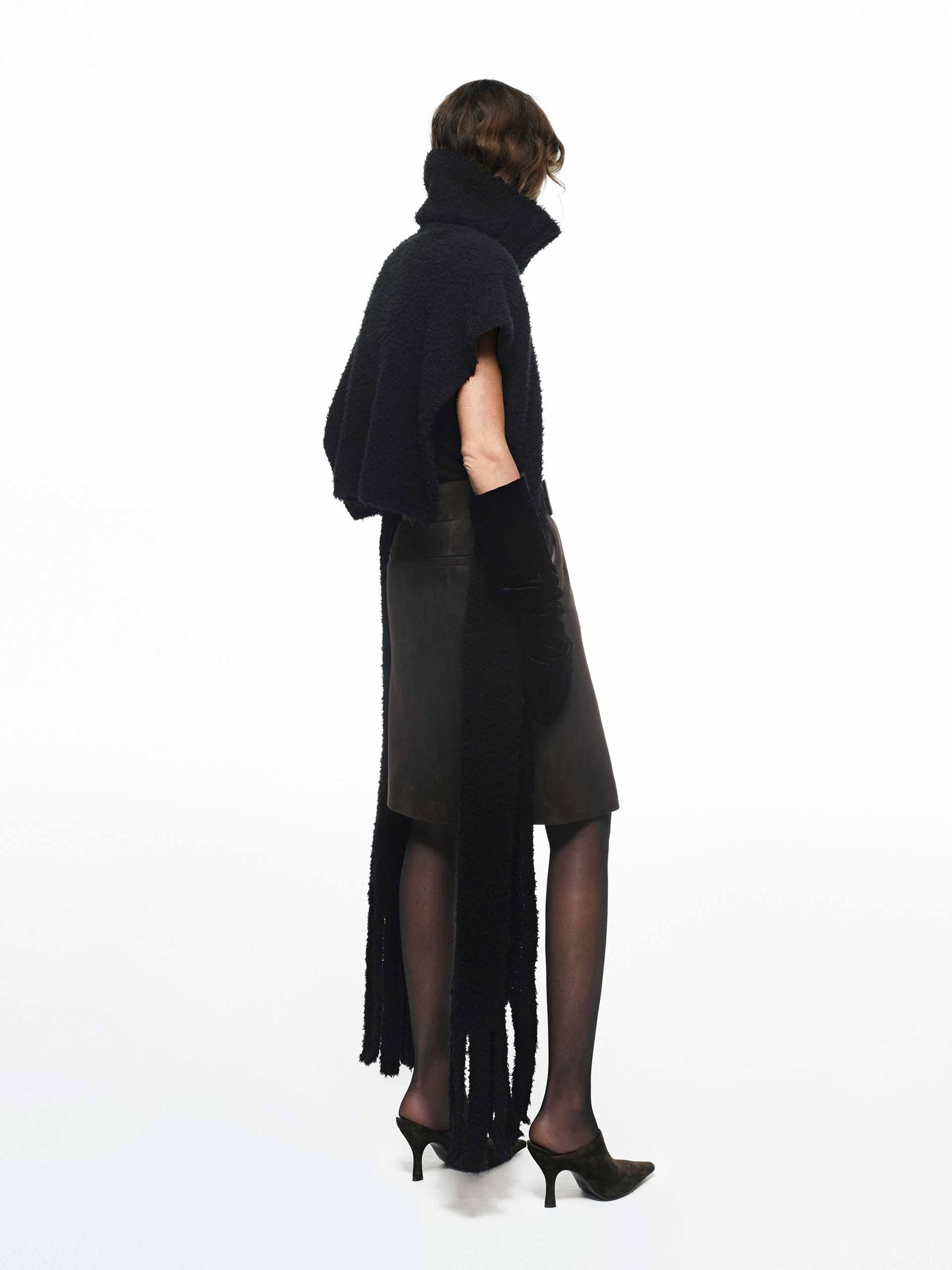 以我們的毛衣擁抱俏皮別緻的冬季風格。這款上衣採用現代短版版型,與高腰下身完美搭配,搭配舒適的高領和短袖,打造獨特的季節性造型。一體式圍巾細節增添從容優雅與額外保暖度,全部採用柔軟保暖的羊毛混紡材質製作,確保舒適隔熱與獨特時尚感。