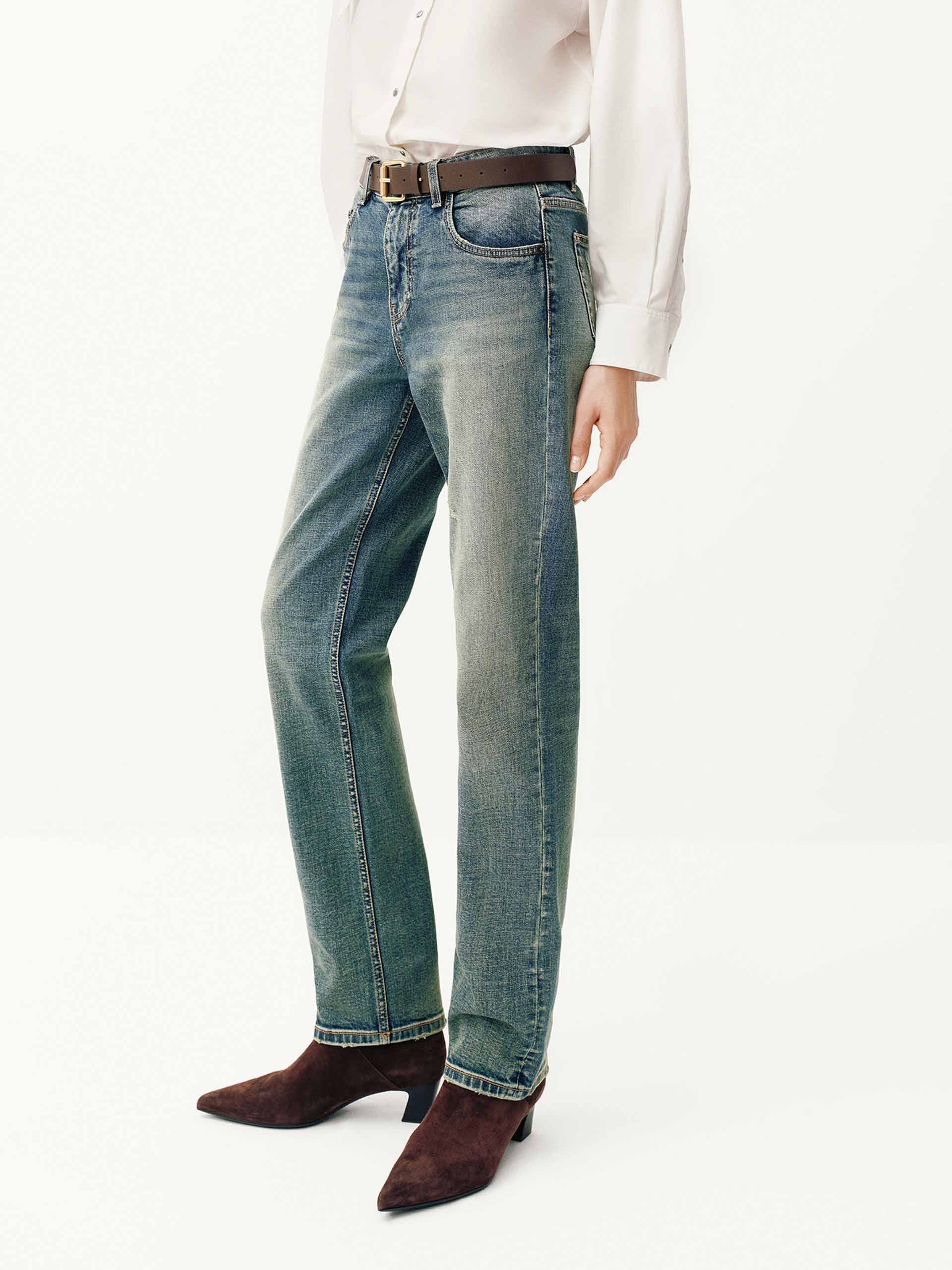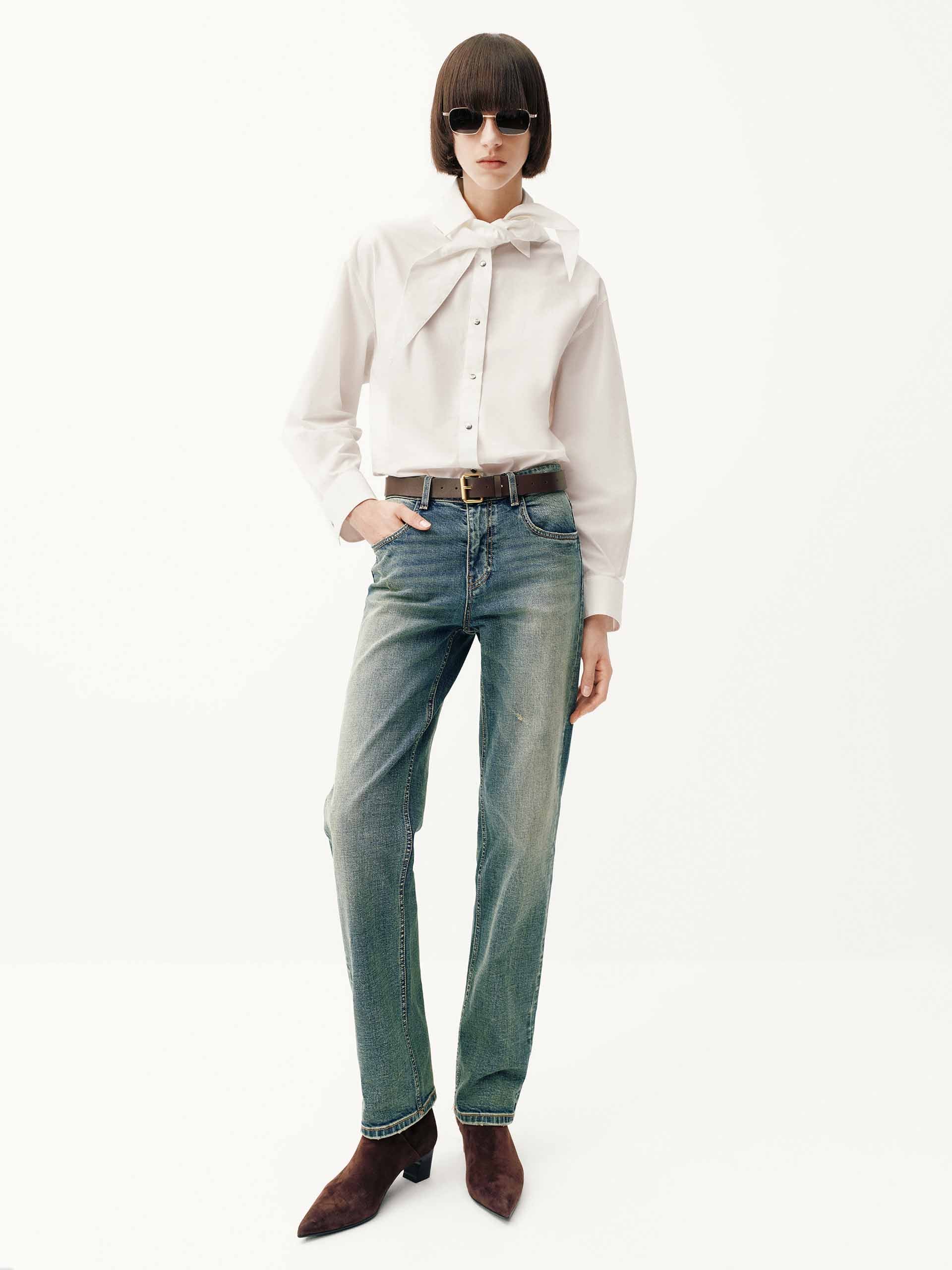 - 拉鍊鈕扣閉合,經典五口袋設計