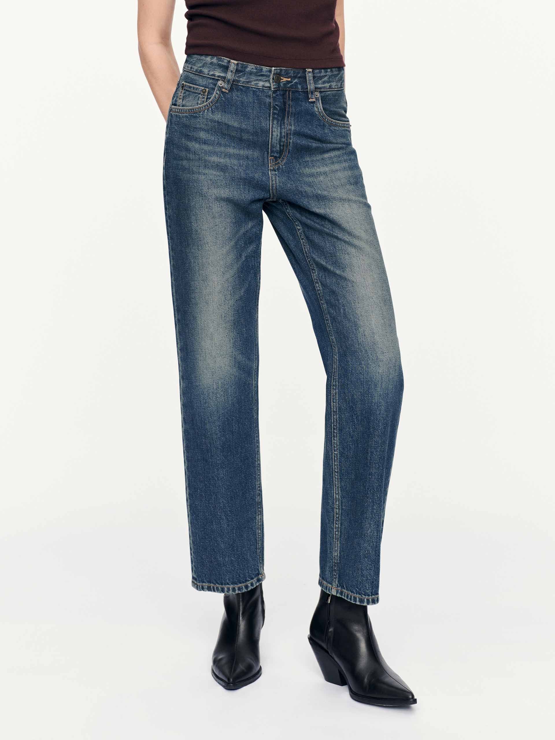 復古藍直筒牛仔褲