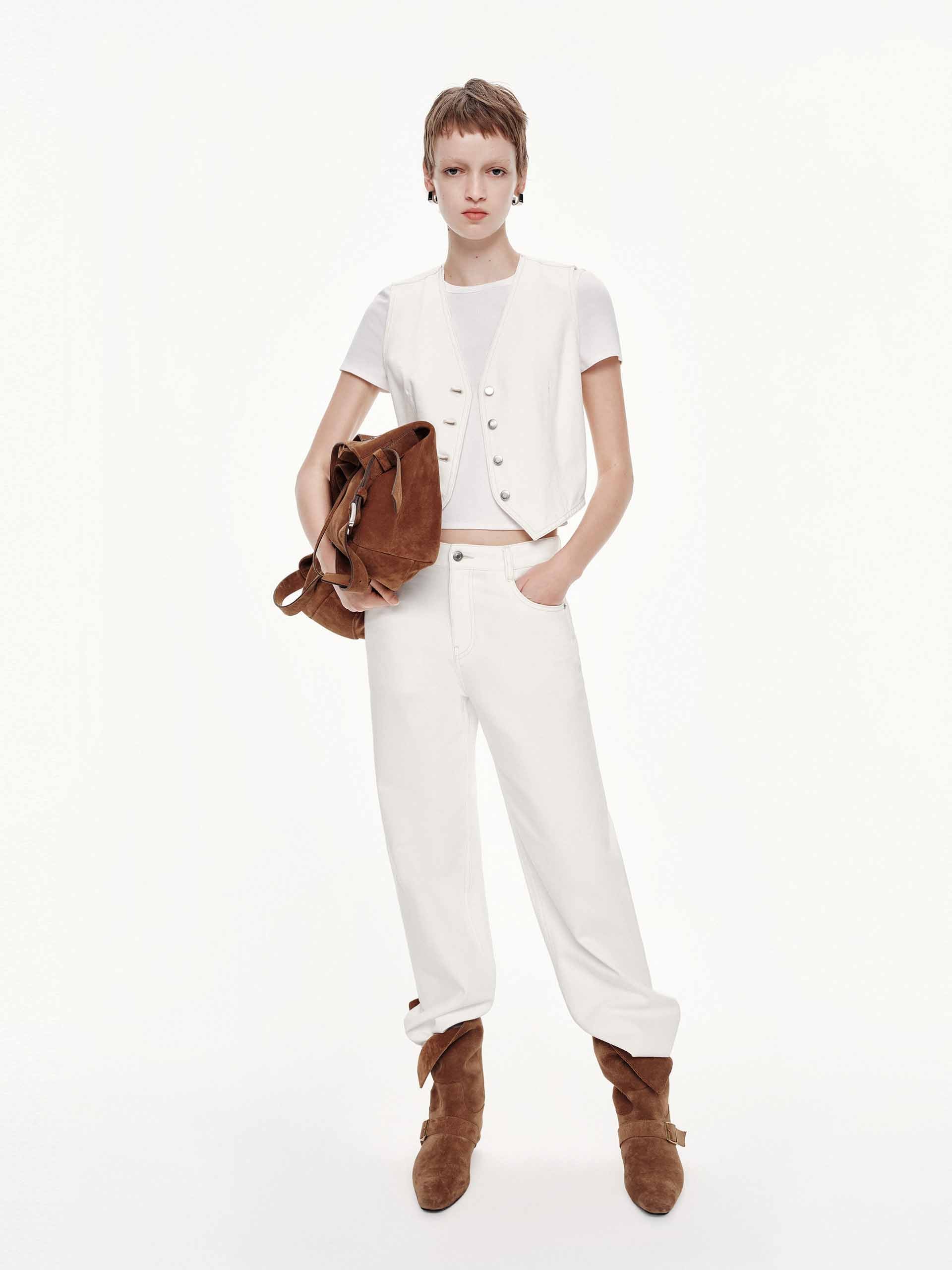 桶型白色牛仔褲