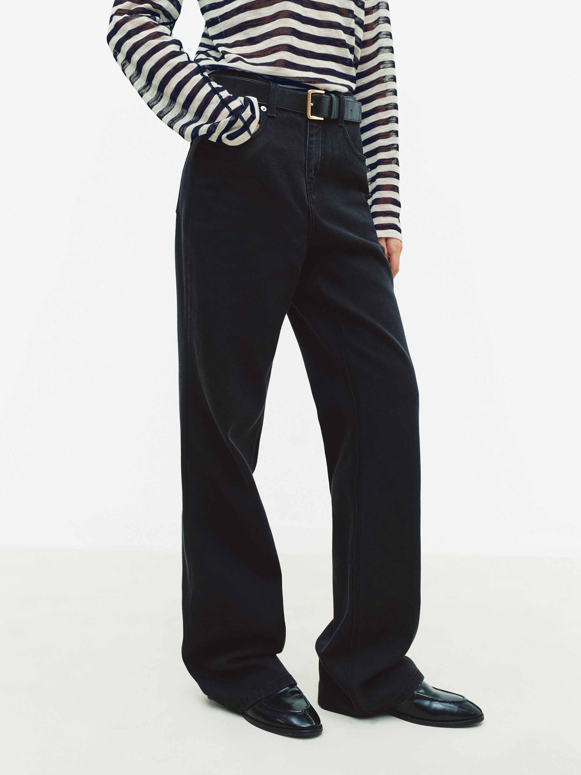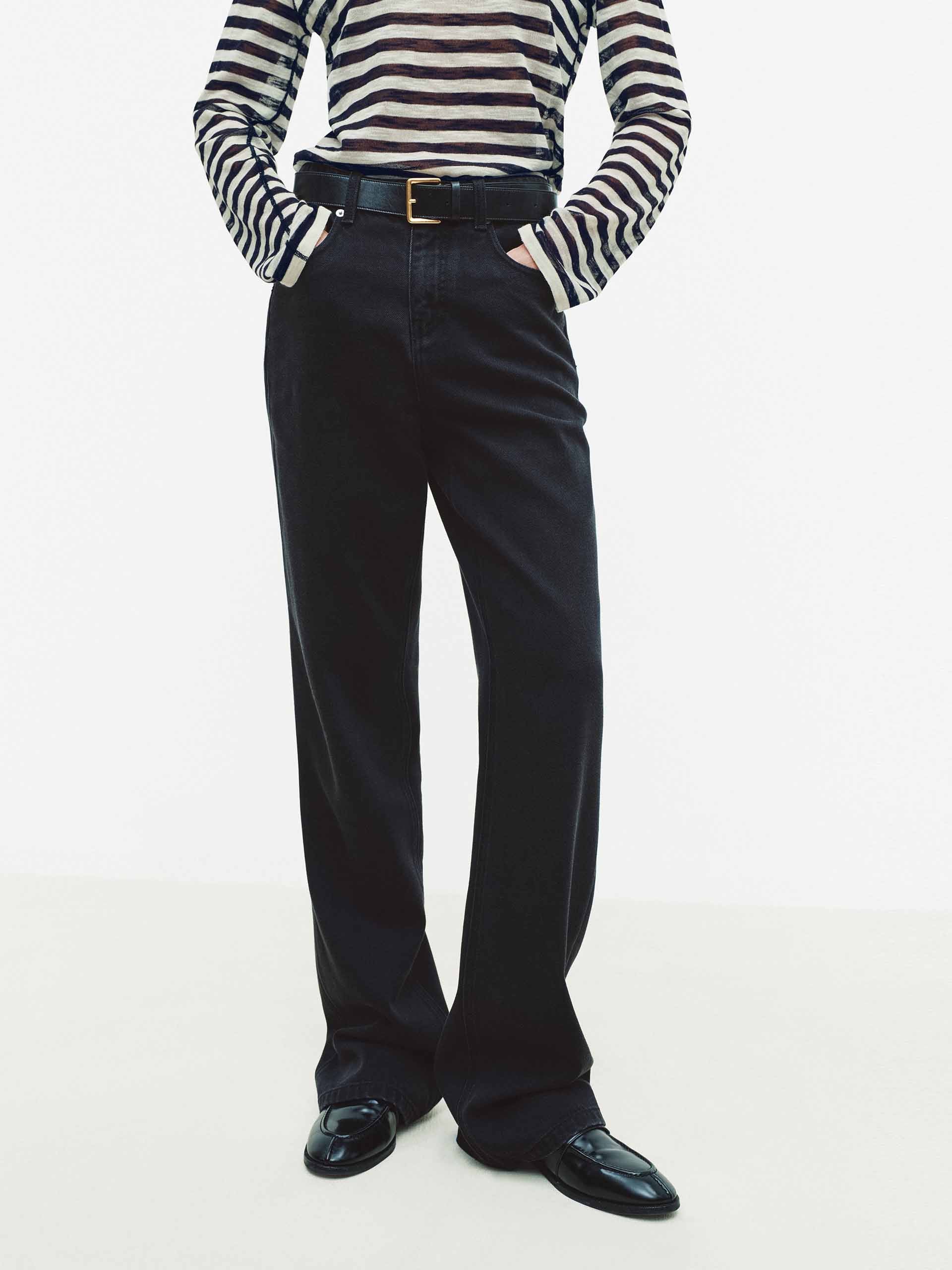 這款牛仔褲採用寬鬆剪裁,精心剪裁的喇叭褲型不僅修飾腿型,更增添復古休閒風格。腰頭處略帶磨損與褪色細節,為基礎款式注入復古感。無論如何搭配,都能輕鬆打造舒適日常造型。