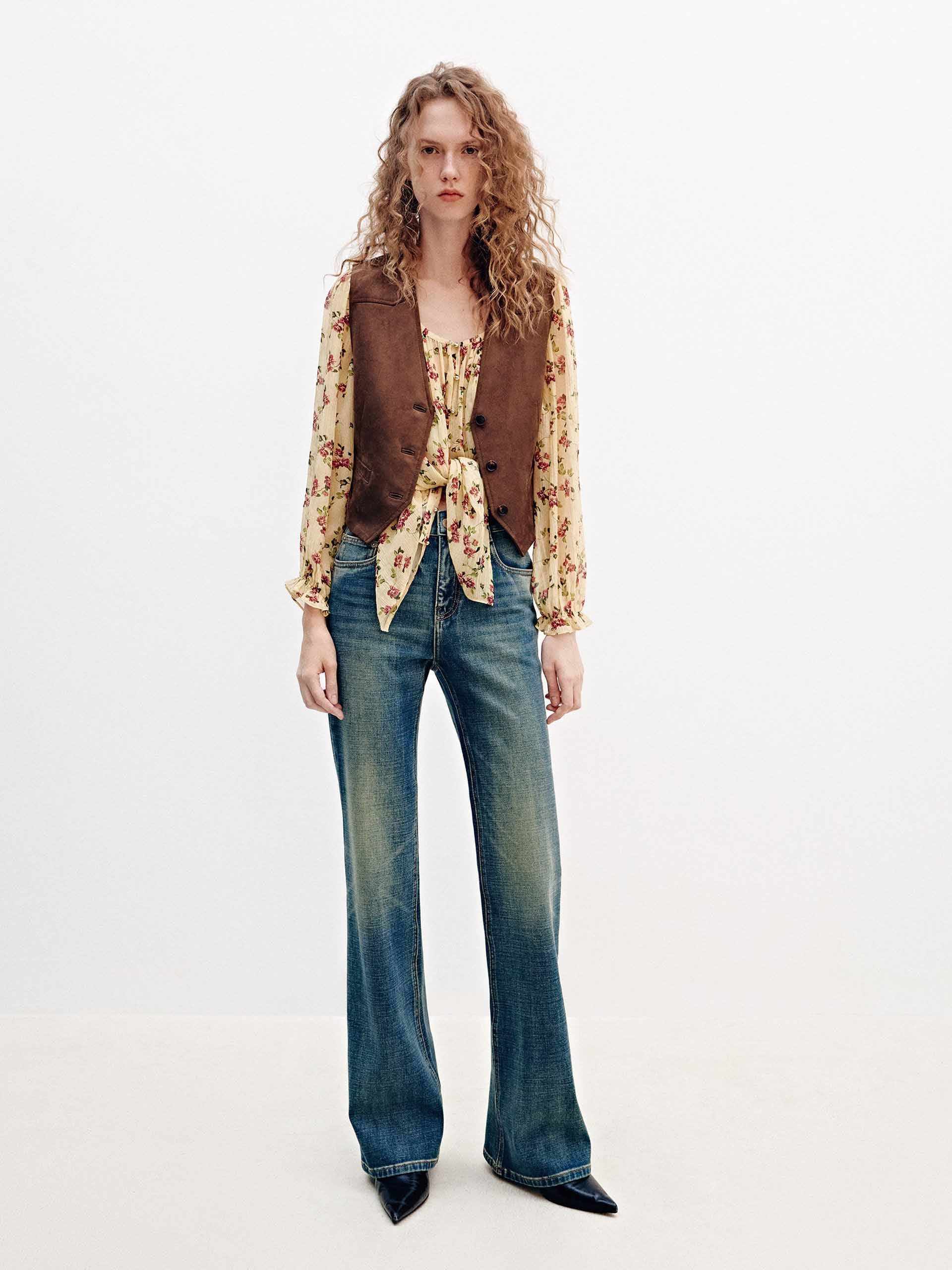 混棉喇叭牛仔褲