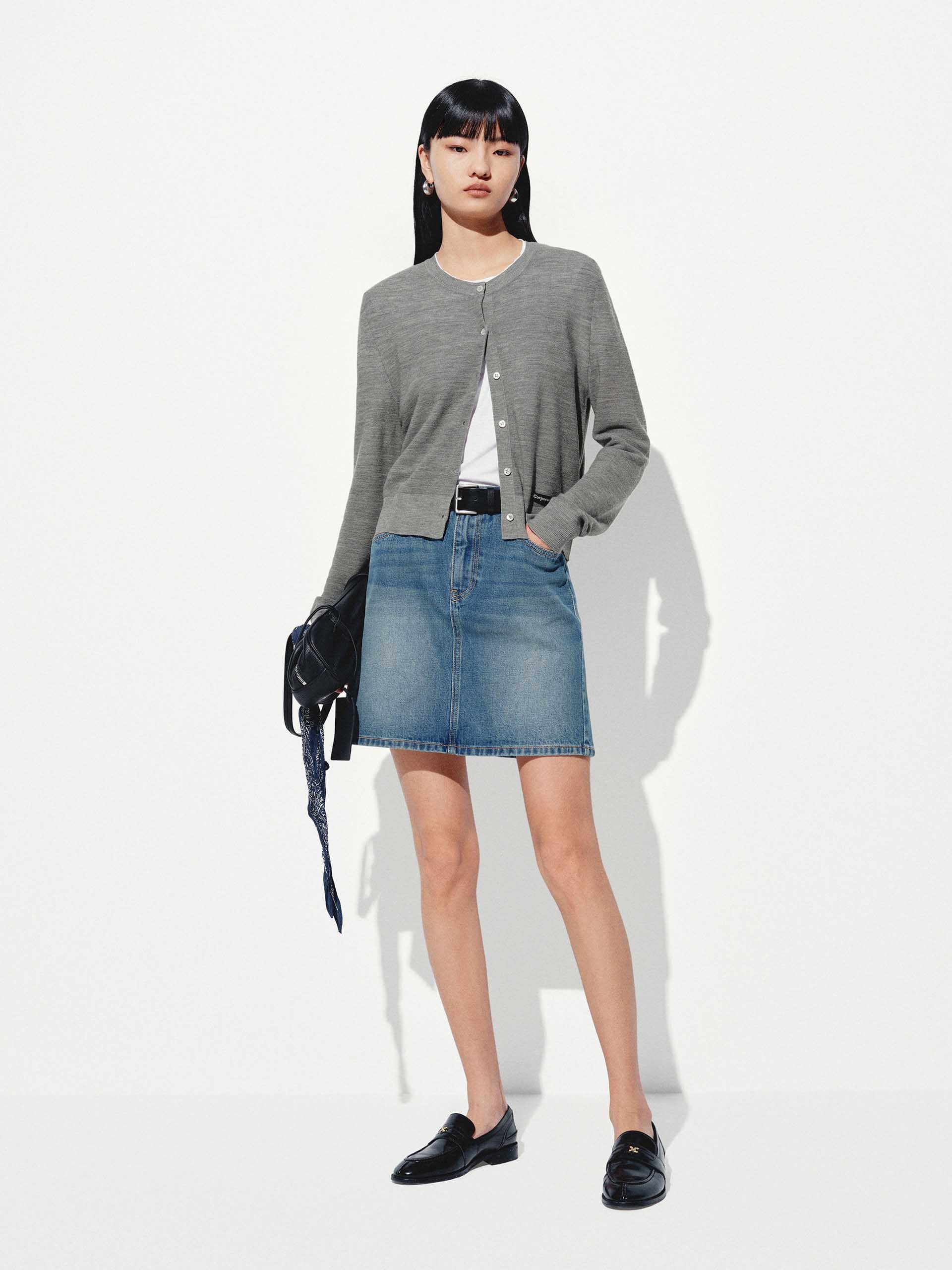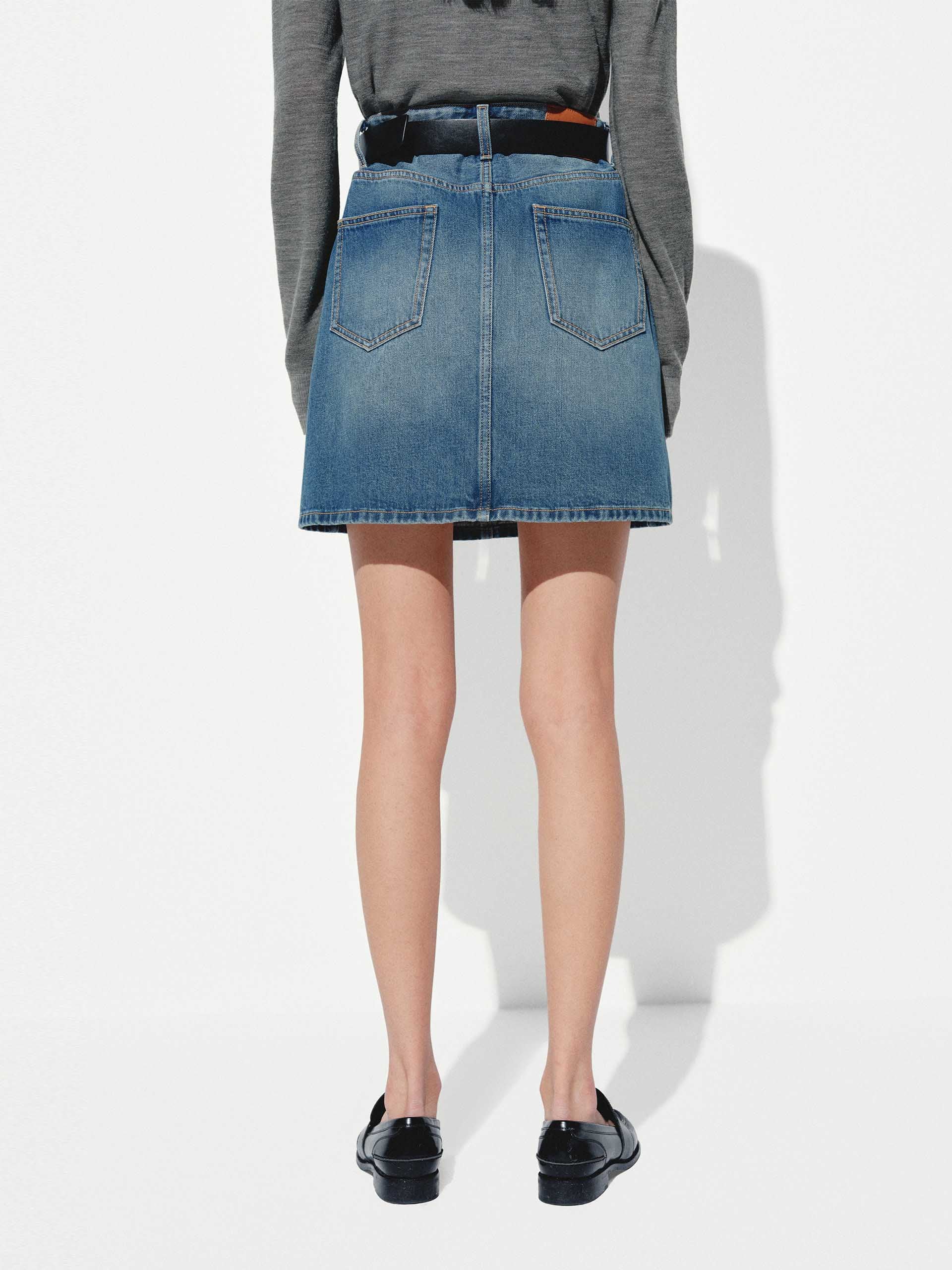 這款A字牛仔迷你裙特色是高腰和經典A字輪廓。配有拉鍊鈕扣閉合和後口袋增添便利性,採用100%棉質製成,提供舒適時尚貼合。