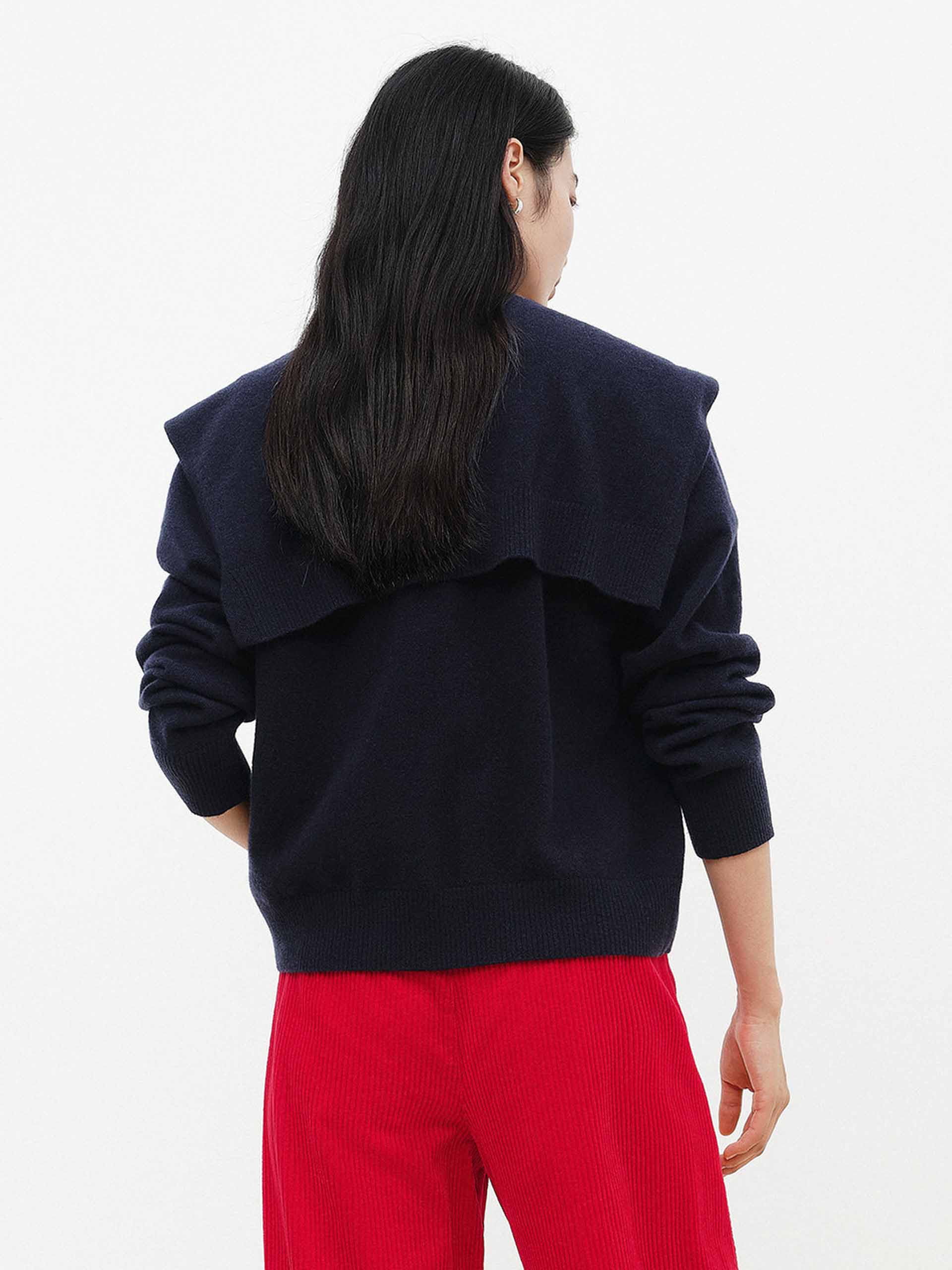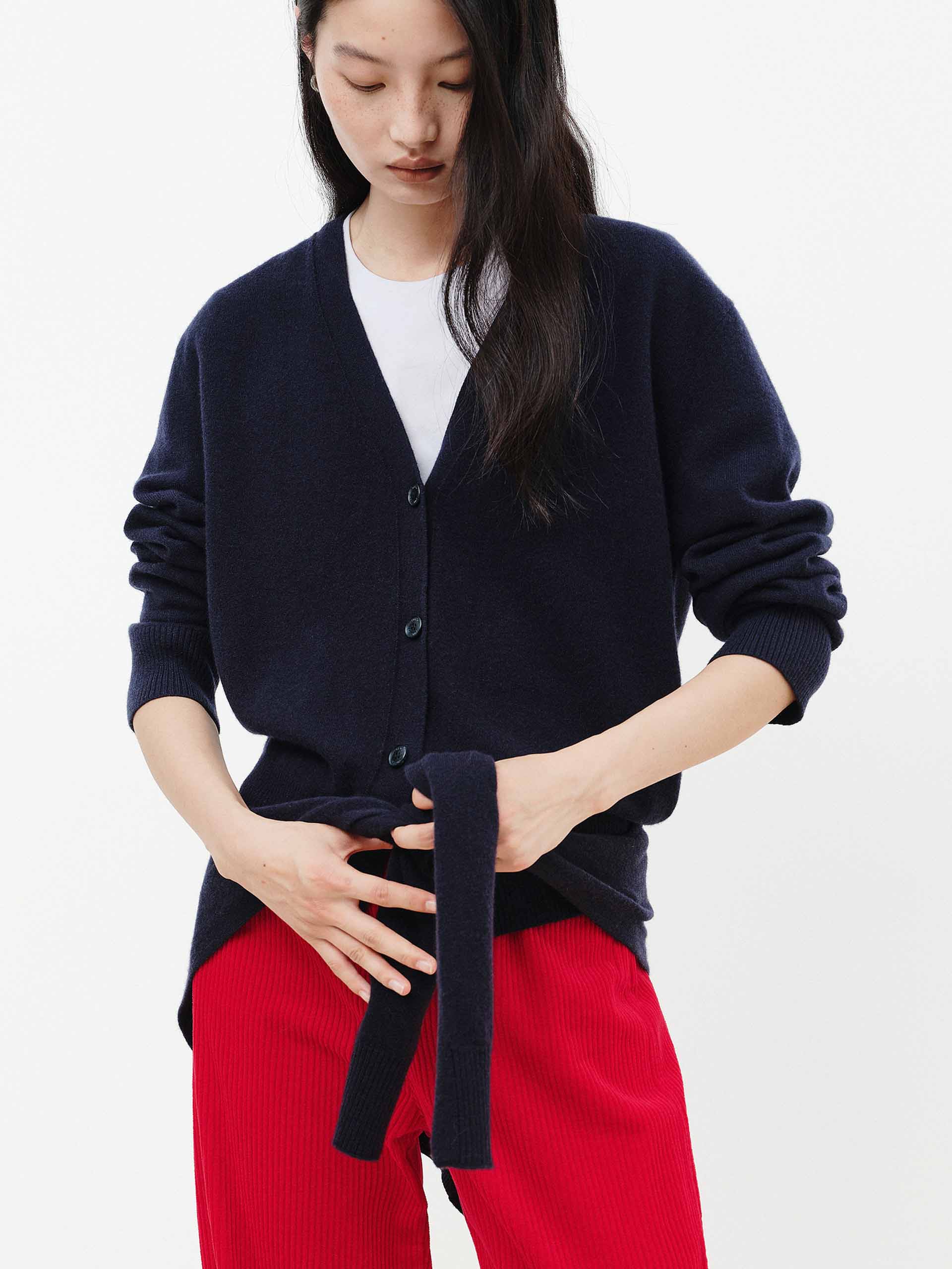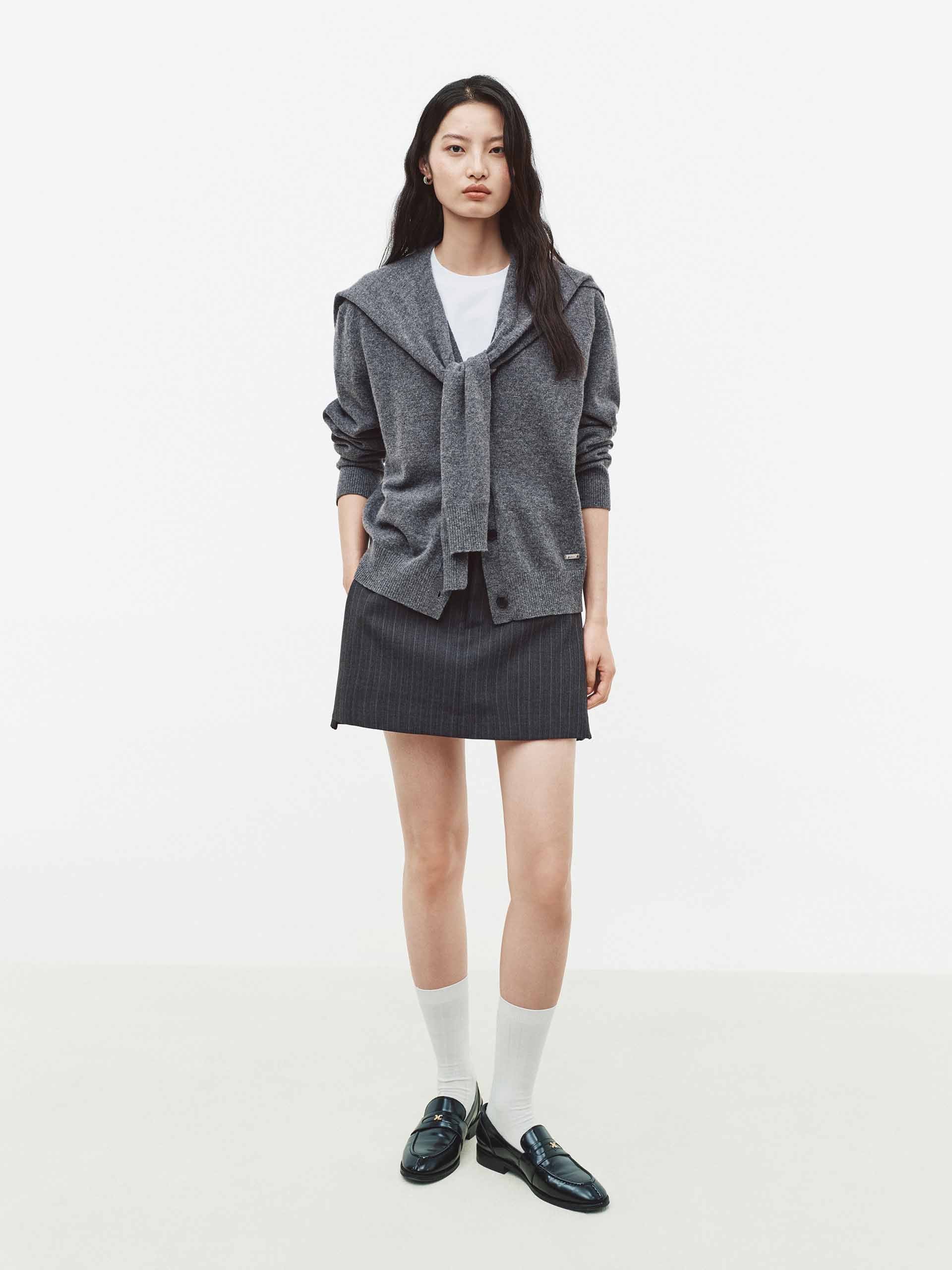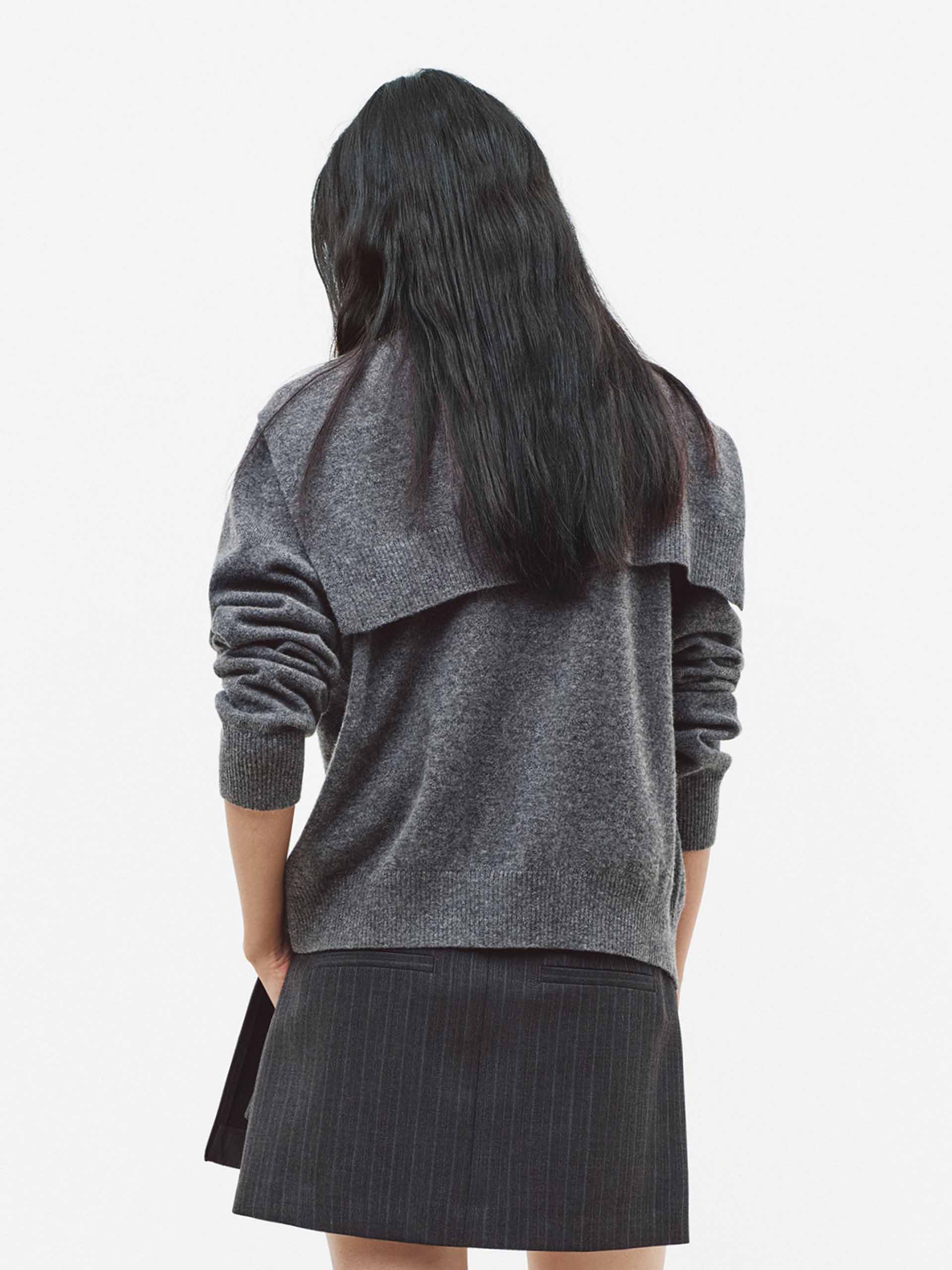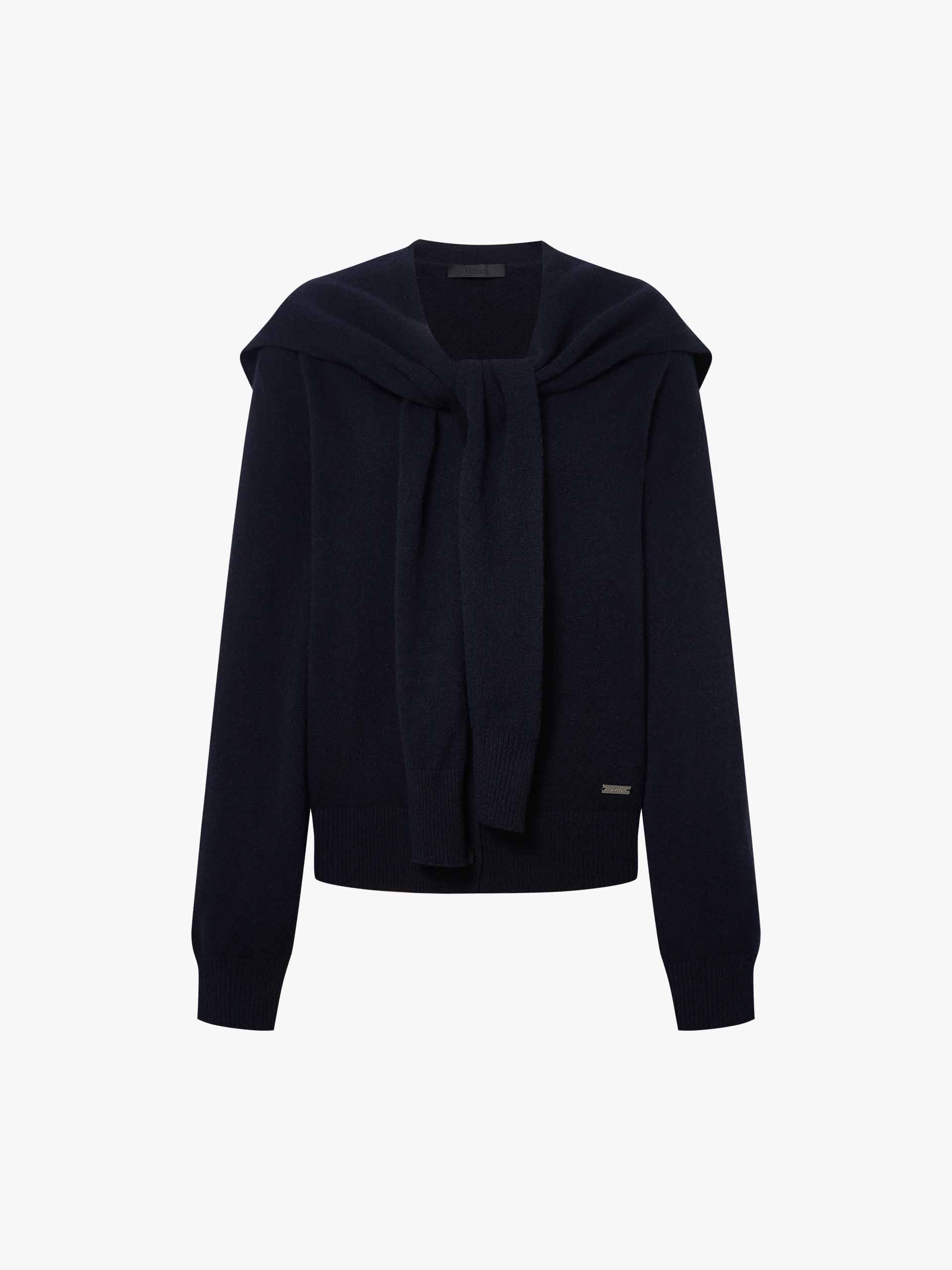 這是柔軟與結構的獨特宣言,這款開襟衫採用 100% 羊毛精心編織而成。其乾淨的標準版型和 V 領設計適用於多層次穿搭,並以精緻的鈕扣閉合固定。設計特色在於優雅的附連披肩,並在下擺點綴有低調的金屬飾片,營造出溫暖舒適與剪裁精緻的完美平衡。