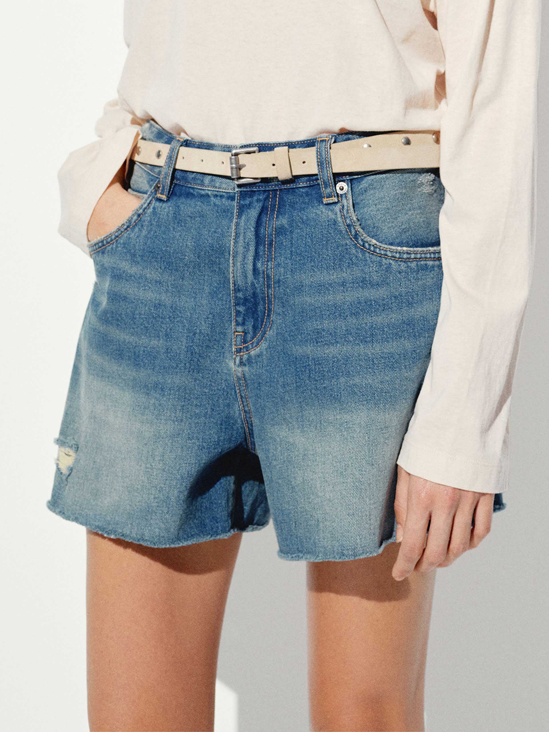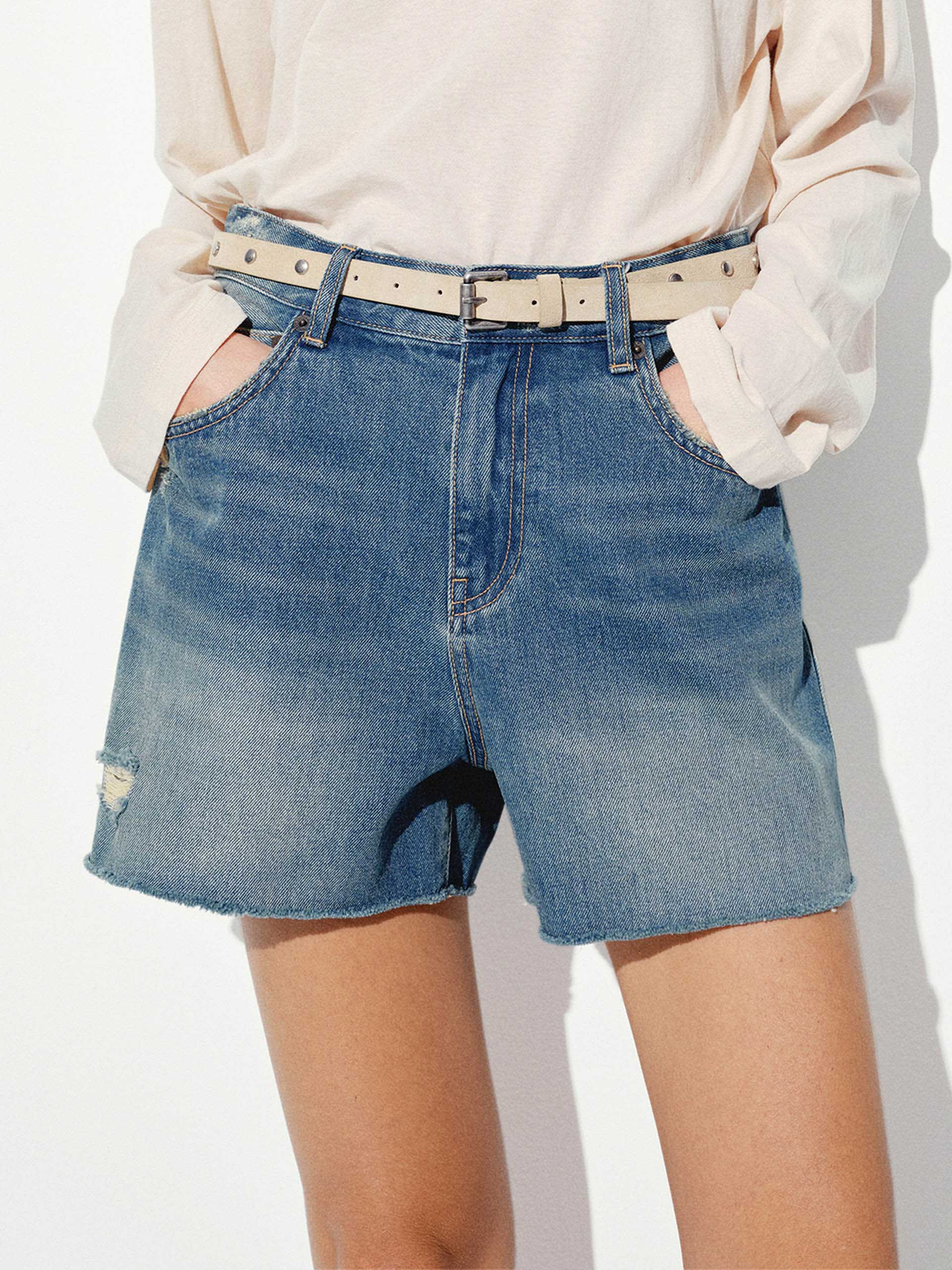 破損棉質牛仔短褲