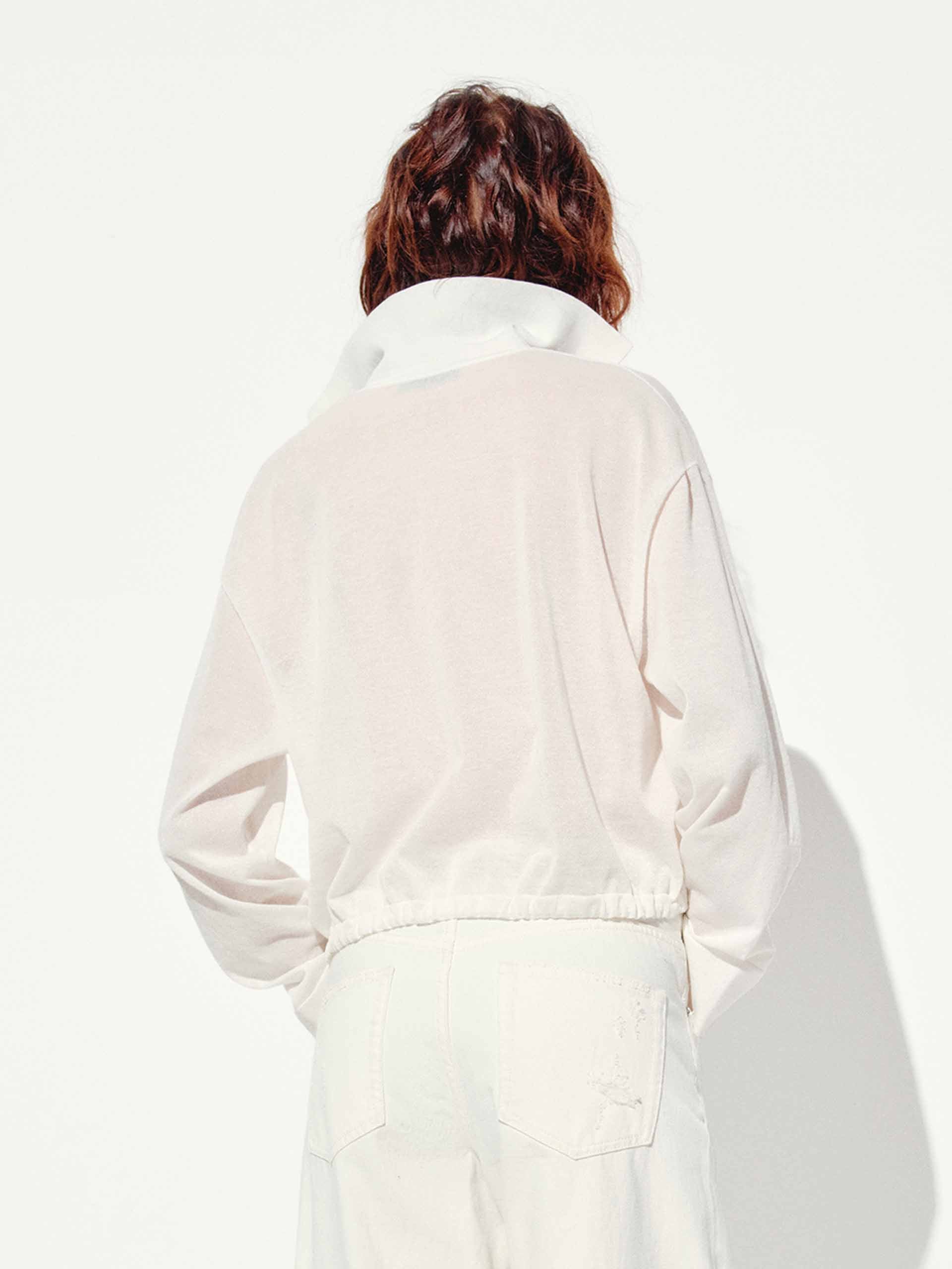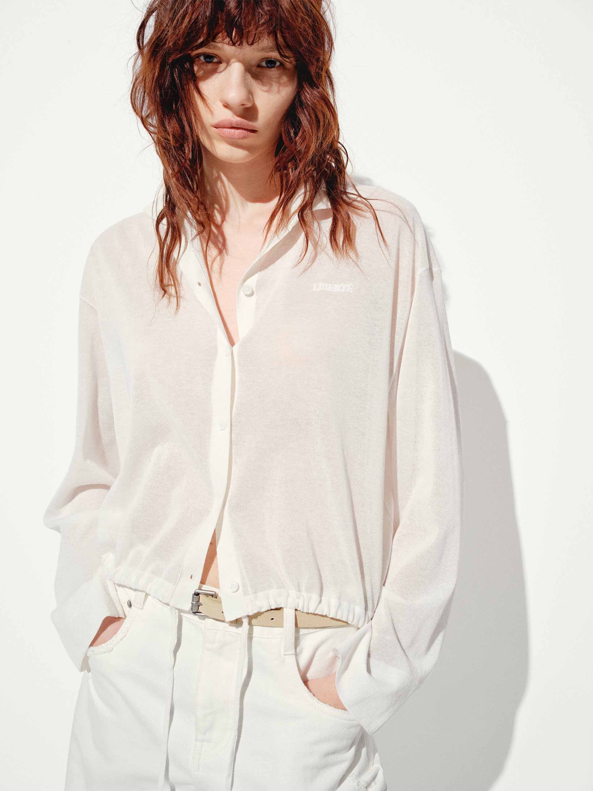 這款短版上衣展現毫不費力的時尚與完美多功能性,專為輕鬆休閒風格設計。可調節抽繩下擺搭配鈕扣閉合,讓你能自定義輪廓—收緊展現身形或放鬆營造隨性感。採用輕盈面料製成,帶有微妙透視效果,適合搭配內衣或背心層次穿搭,長袖設計增添一絲精緻感。