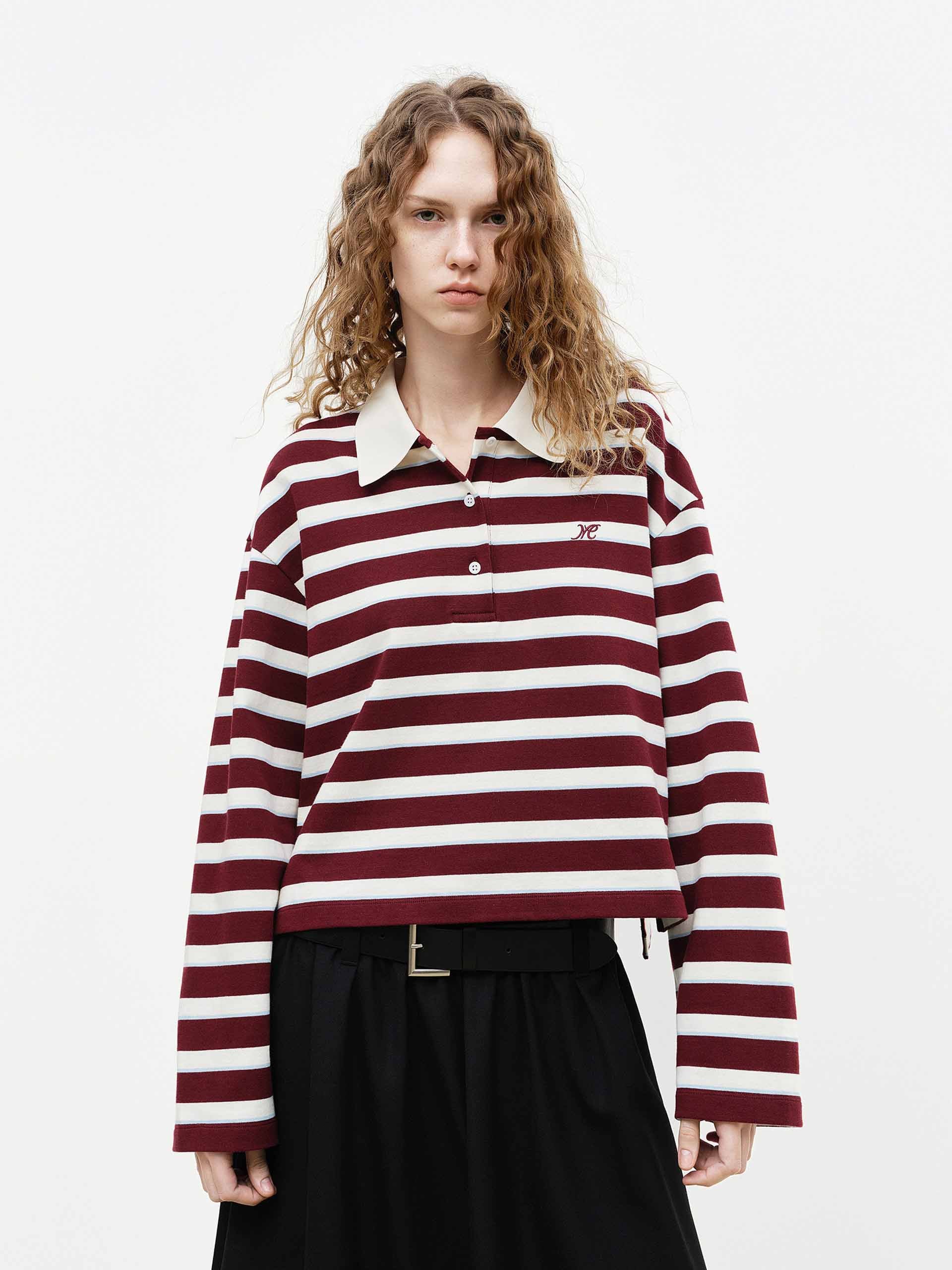 MO&Co. 女士紅色條紋棉質襯衫