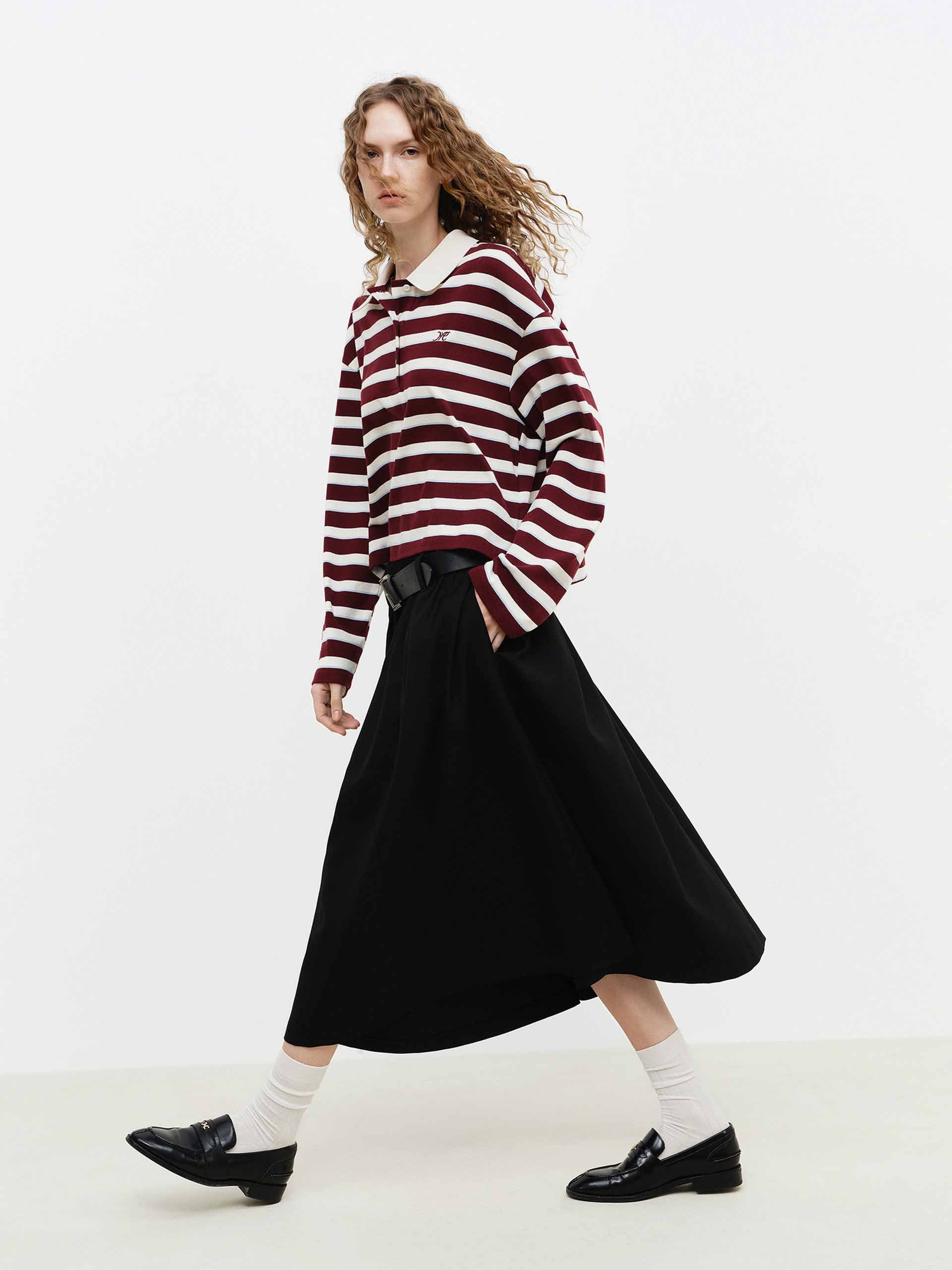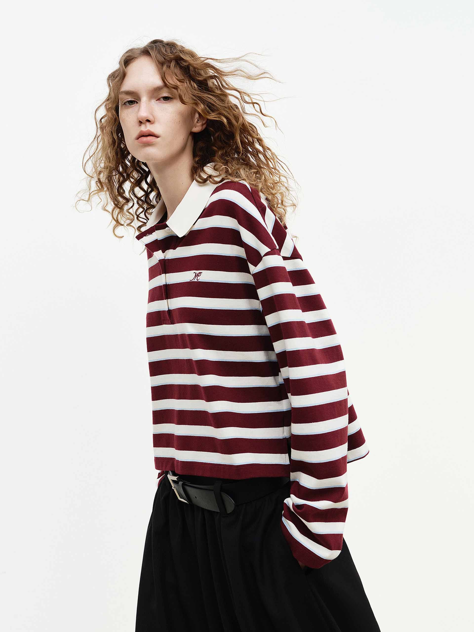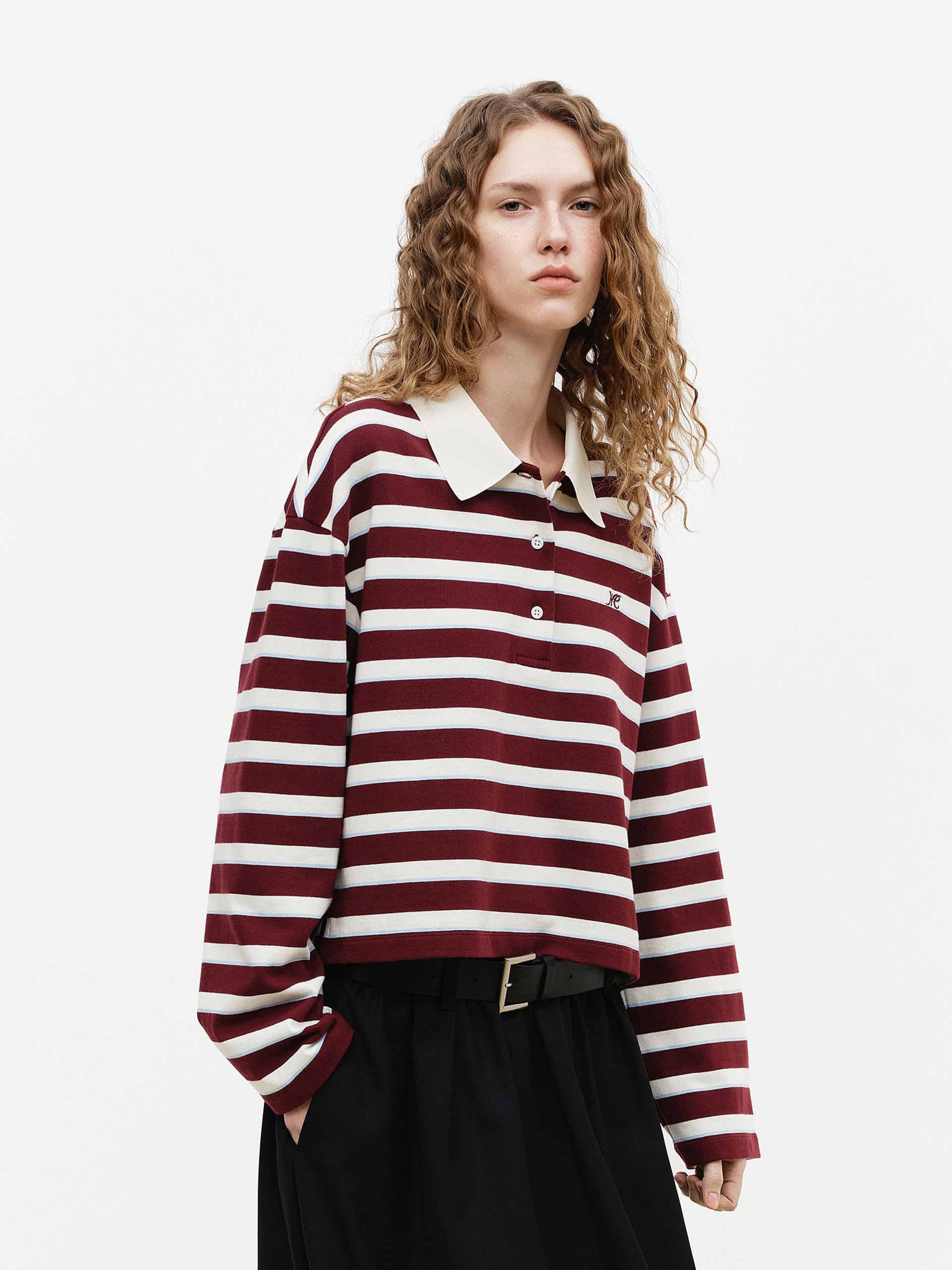 - Polo 領與條紋圖案細節