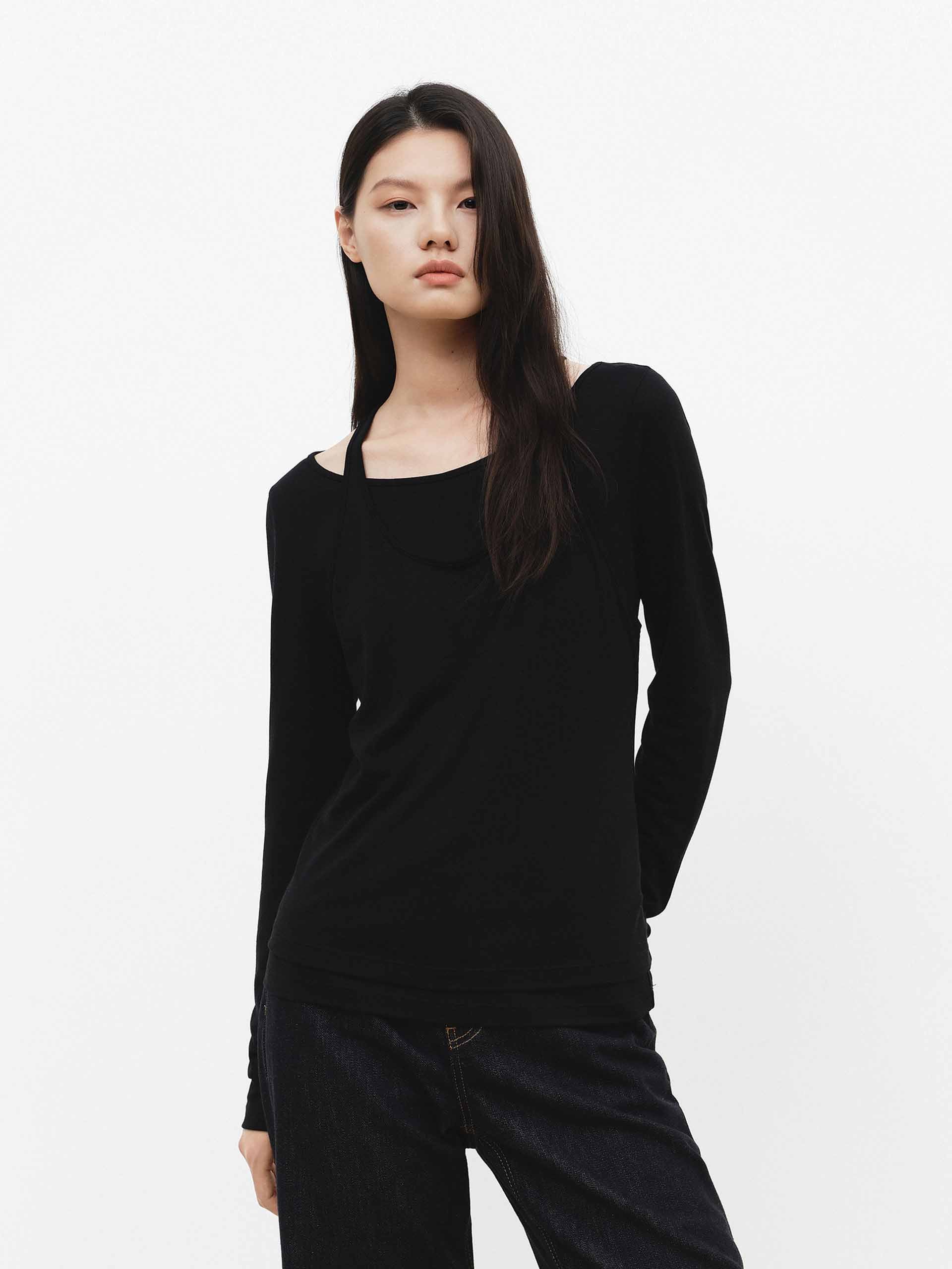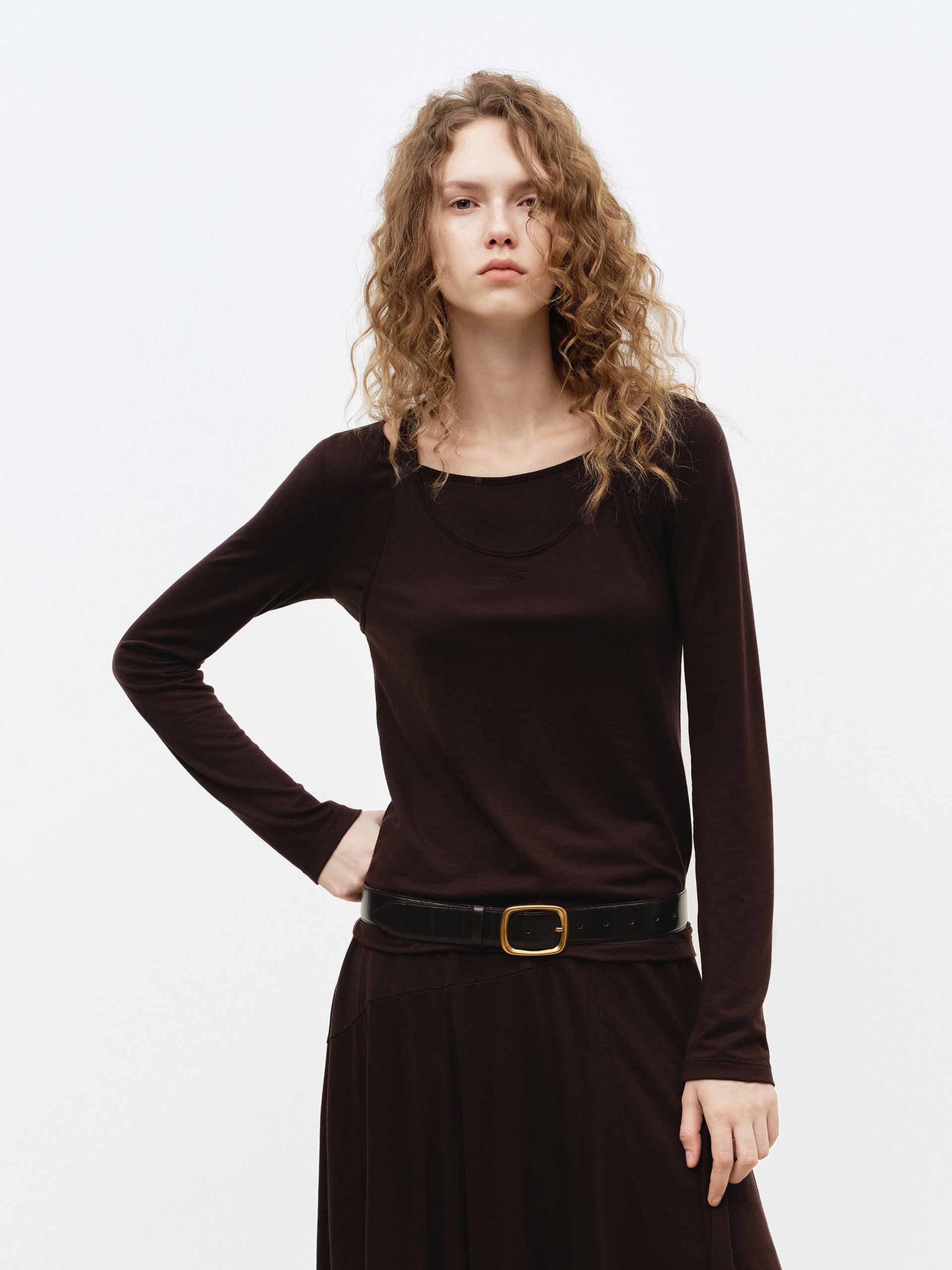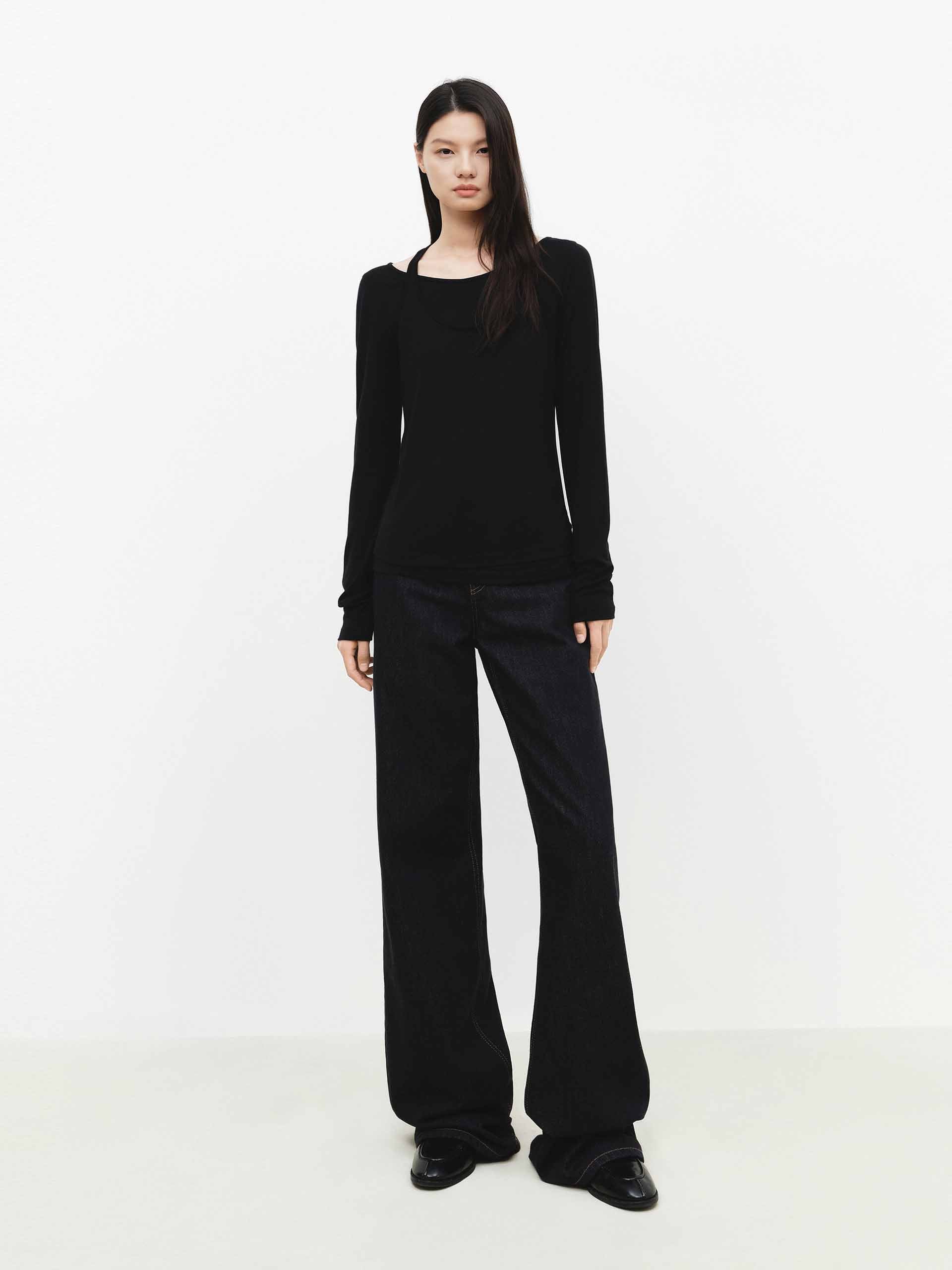 - 圓領與長袖細節
