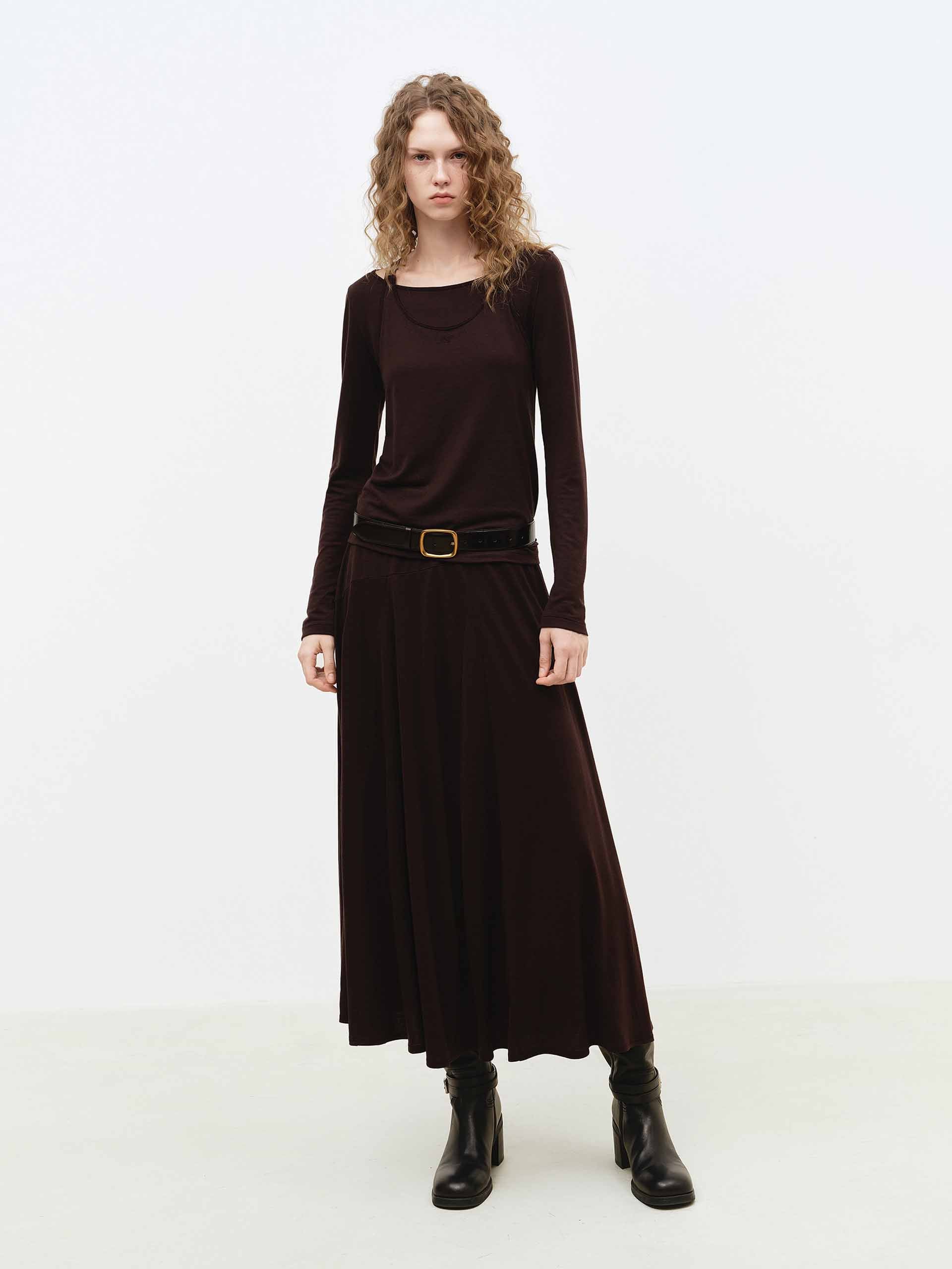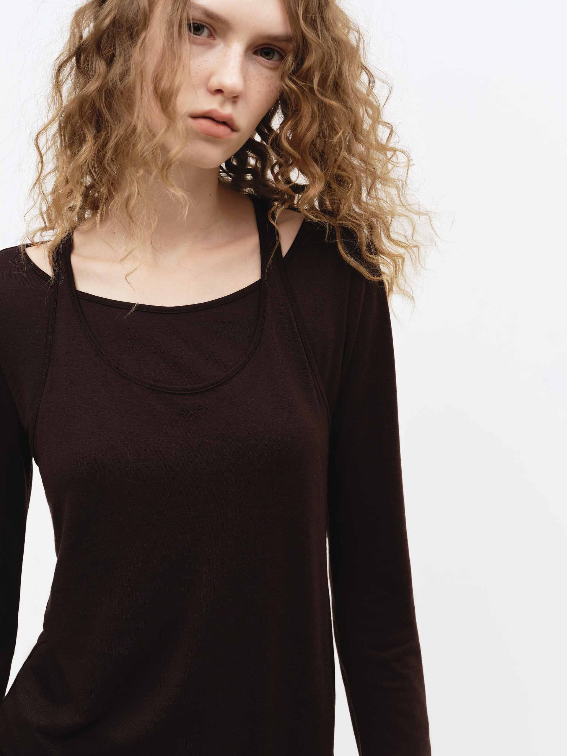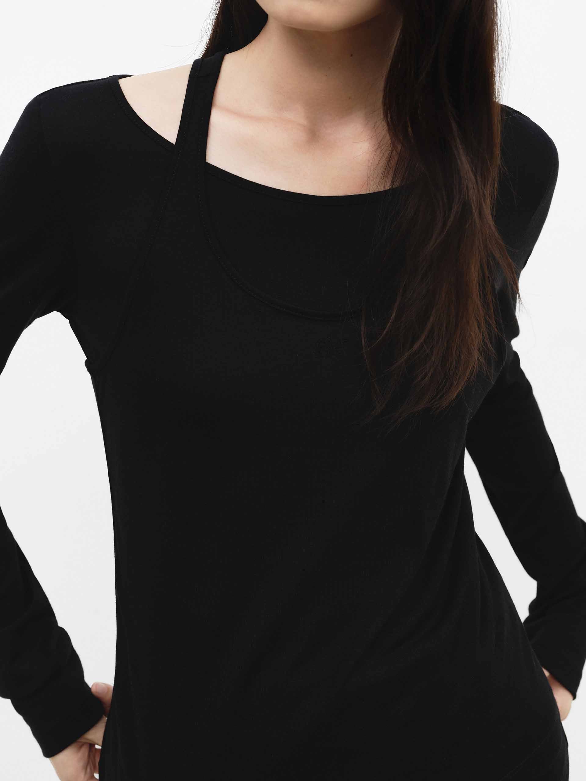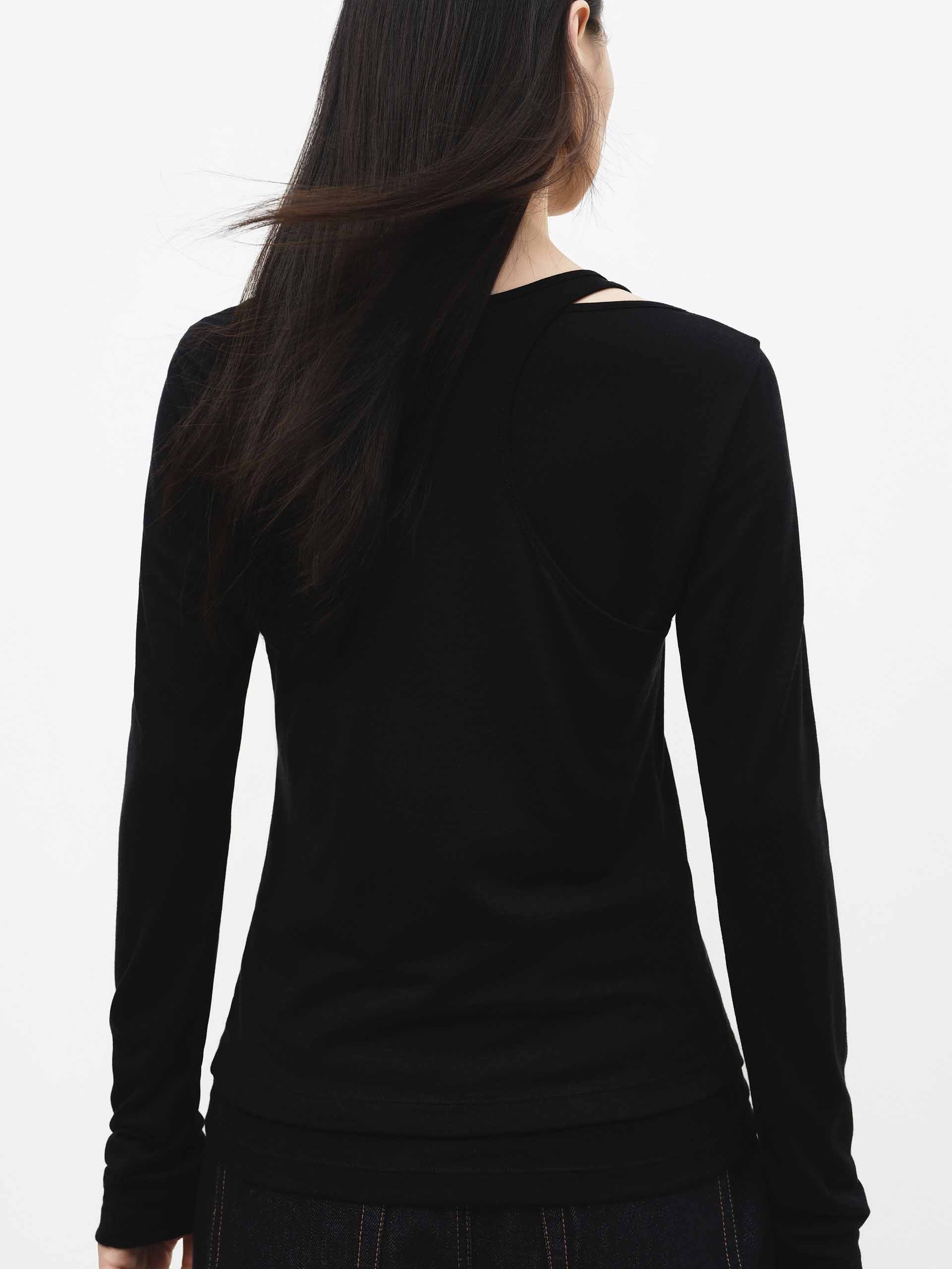 - 圓領與長袖細節