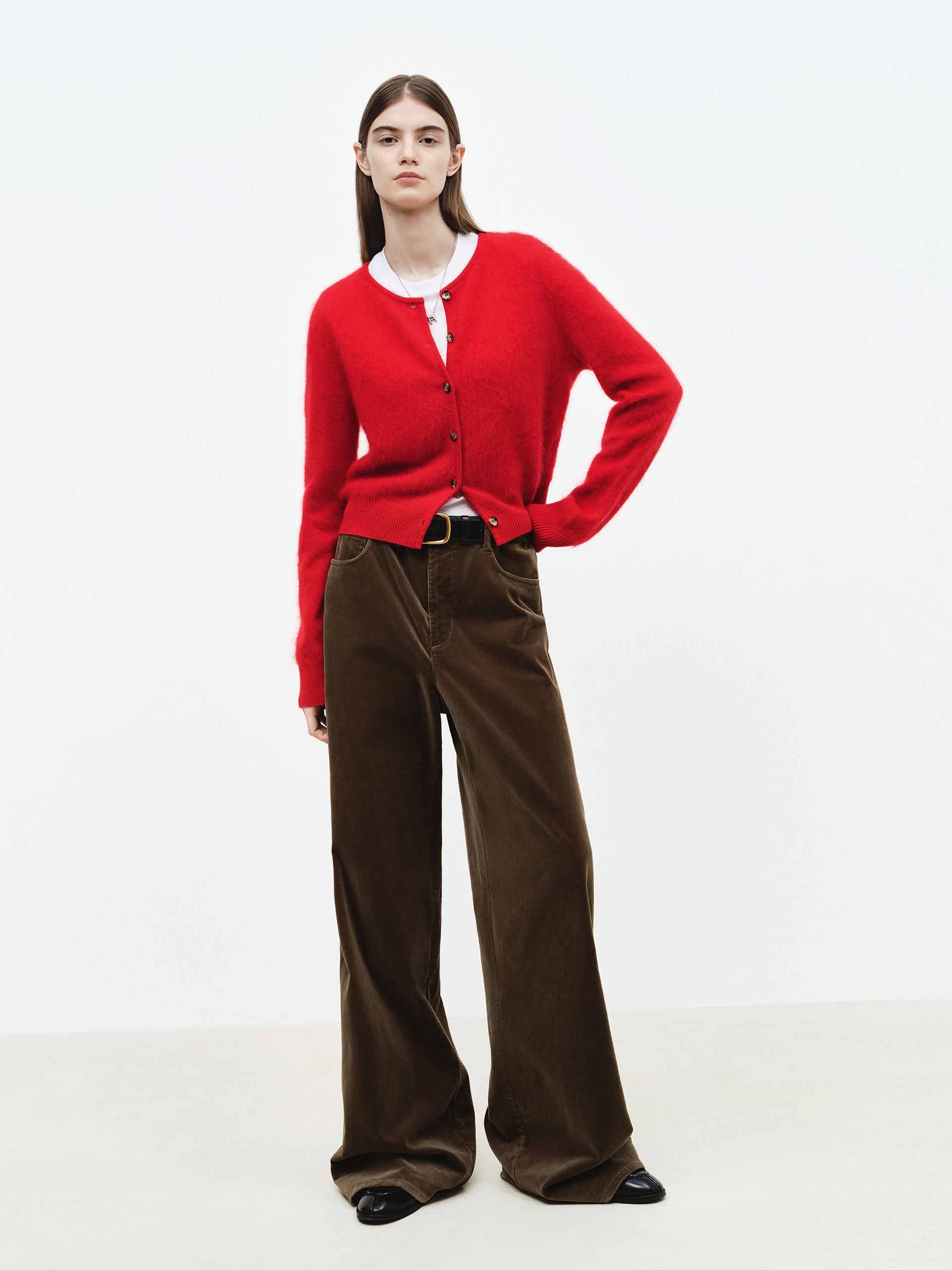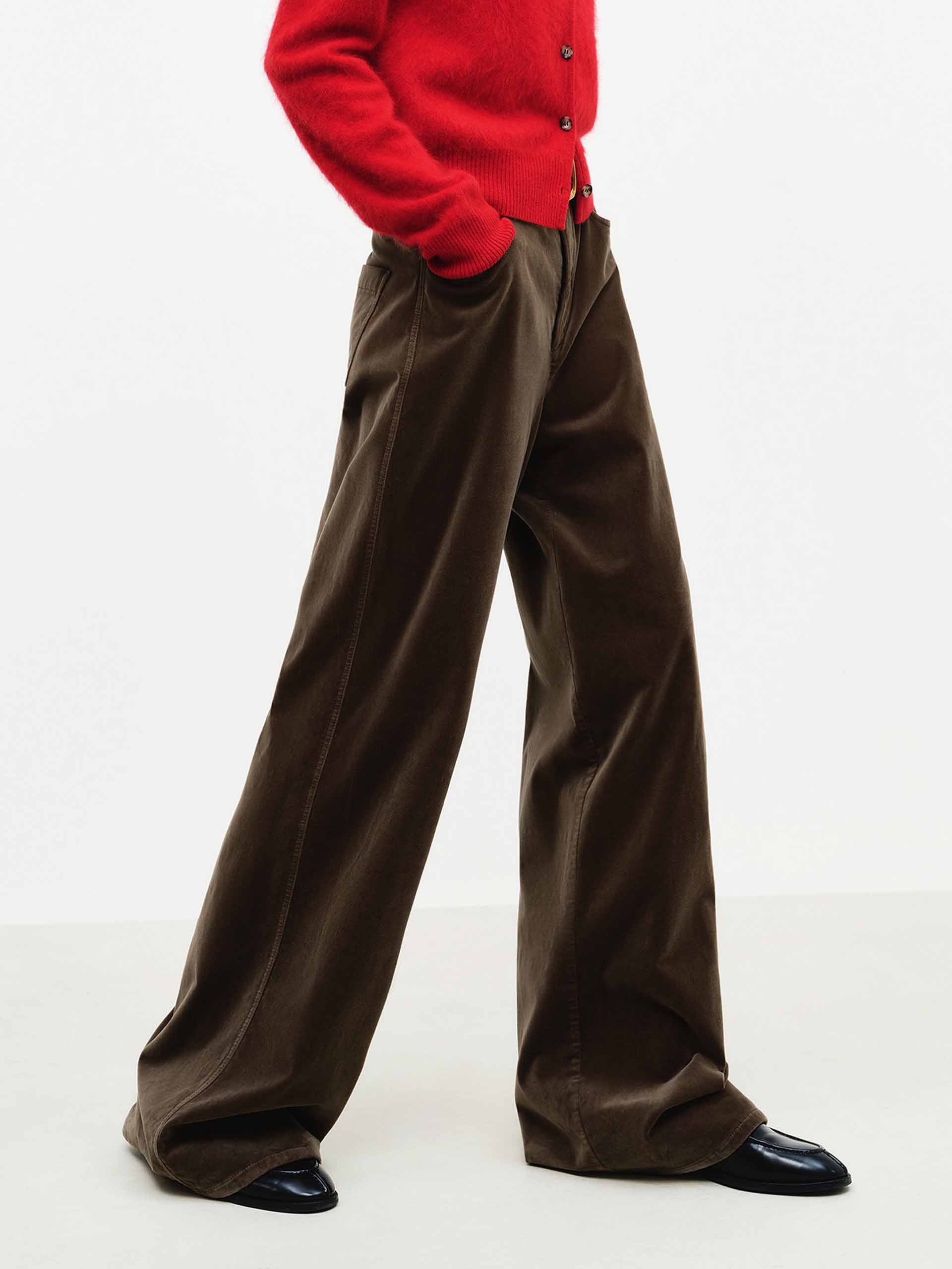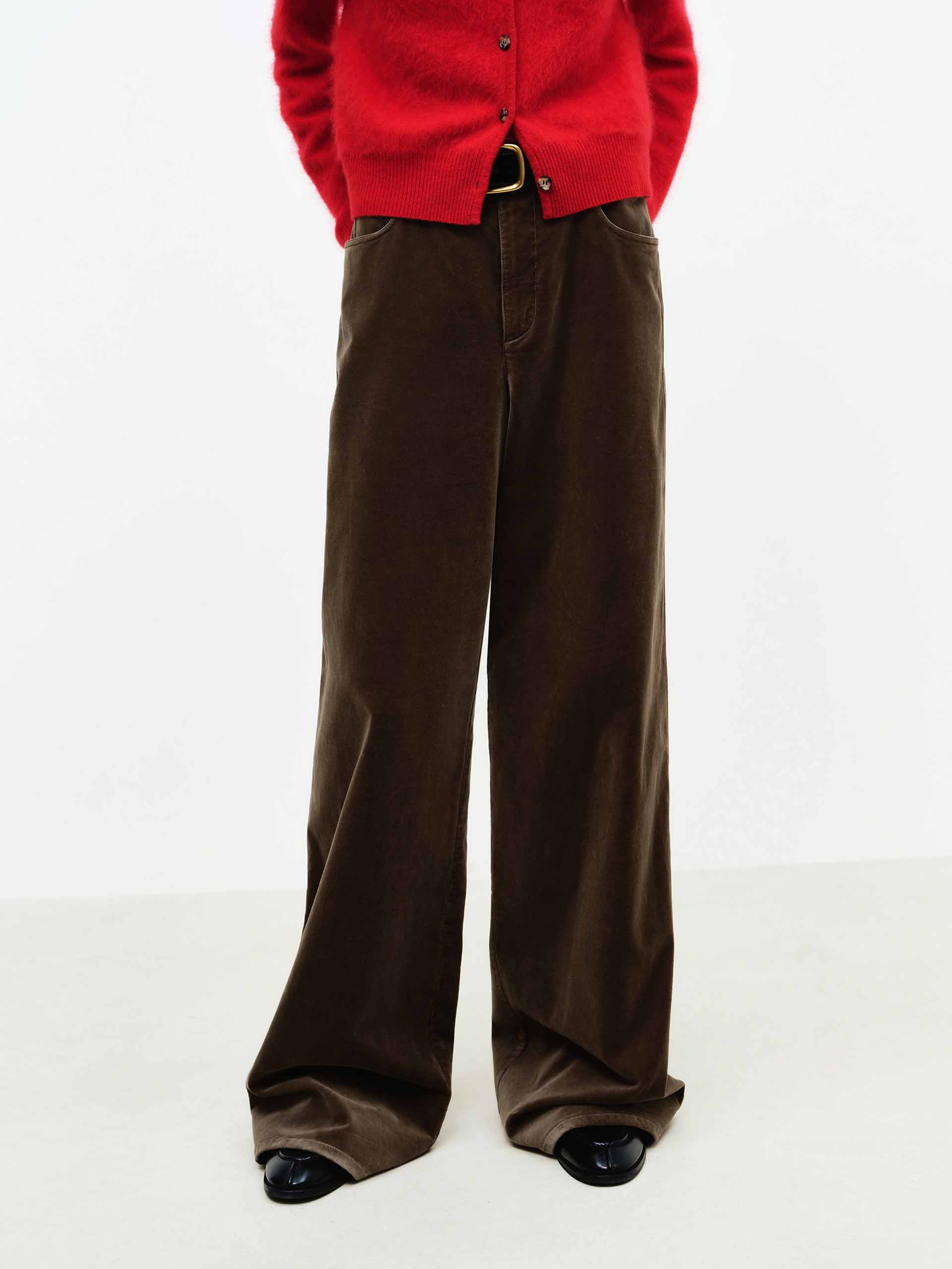 MO&Co. 女士天鵝絨觸感棕色長褲