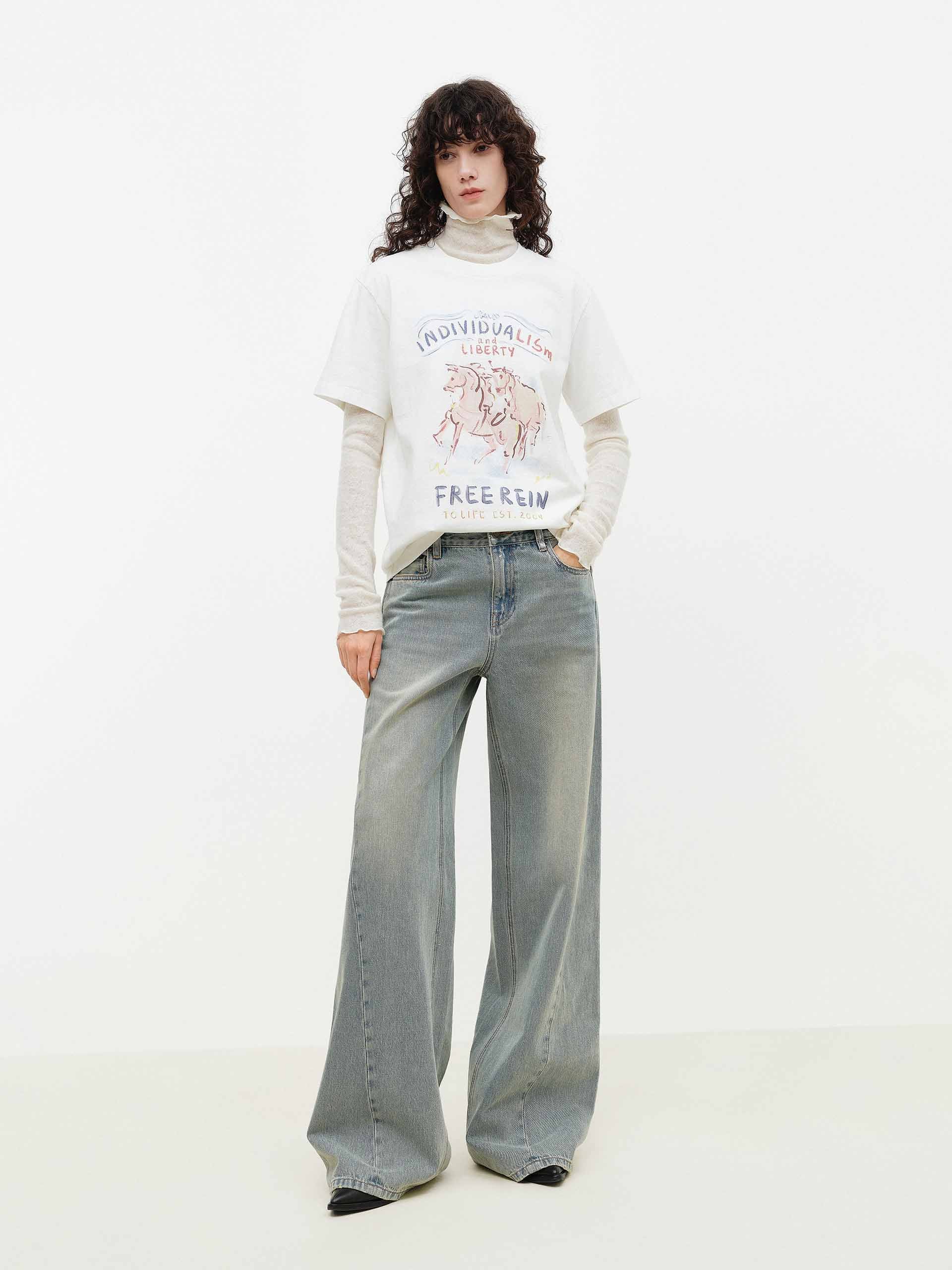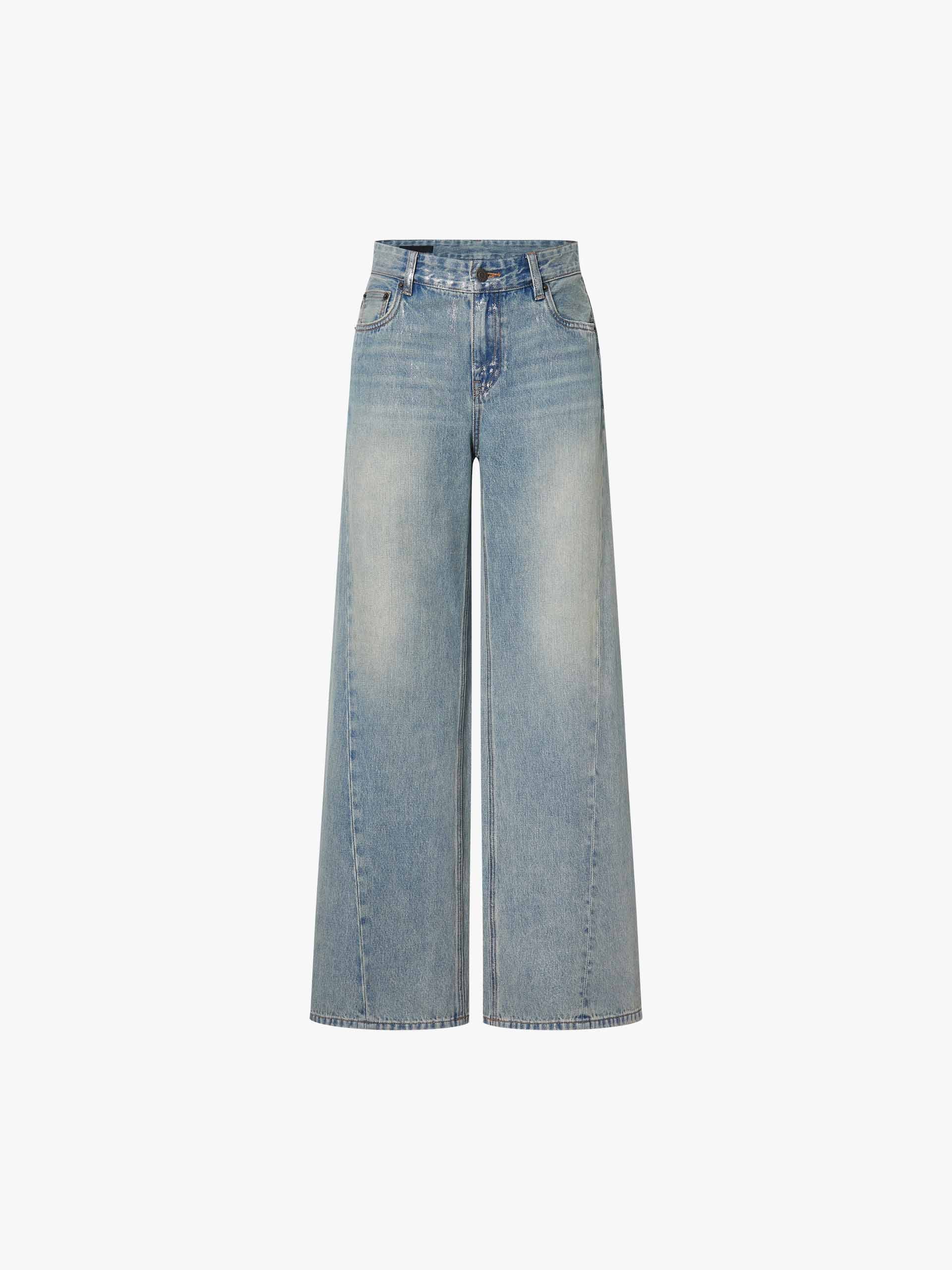 捕捉了放鬆又精緻的 70 年代風情美學,這款牛仔褲採用柔軟的 100% 棉剪裁而成。大膽的寬管輪廓和全長垂墜感,細節包括環繞式縫線和微妙的褪色刷色。配備經典的五口袋佈局和拉鍊-鈕扣閉合,設計以後腰帶上的標誌性皮革標誌飾片完成,完美融合了復古風情與現代感。