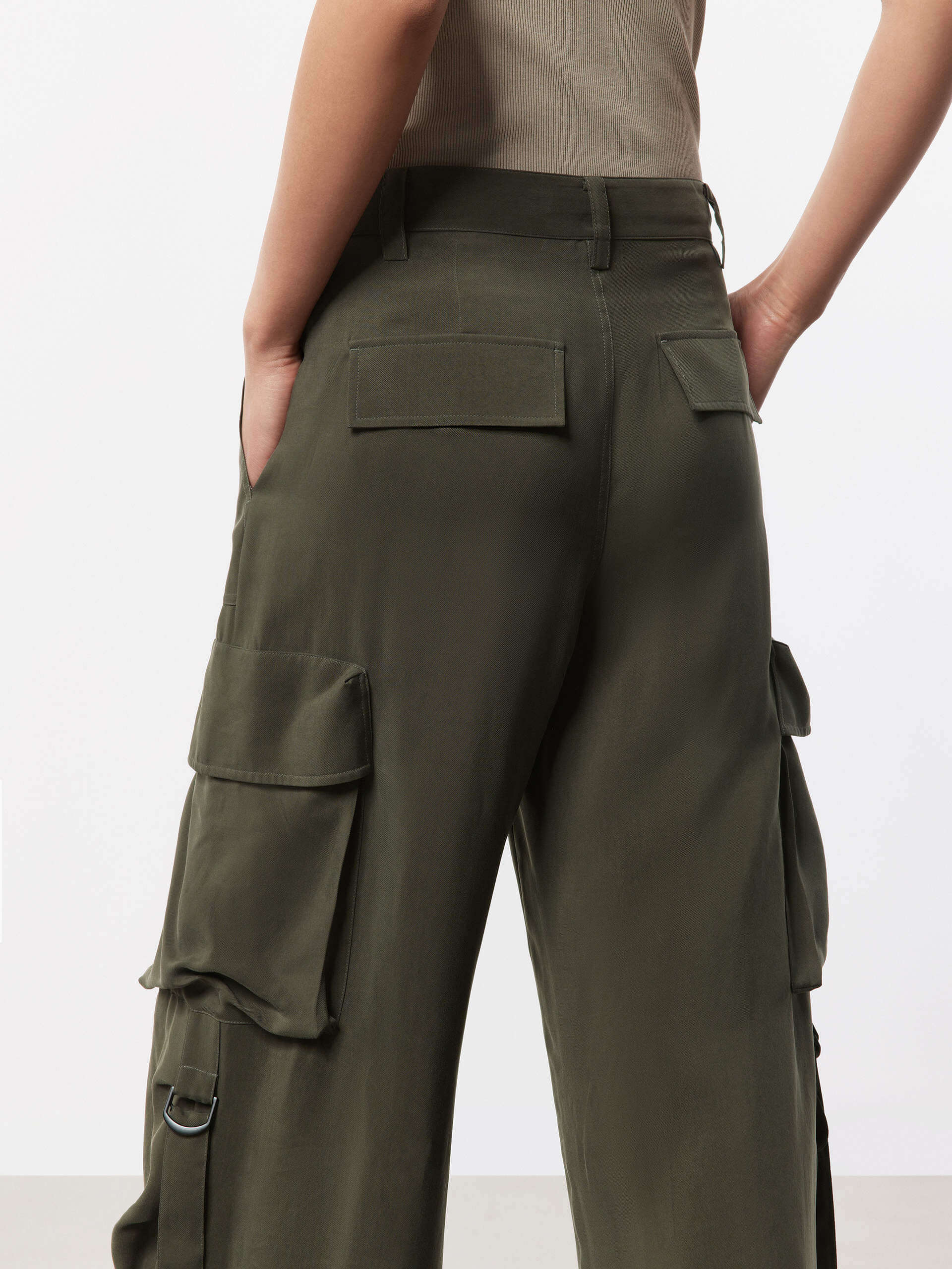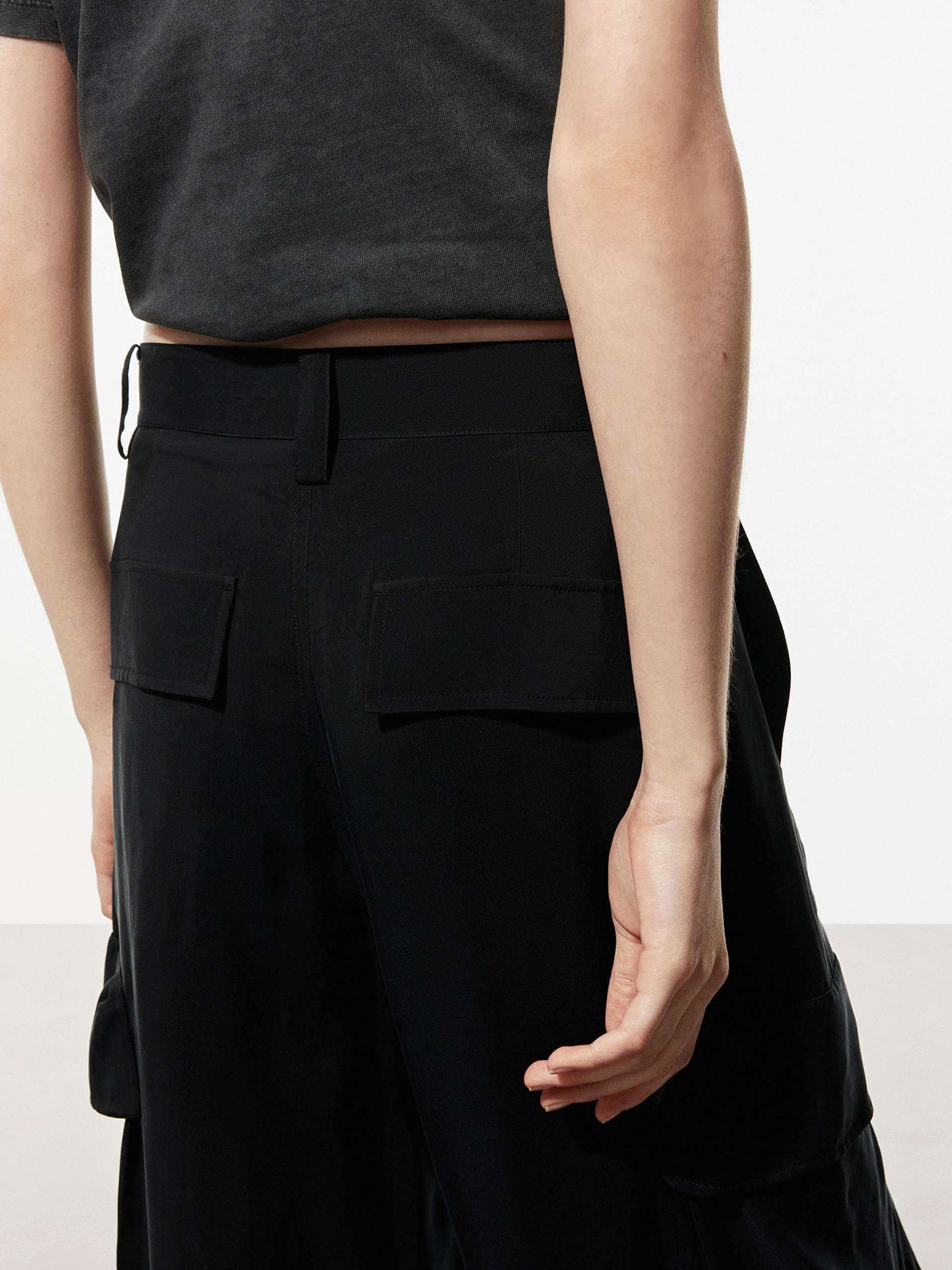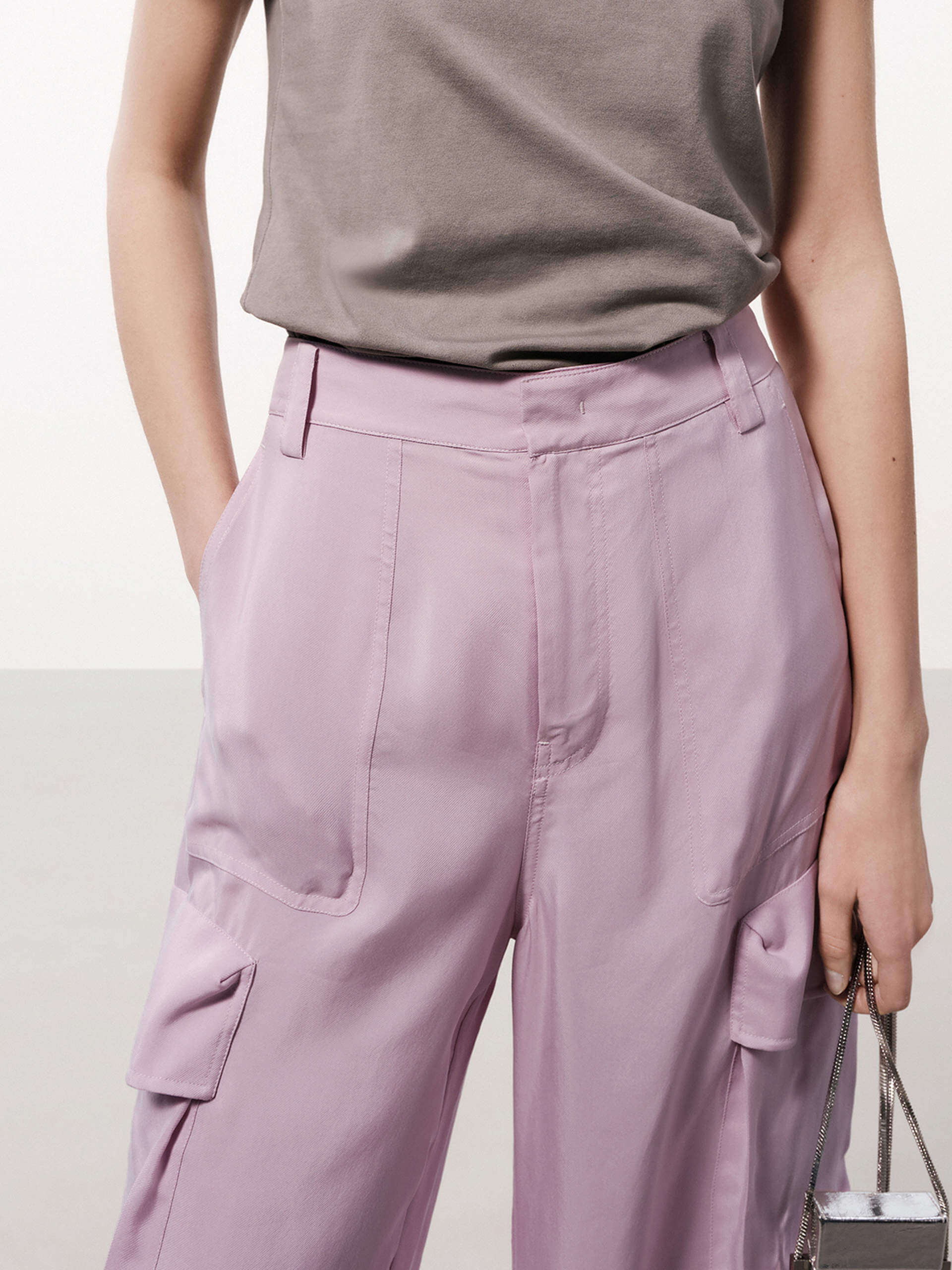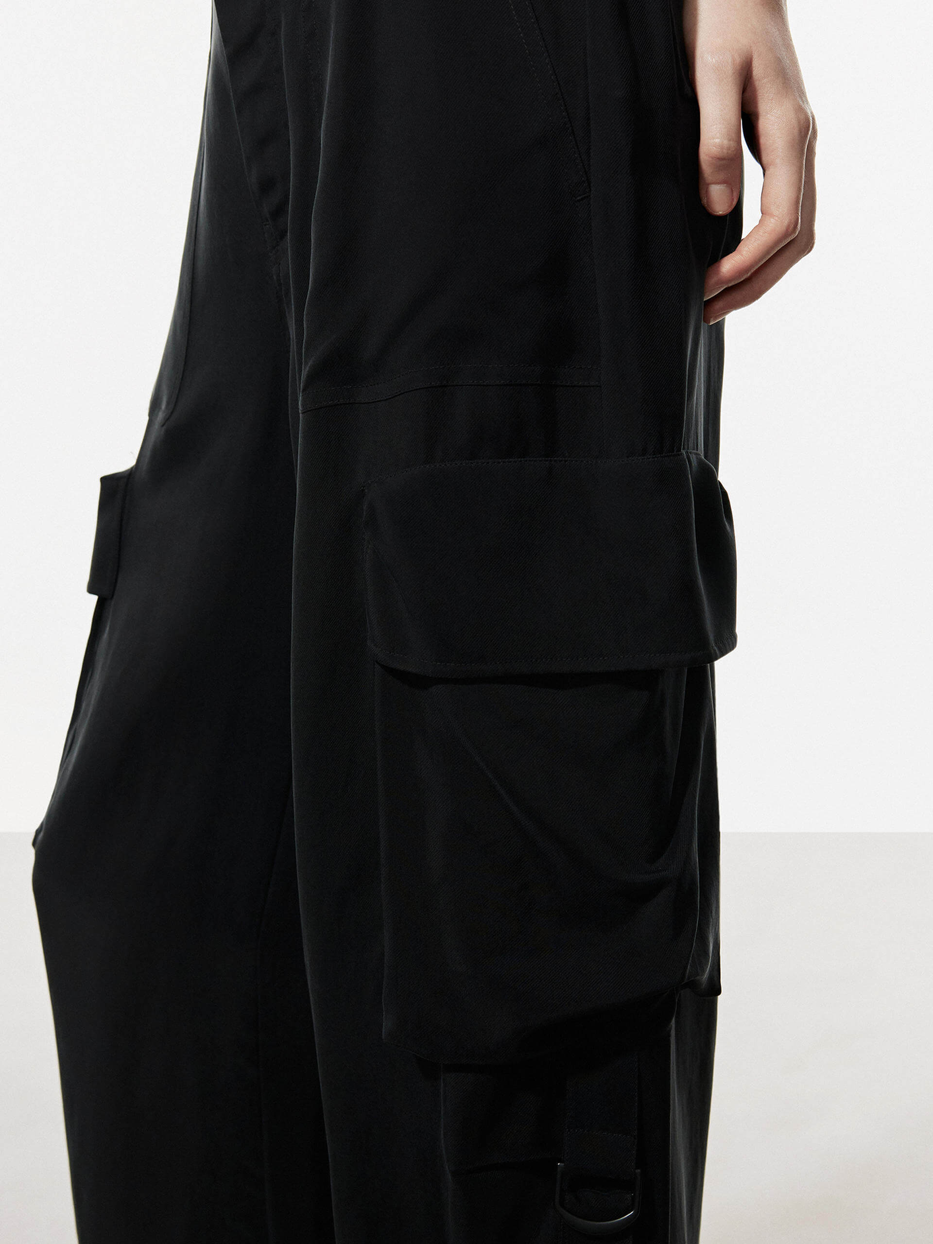 這款褲子採用100%銅氨纖維面料,輕盈透氣,觸感柔軟。寬鬆直筒剪裁和工裝風格,側邊大口袋提供了充足的儲物空間和功能性。非常適合休閒穿著和戶外活動。