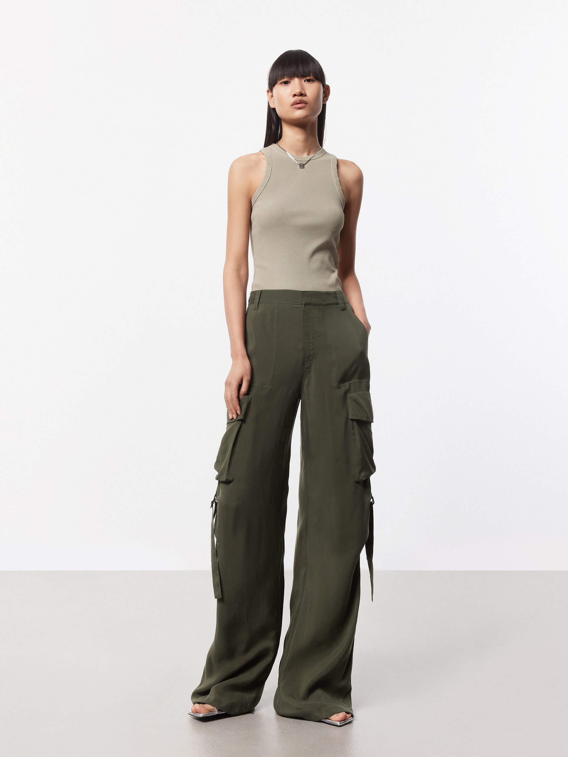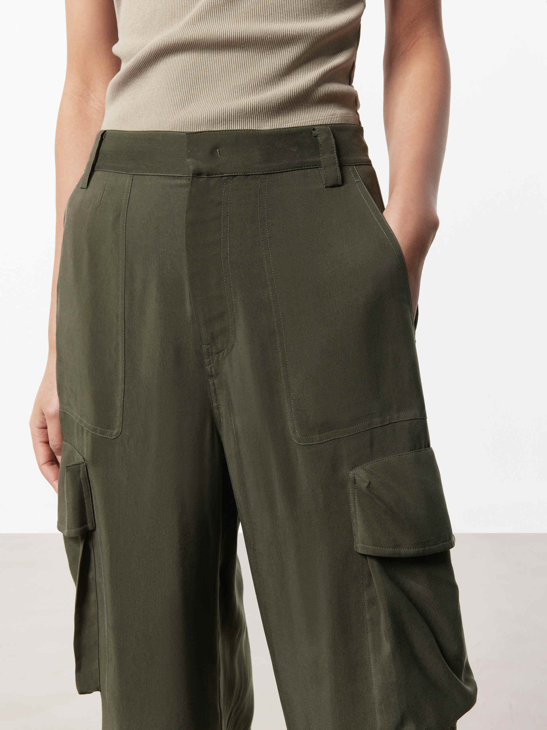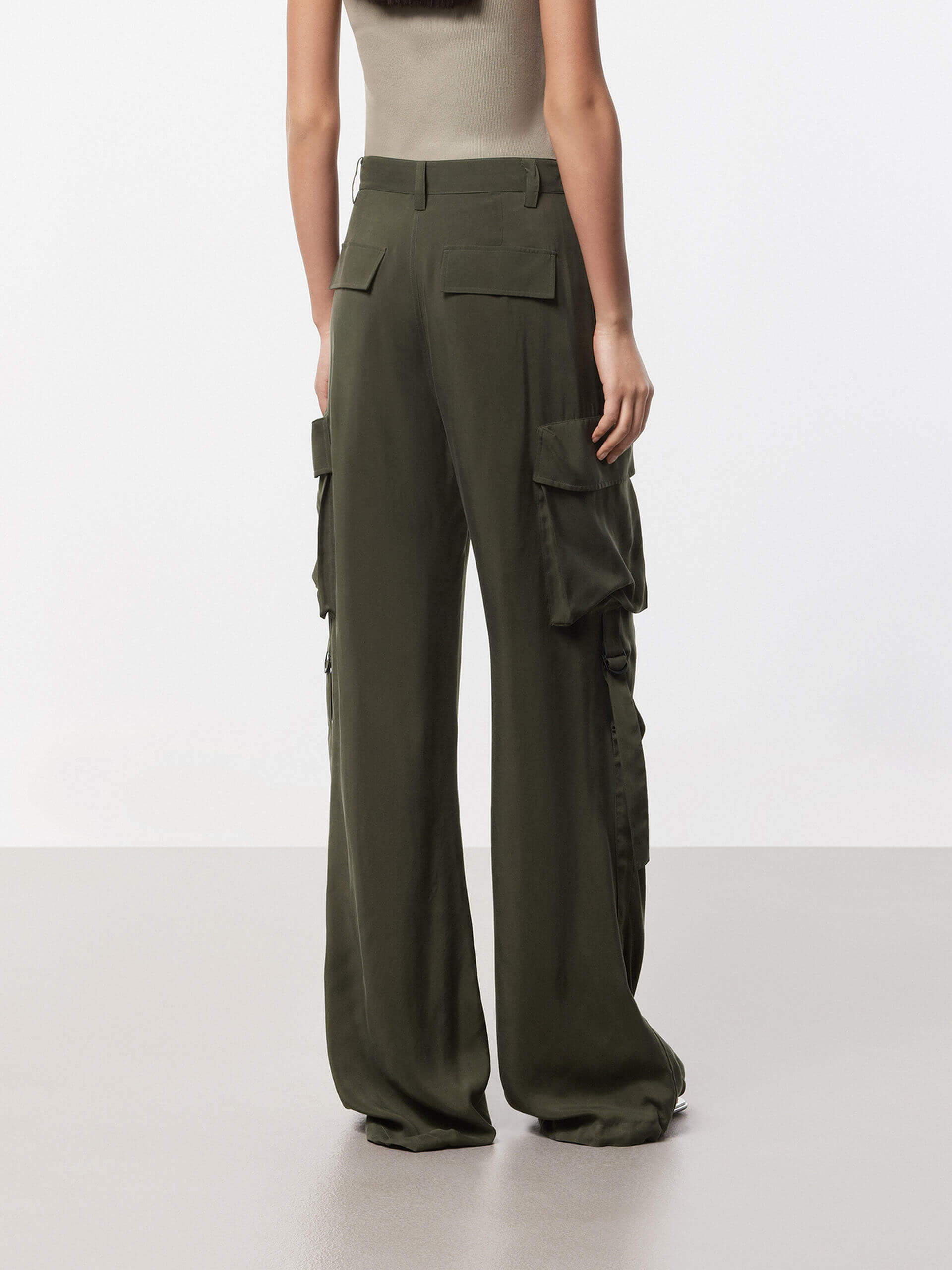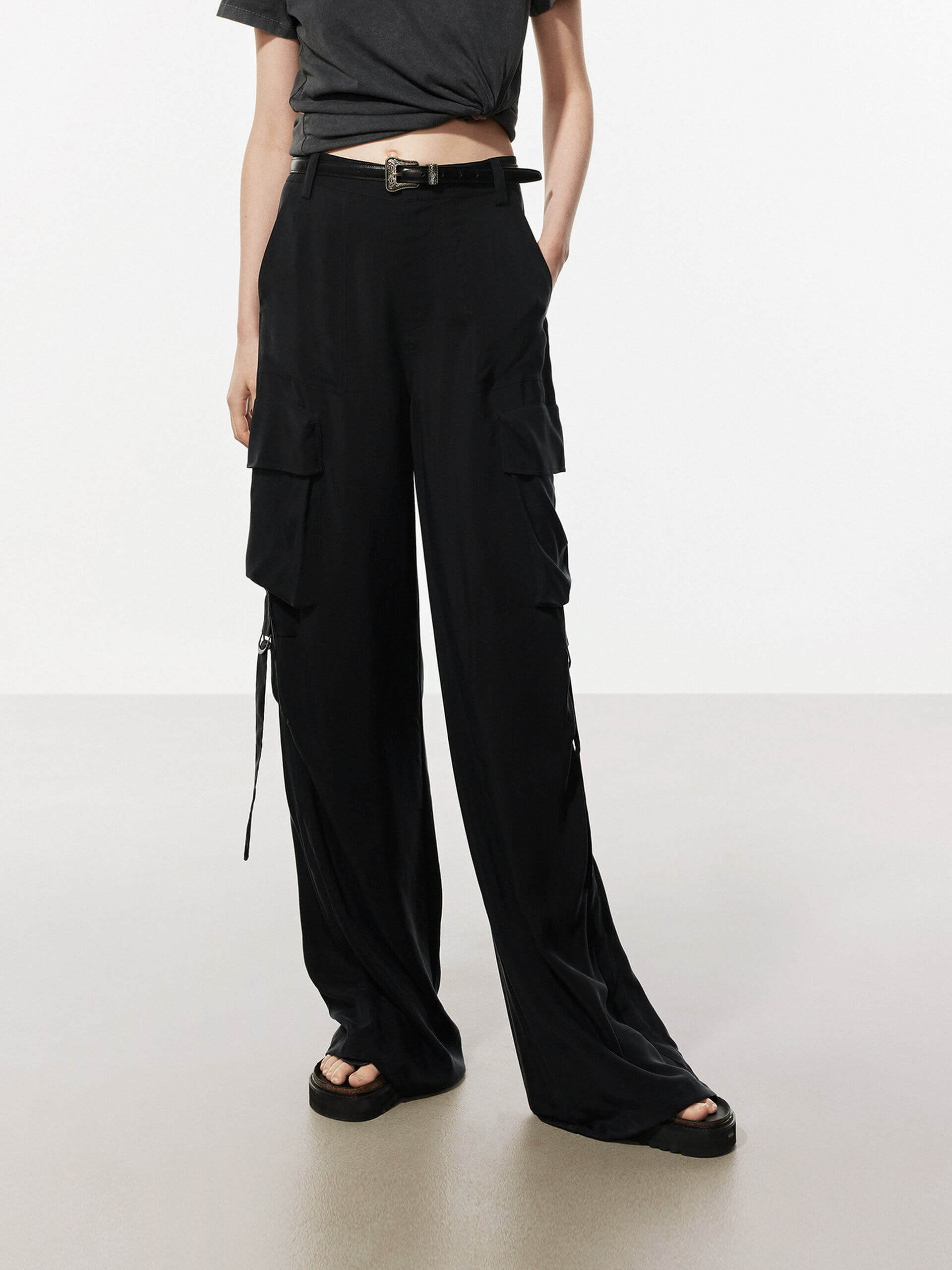 這款褲子採用100%銅氨纖維面料,輕盈透氣,觸感柔軟。寬鬆直筒剪裁和工裝風格,側邊大口袋提供了充足的儲物空間和功能性。非常適合休閒穿著和戶外活動。